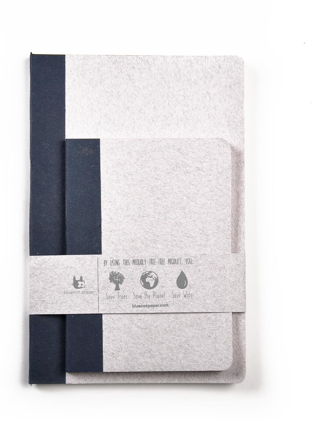 Bluecat Paper Journal Set Handmade Notebooks A5 & A6 (Set of 2) – Notes, Ideas, Plans | Acid-free paper light grey notebook, pocket journal, teacher notebook