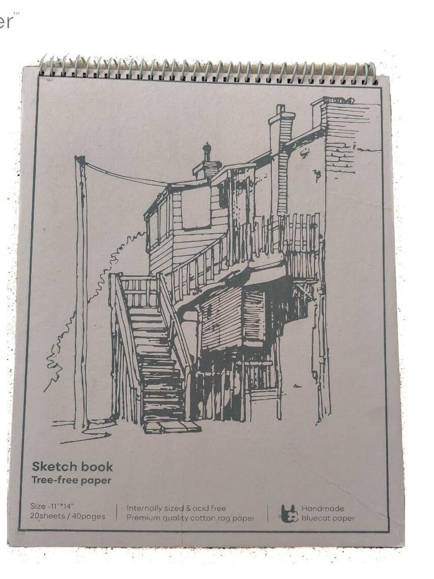 Bluecat Paper Sketch Book - Art book – Tree-free Paper- Handmade Paper from Cotton Rags- 13x9 inches – 20 sheets – White
