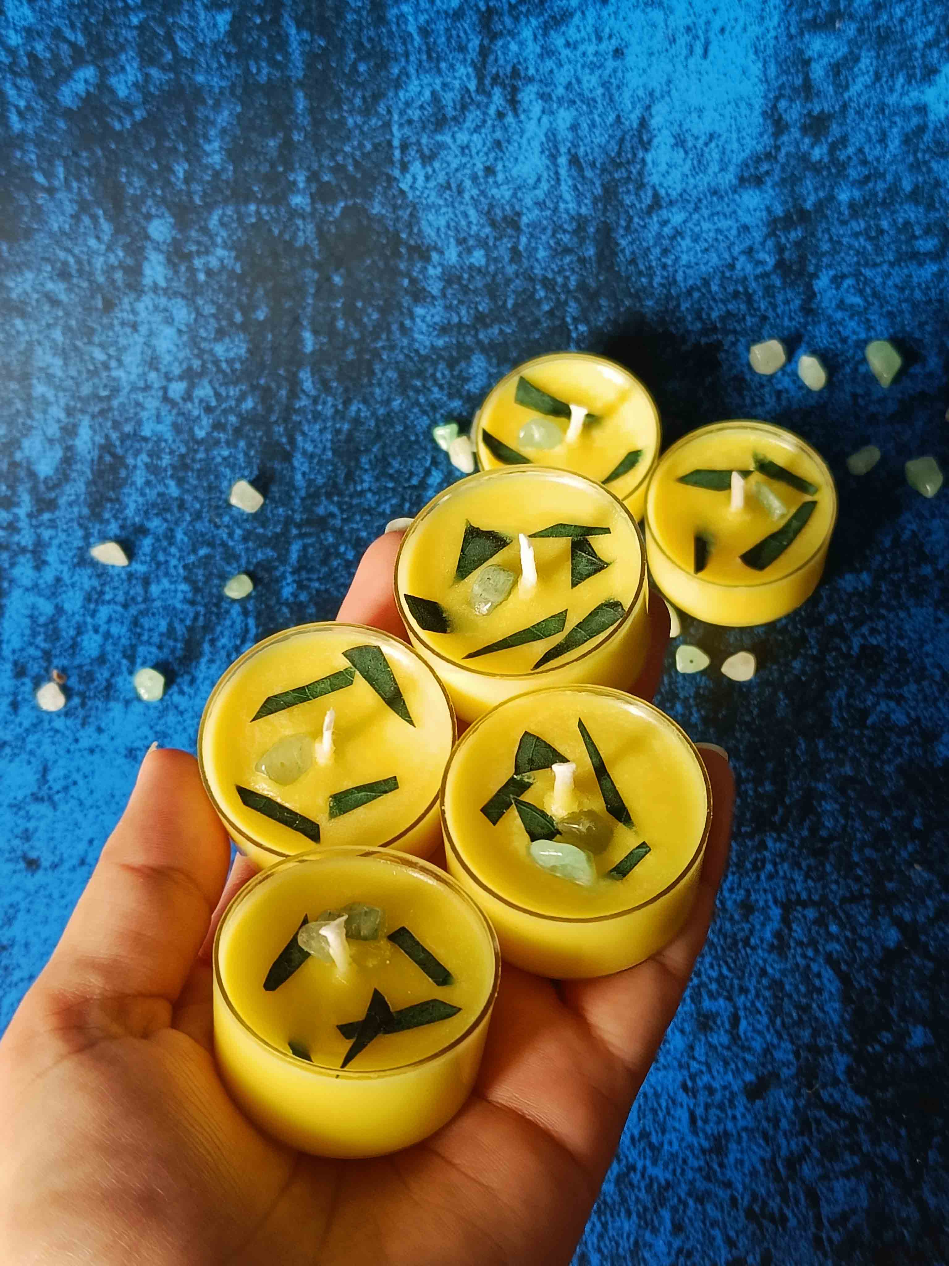 Tealight Candles Set Of 6 - Leaf & Crystal