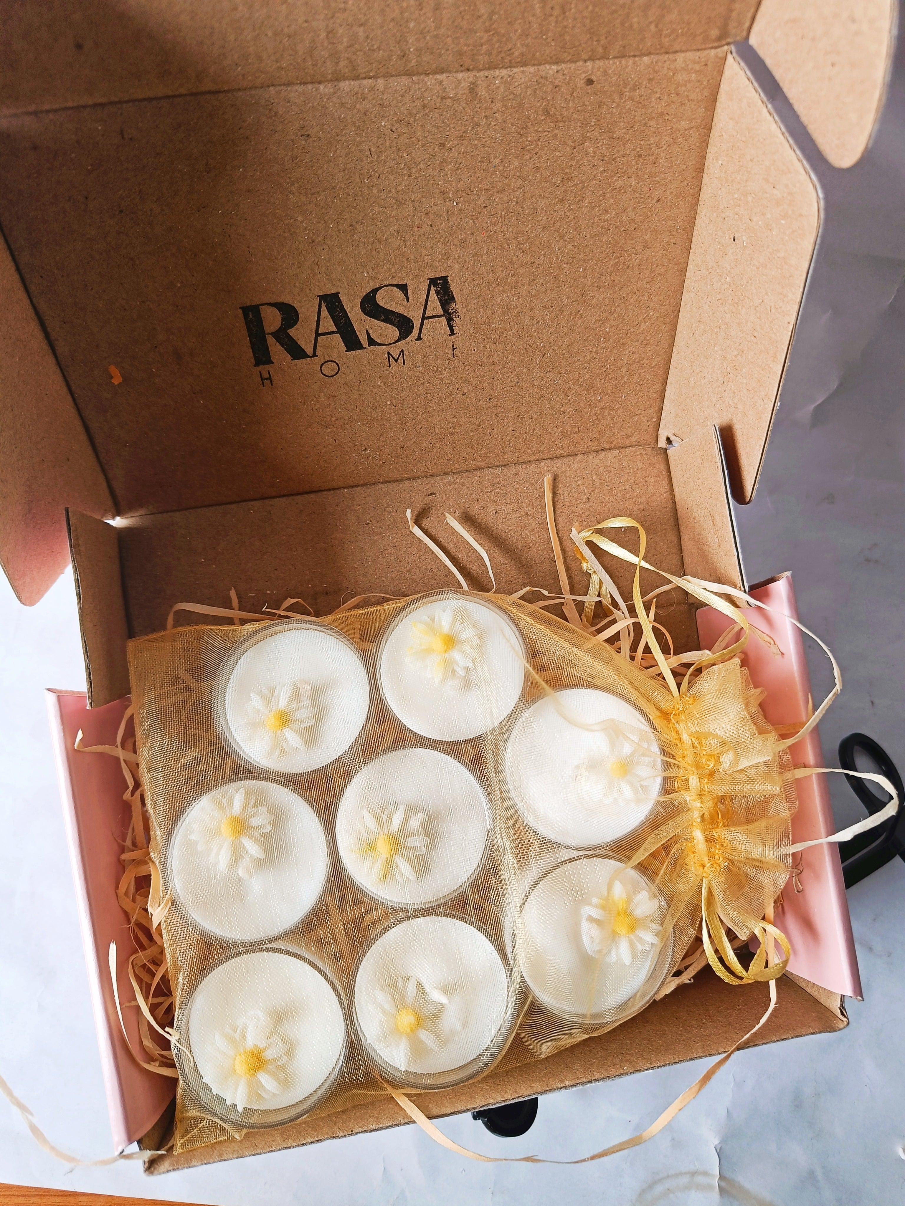 Enjoy our vegan, toxic-free scented tealights in a set of 8. Perfect for the floating water decor or just use them on a candle stand to create an elegant nook in your space.