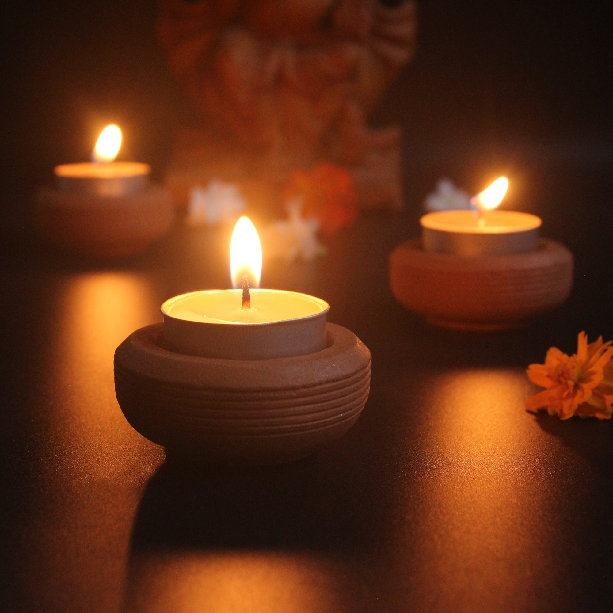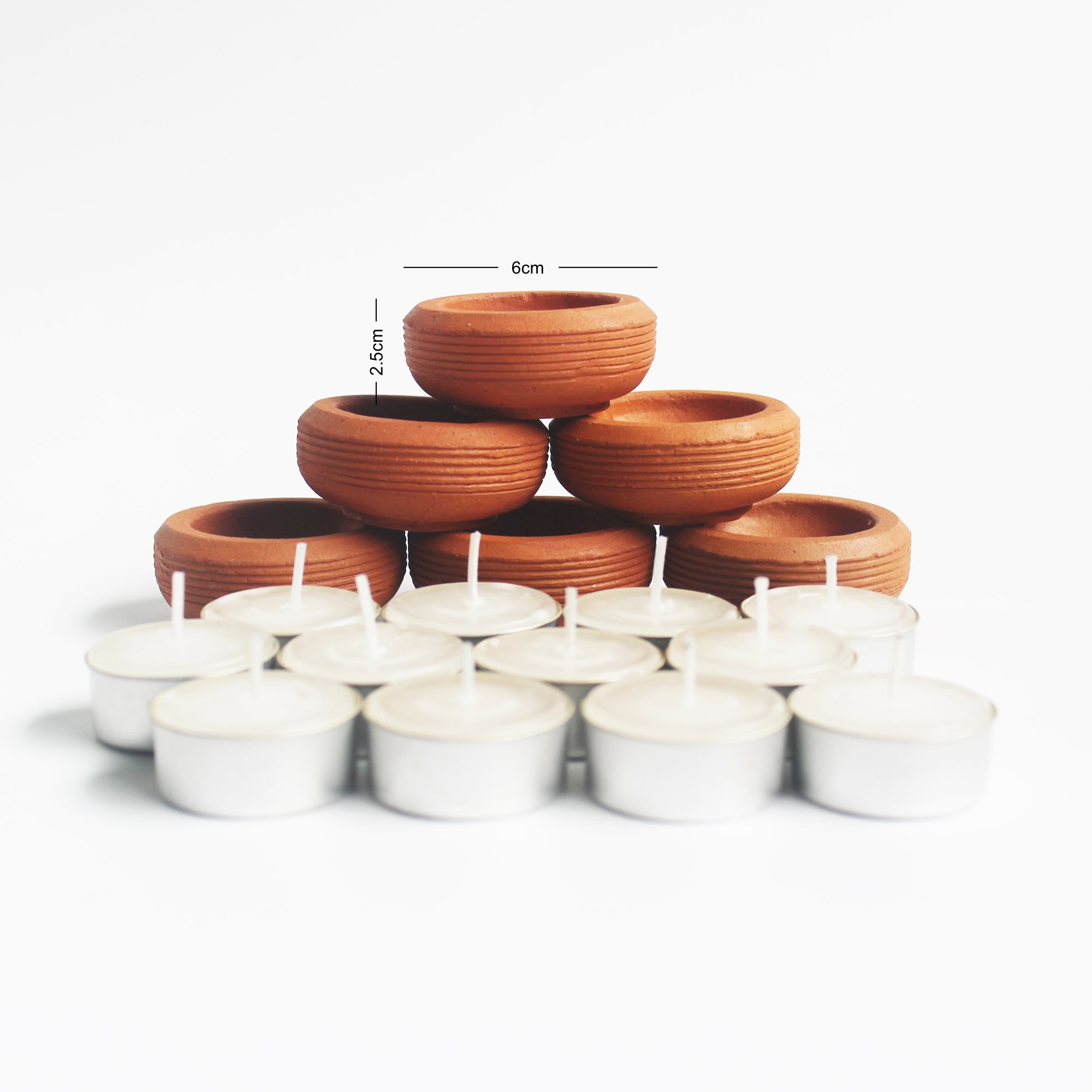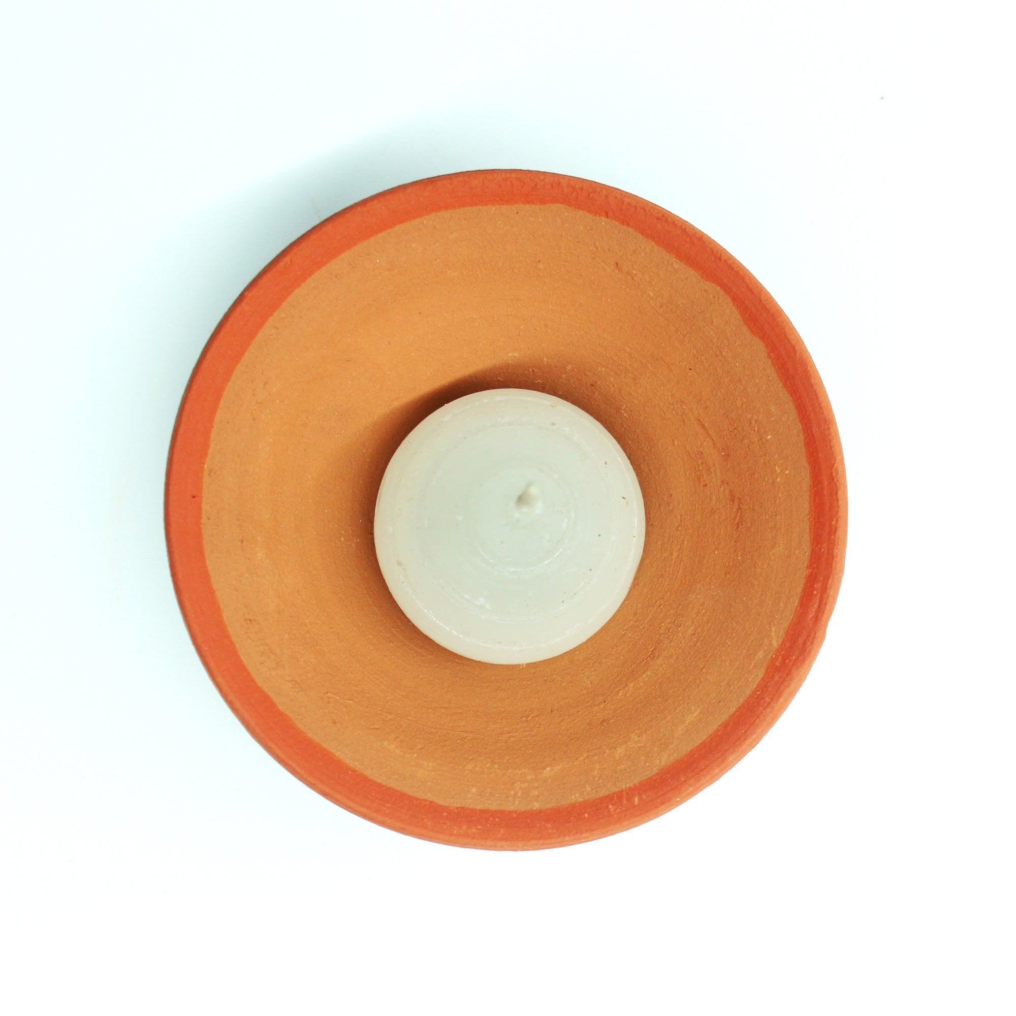 Terracotta Clay "PLATO" Candle Pot / Holder / Plate : Set of 12 + Complimentary Candles / Tealights 12 pcs
