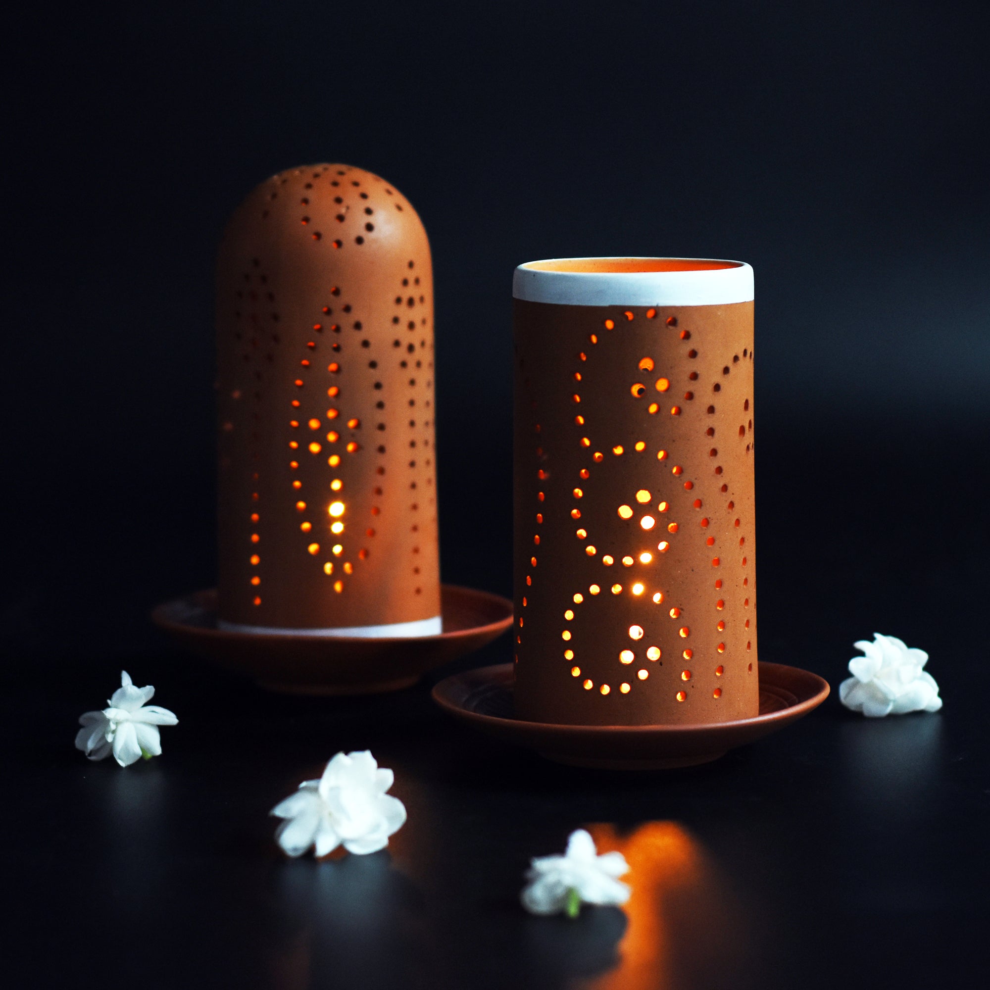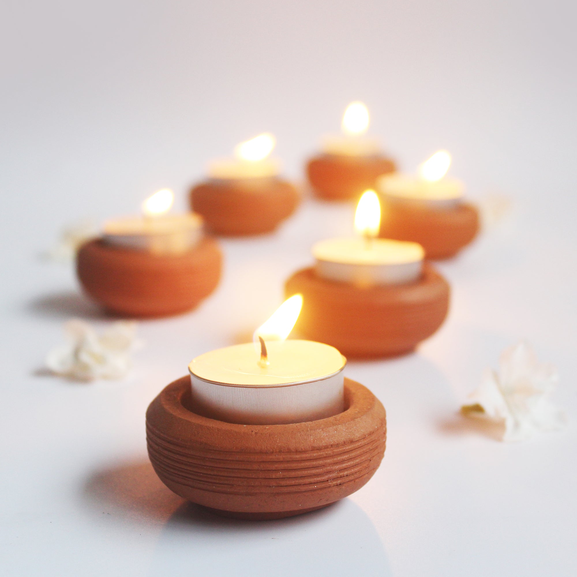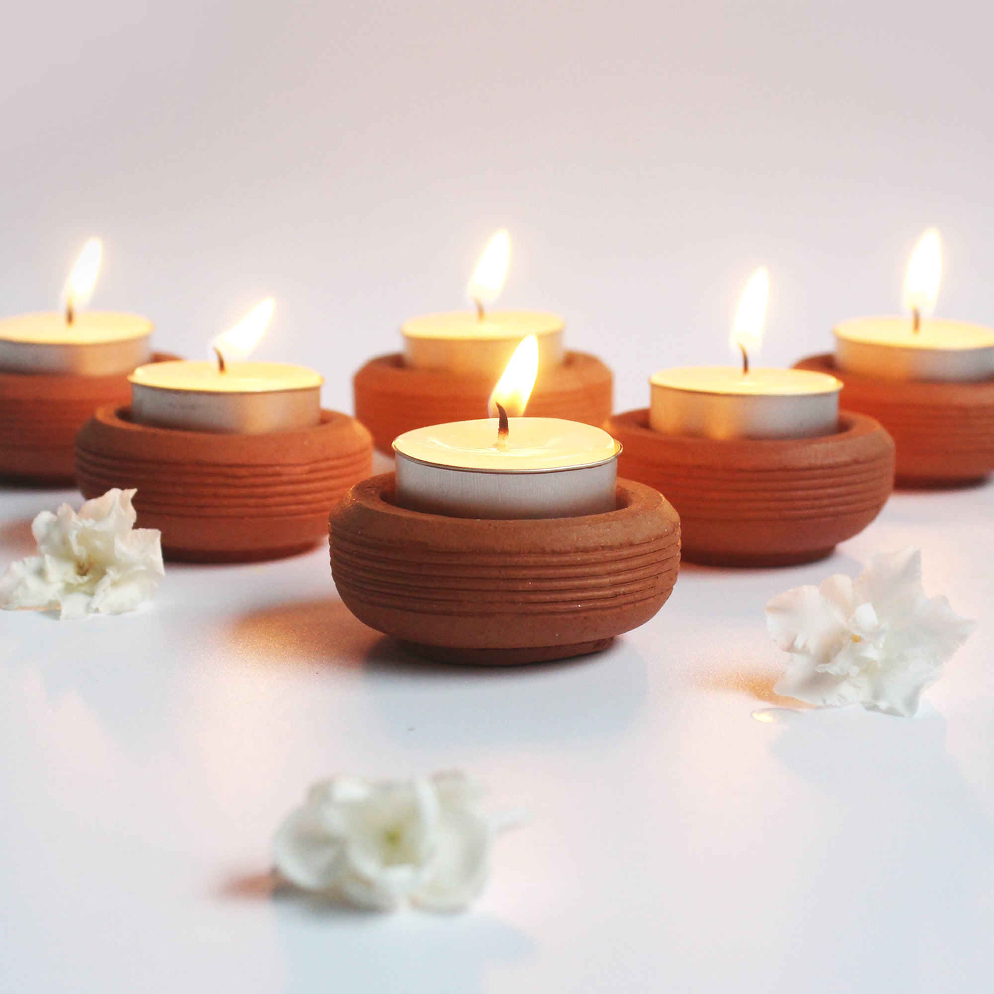 Terracotta Clay "PLATO" Candle Pot / Holder / Plate : Set of 12 + Complimentary Candles / Tealights 12 pcs