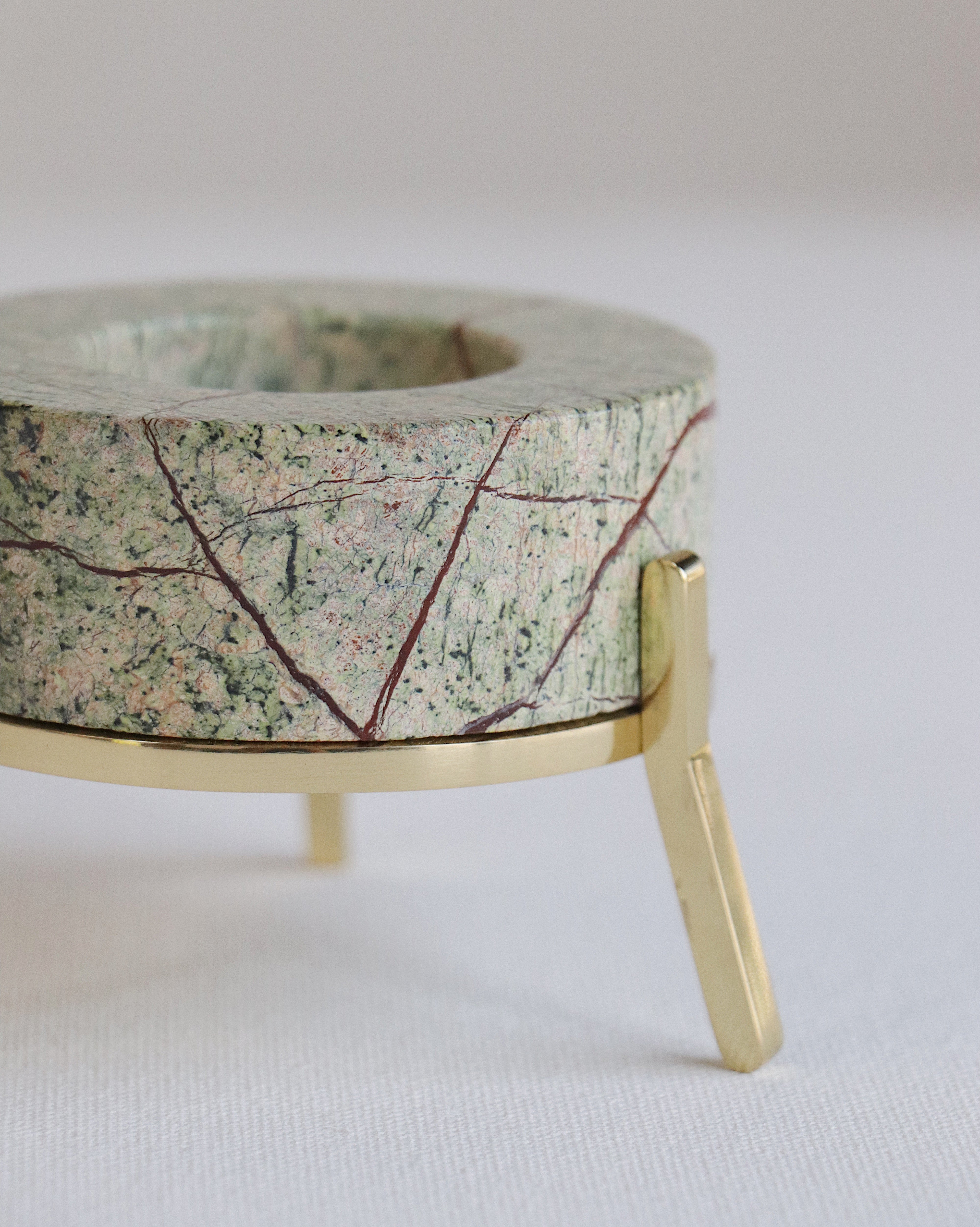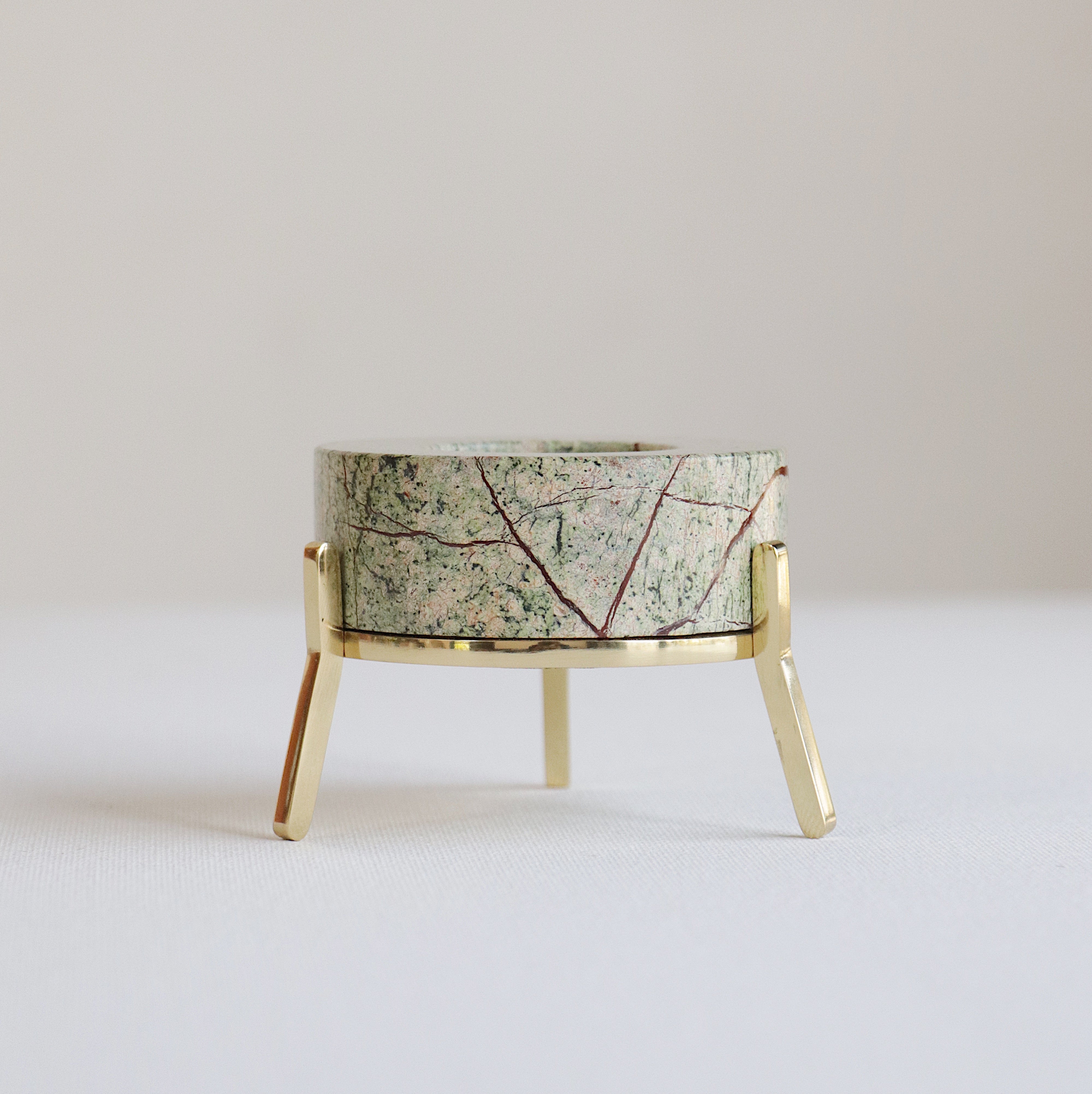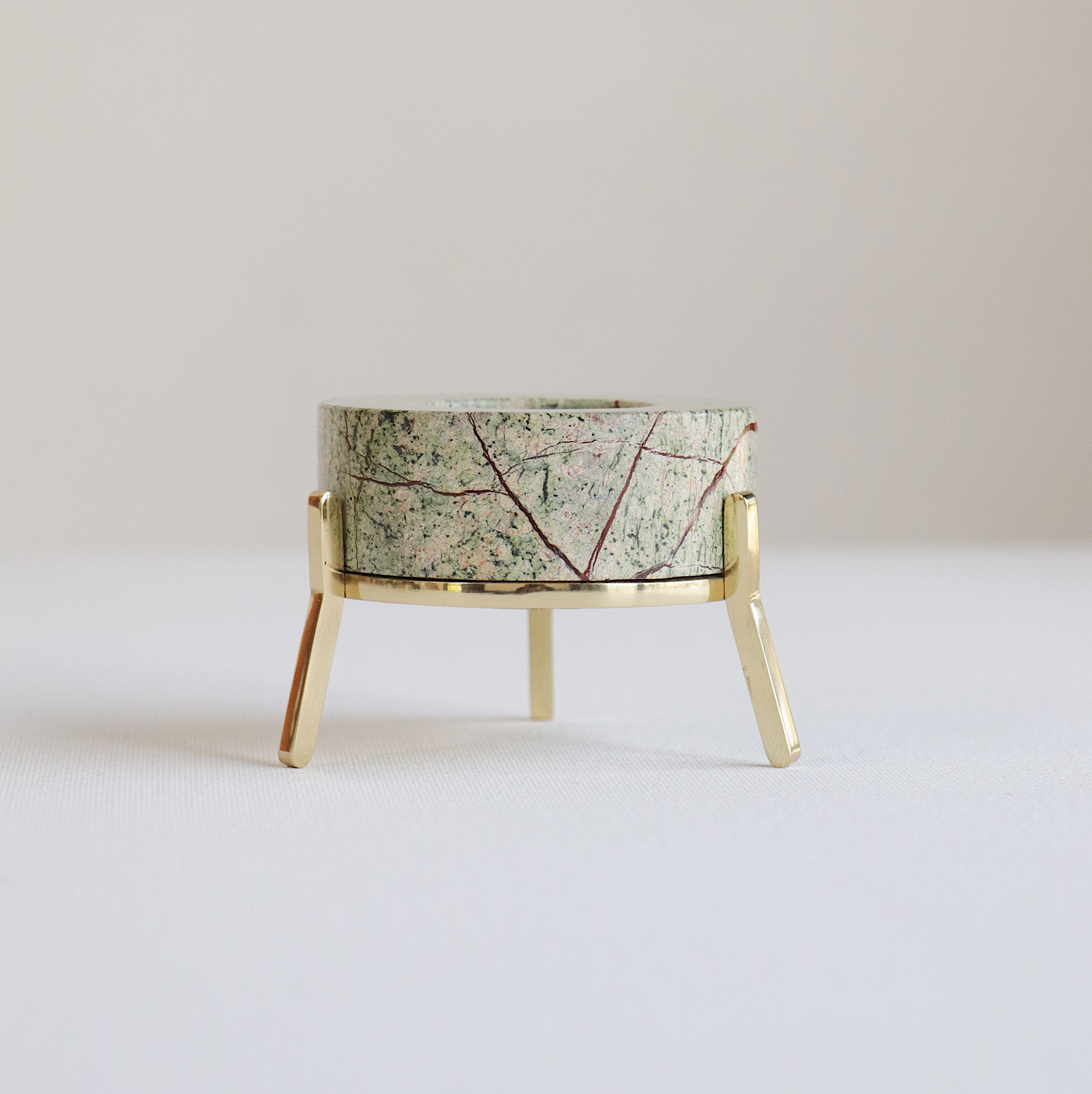The two components in this product require distinct care. Kindly wipe the stone body with a non-abrasive cloth, so as to avoid any scratches on the surface. Please use a soft cloth to wipe the brass stand. Incase of occurrence of patina on the brass surface, kindly use Brasso or any other brass-cleaning agent to restore its color.