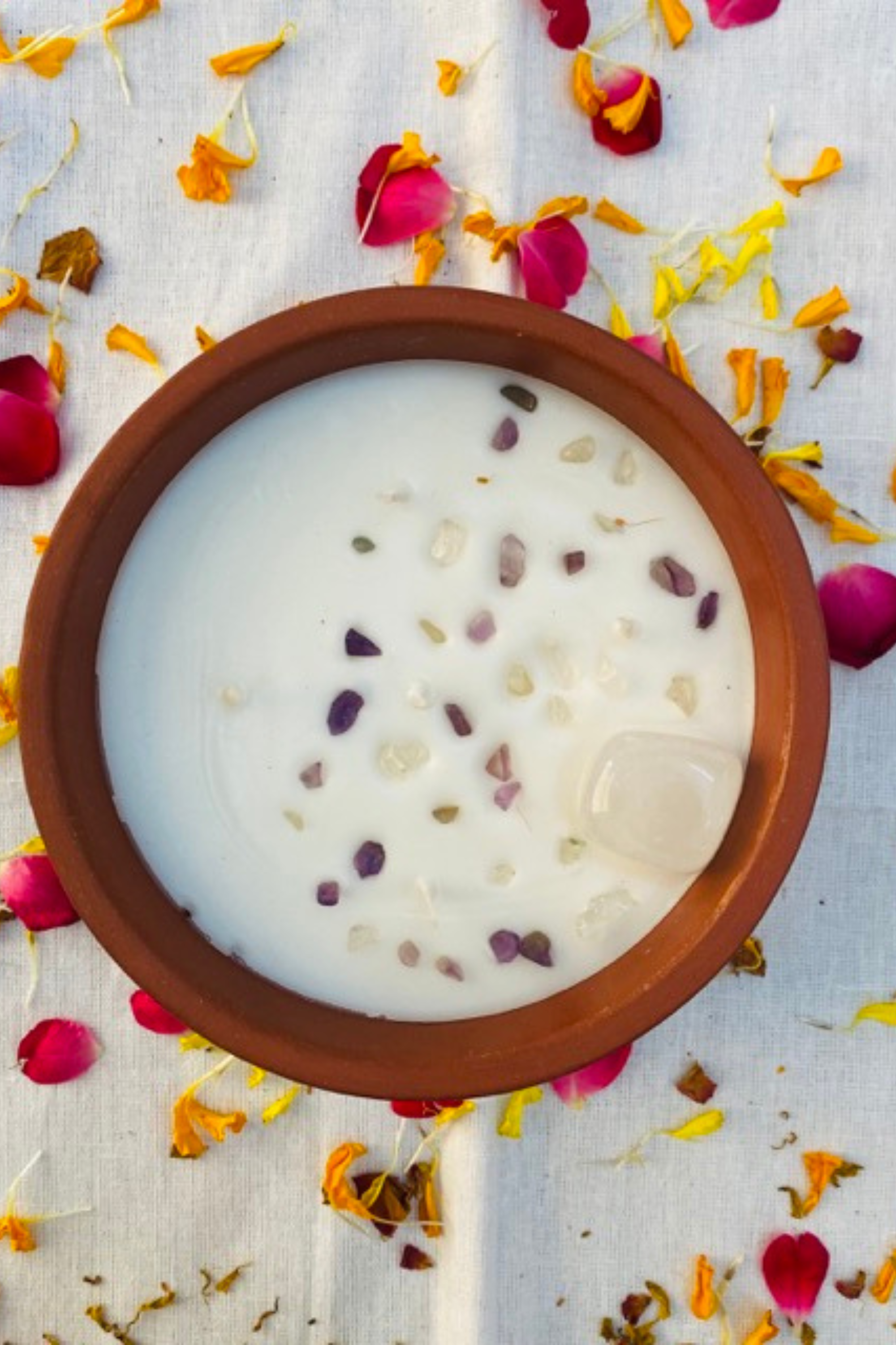 Enjoy bug-free outdoor and indoor experiences with the calming, purifying scent of citronella and basil. Whether for outdoor dining, relaxation, or meditation, the Vrindavani Soy Wax Candle.