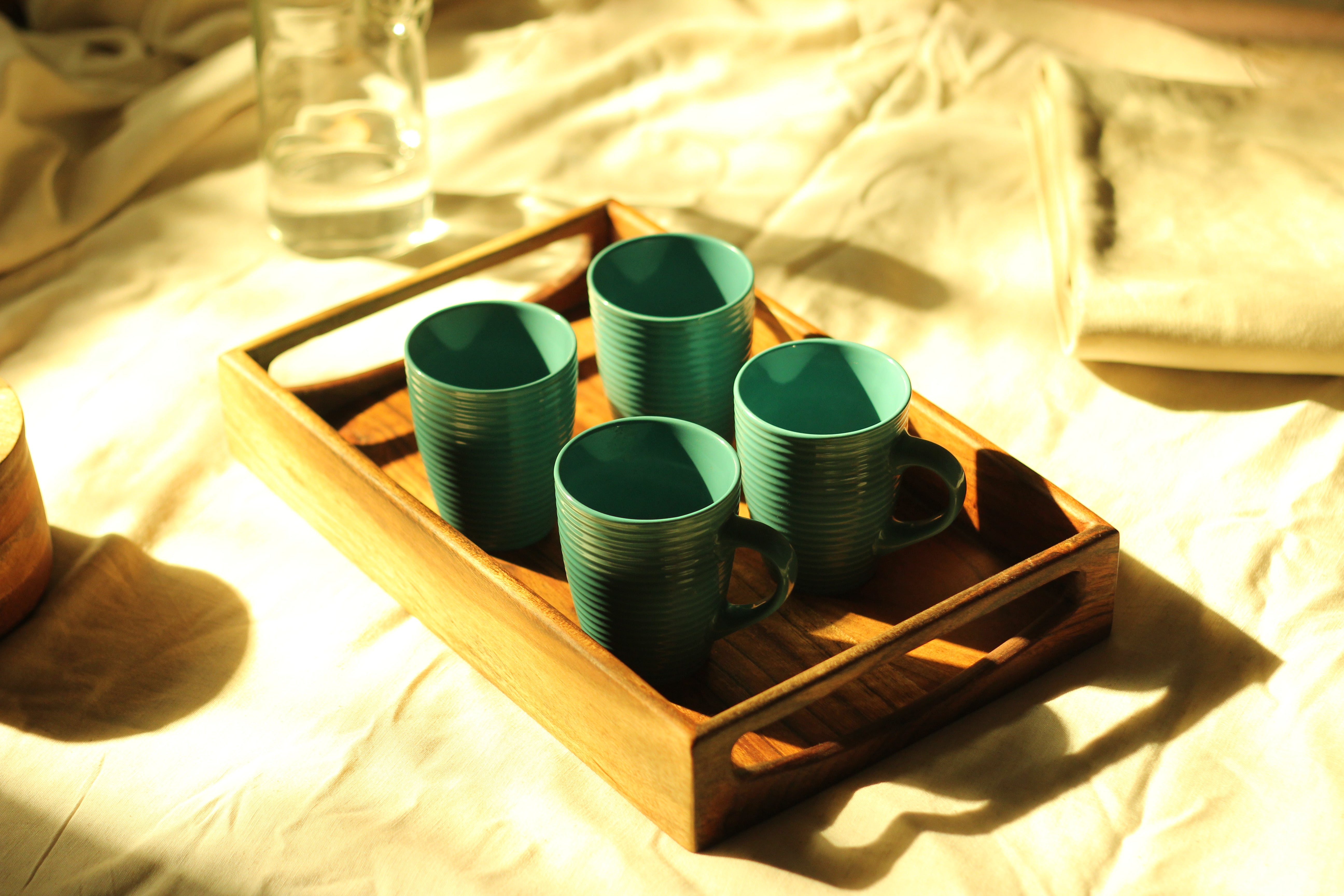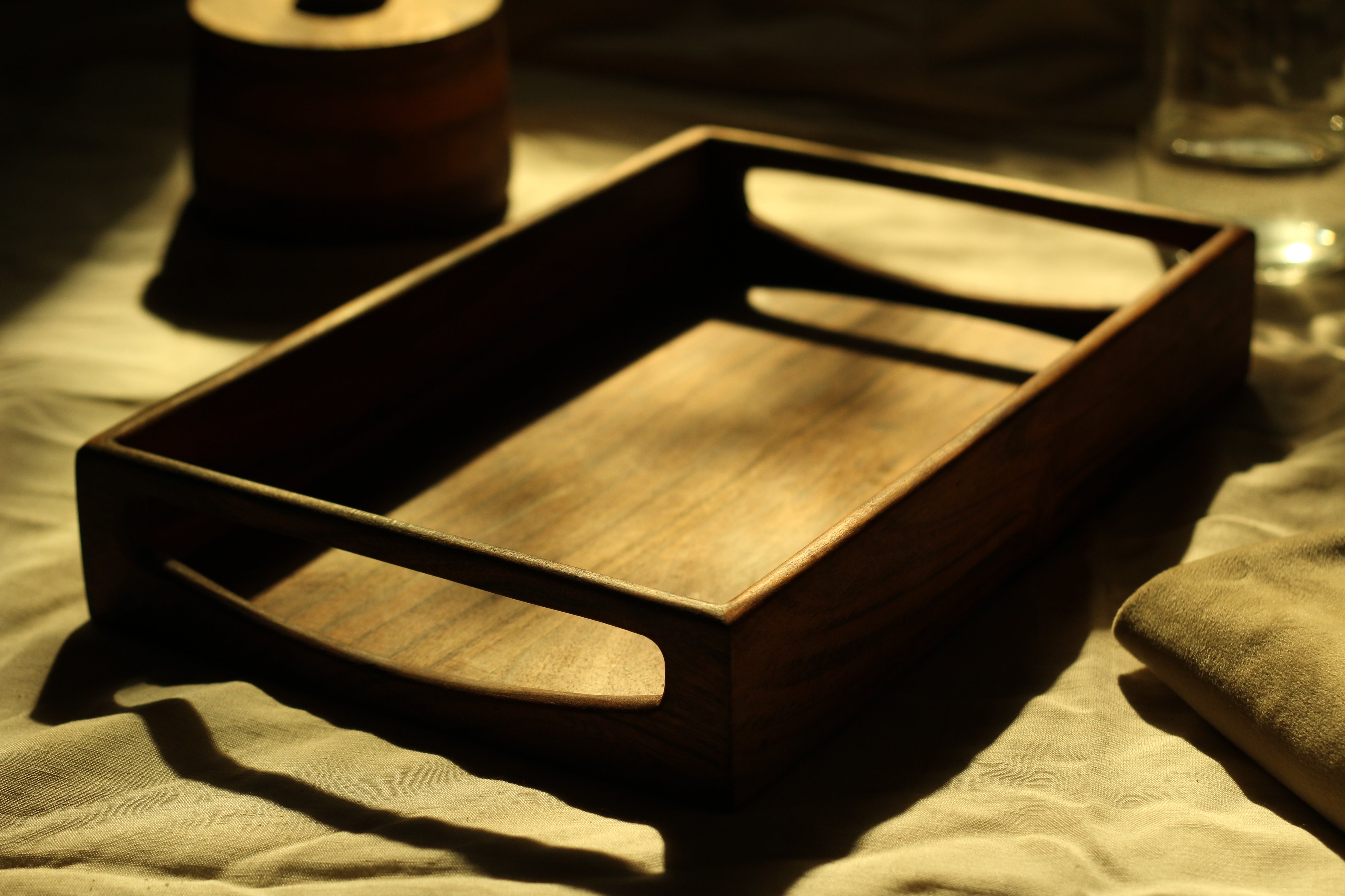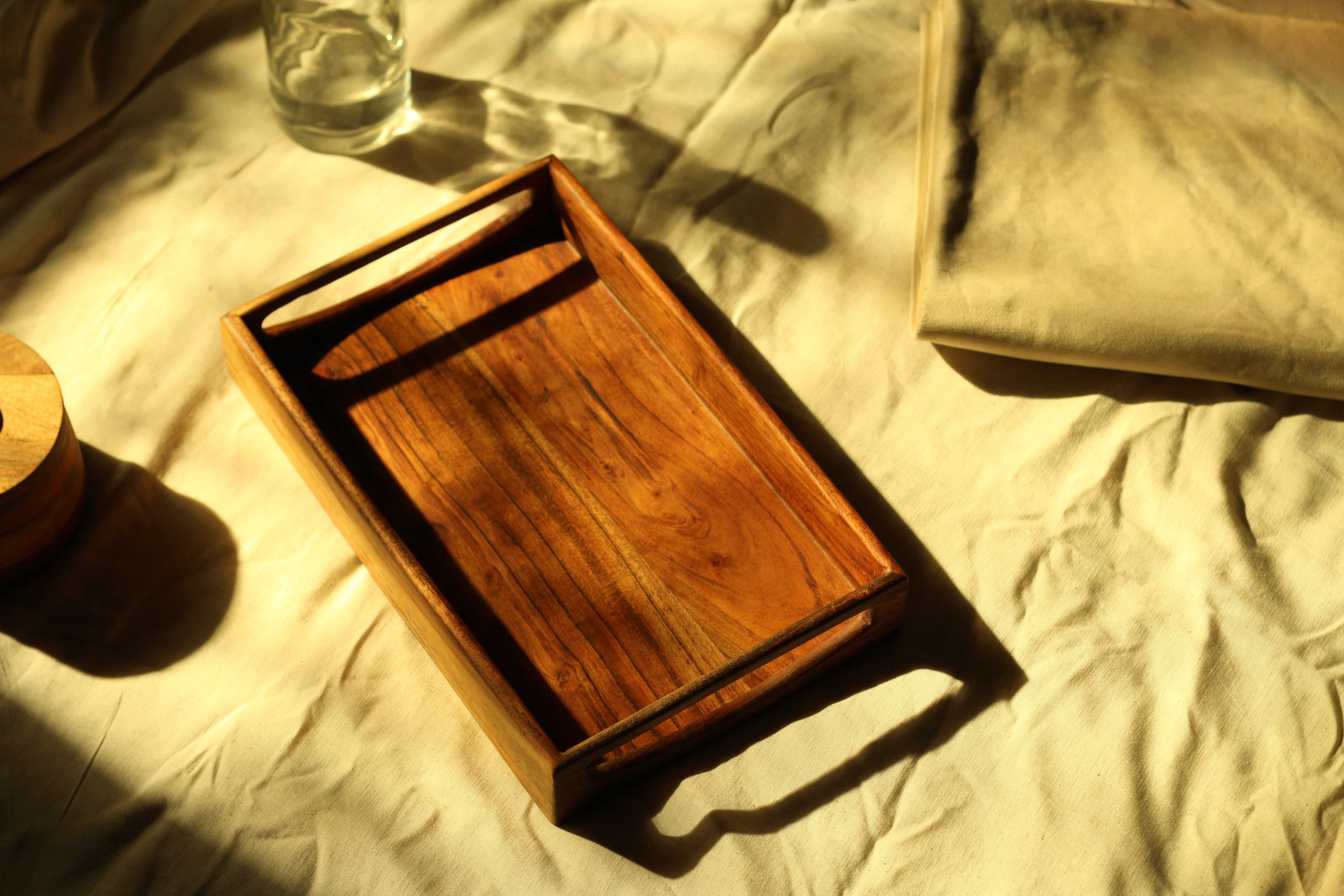 Serve in style with this sturdy acacia tray, featuring a natural finish and raised edges for easy handling.