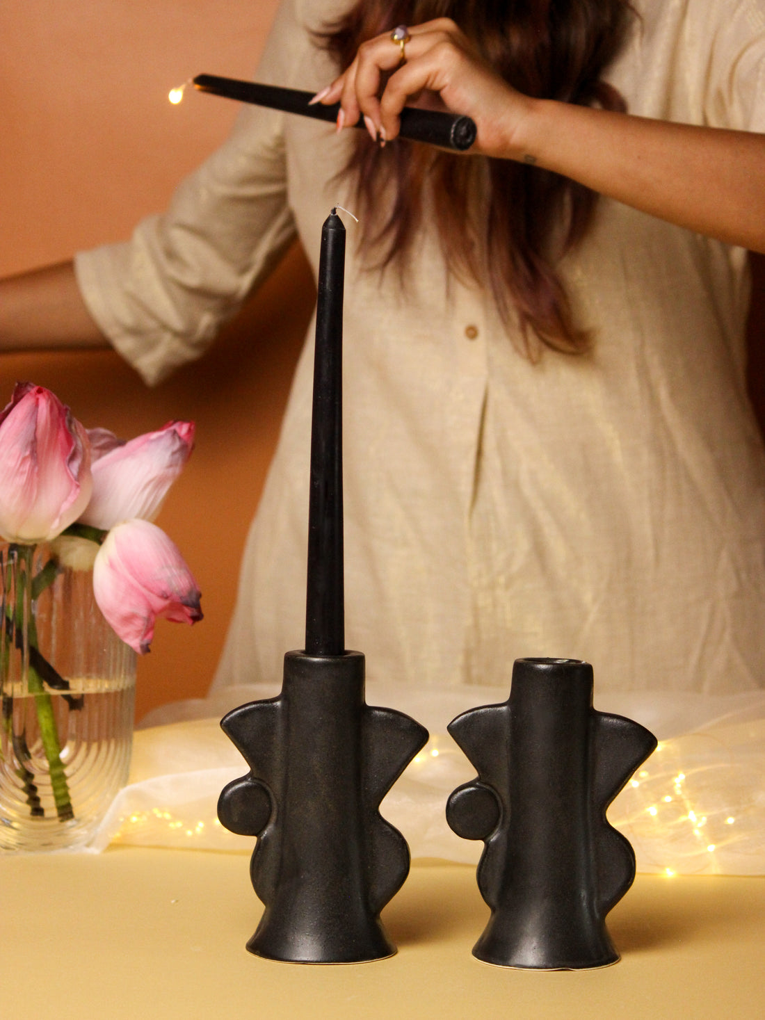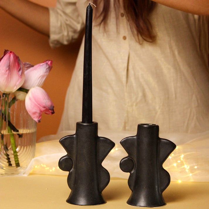 Abstract Design Ceramic Candle Holder (Black) - Set of 2