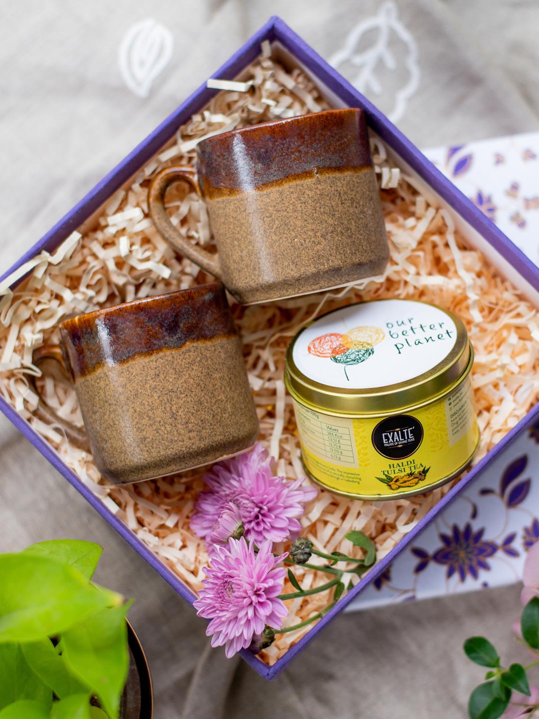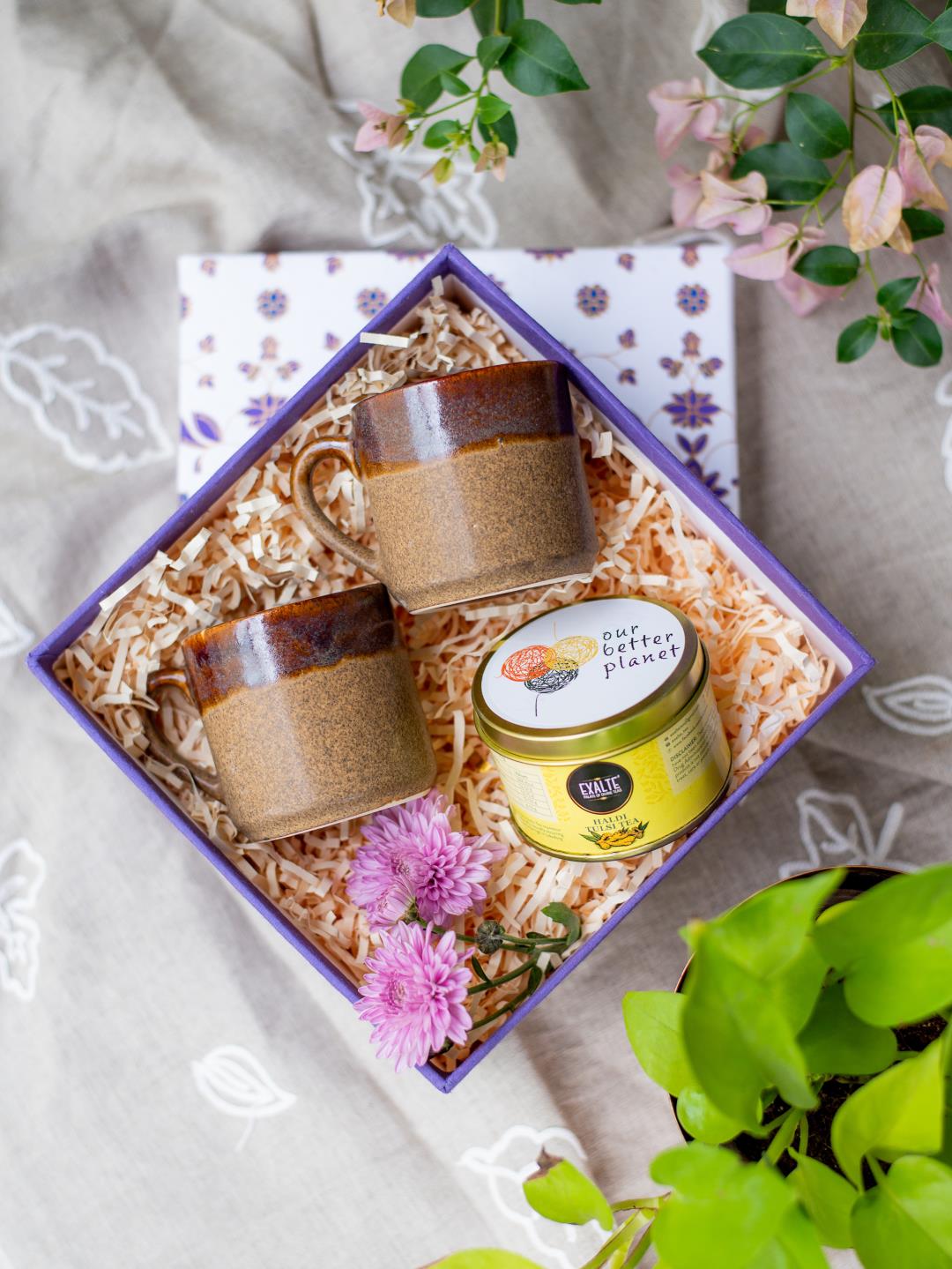 The slow morning's hampers set the mood for the most active morning, it helps you kickstart your day in the most relaxed manner with a set of two handcrafted ceramic mugs and a box of hand-brewed tea straight from the hills of Kerela.
