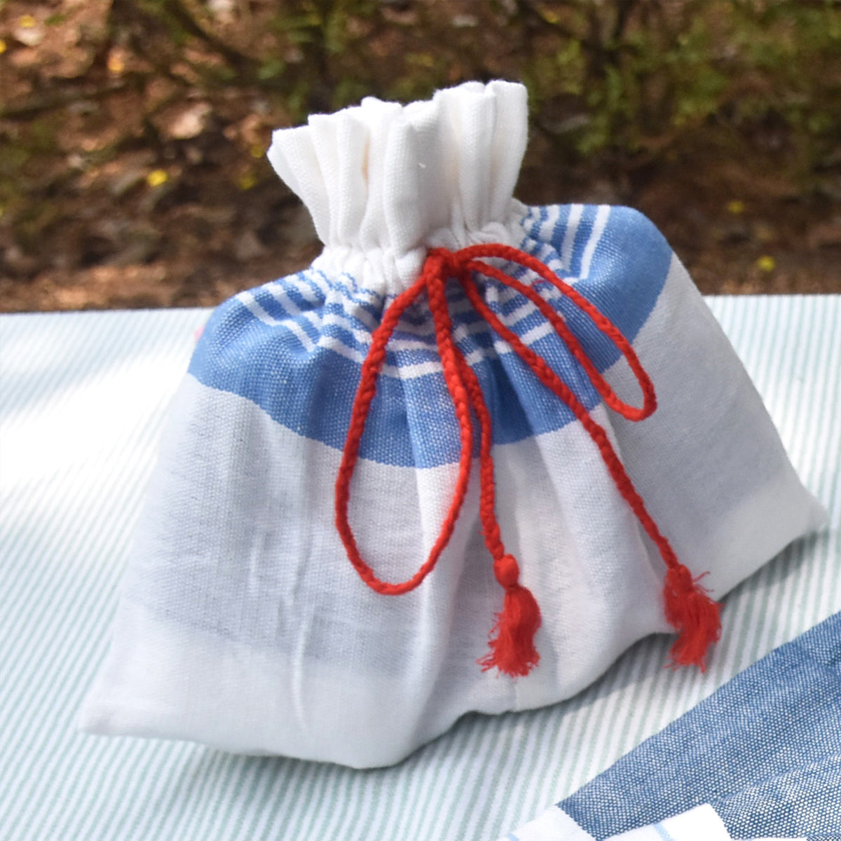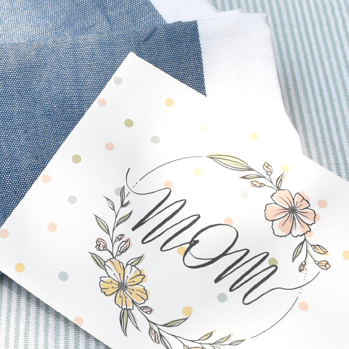 Fabric drawstring pouch + Illustrated 'mom' card