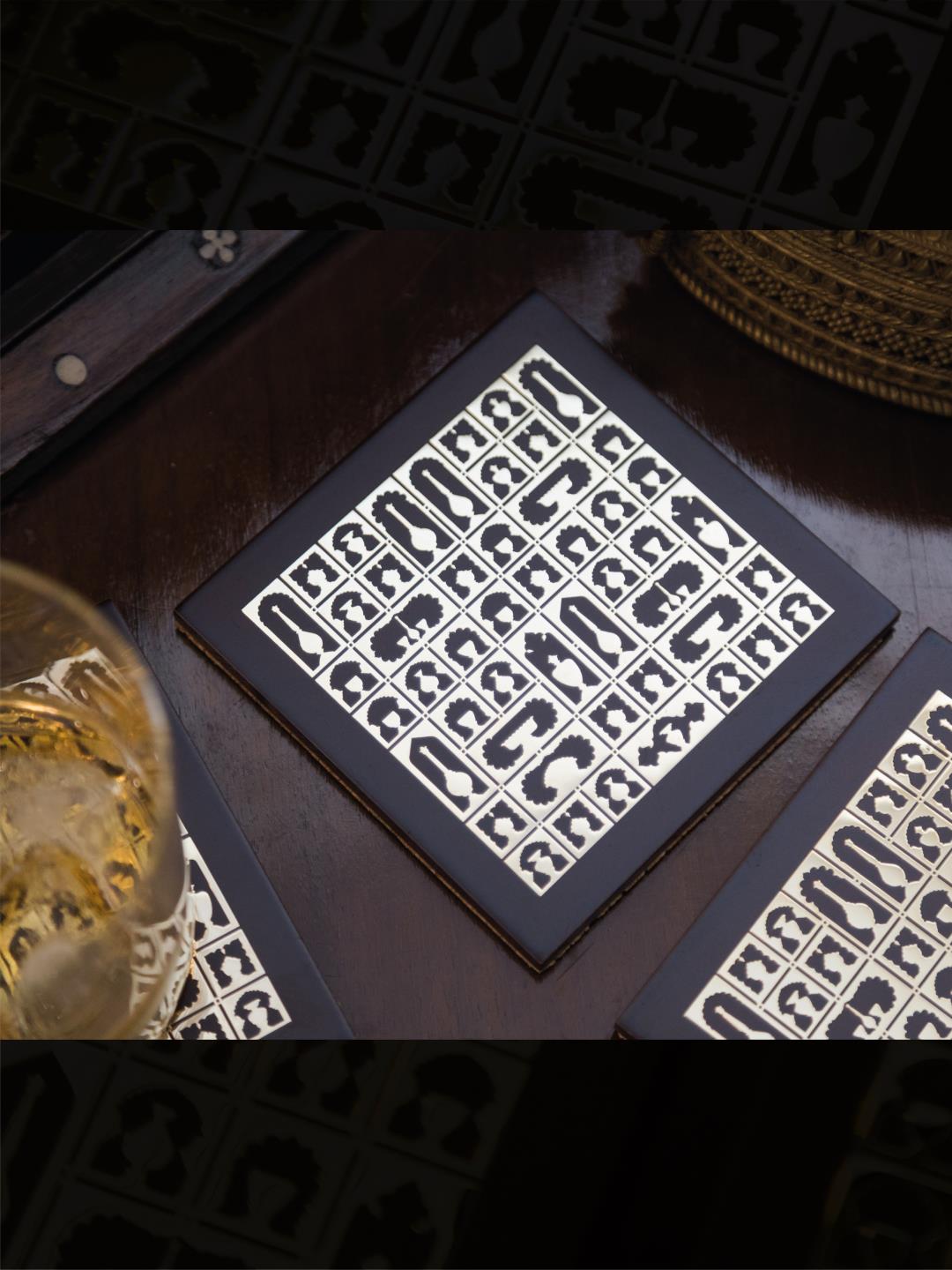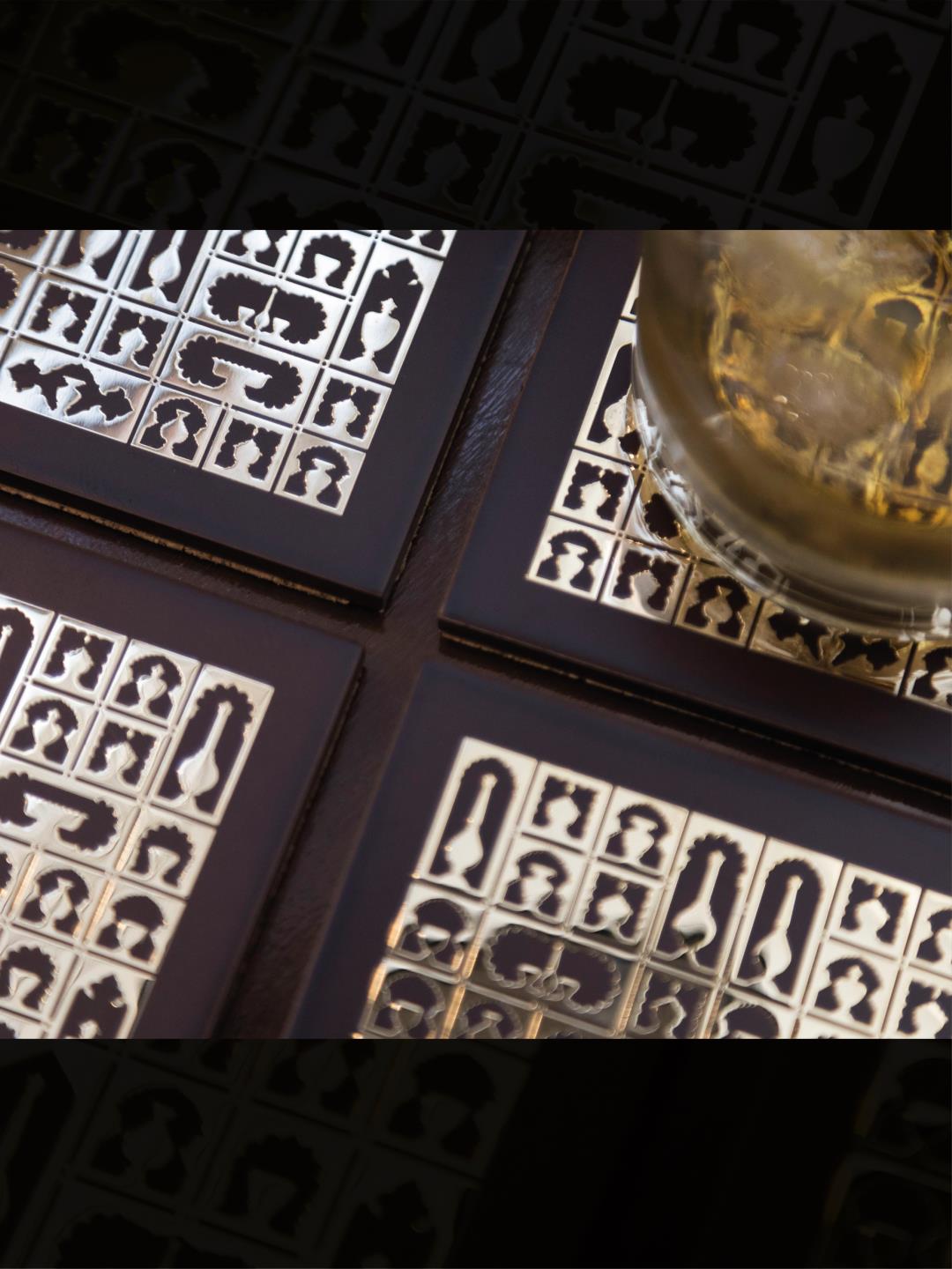 Each miniature arch has a vessel brimming with drink and these coasters are not only unique accessories but also tiny windows to a splendid past Size: 4 x4 x0.25