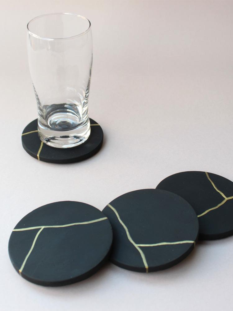 This beautiful set of cement coasters painted in matte black and gold is a beautiful and classy addition to your tableware. They are beautifully handcrafted and painted to elevate your dining experience and bring a smile on your face. They also come with a cork padding at the bottom to prevent any scratches on your table or any surface that you would be using it on. They are also a perfect gift for any occasion such as housewarming.