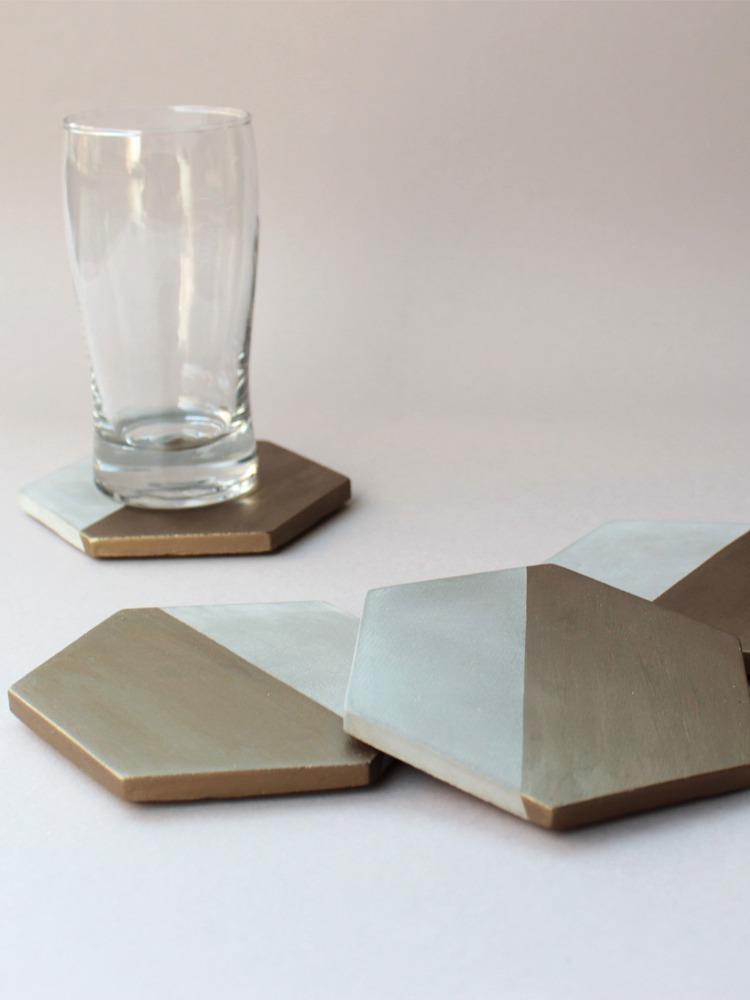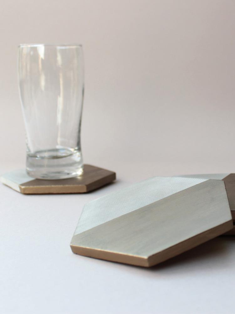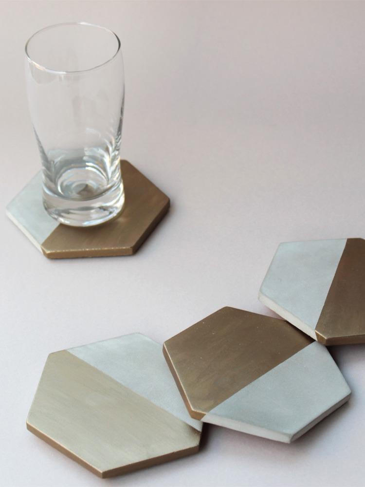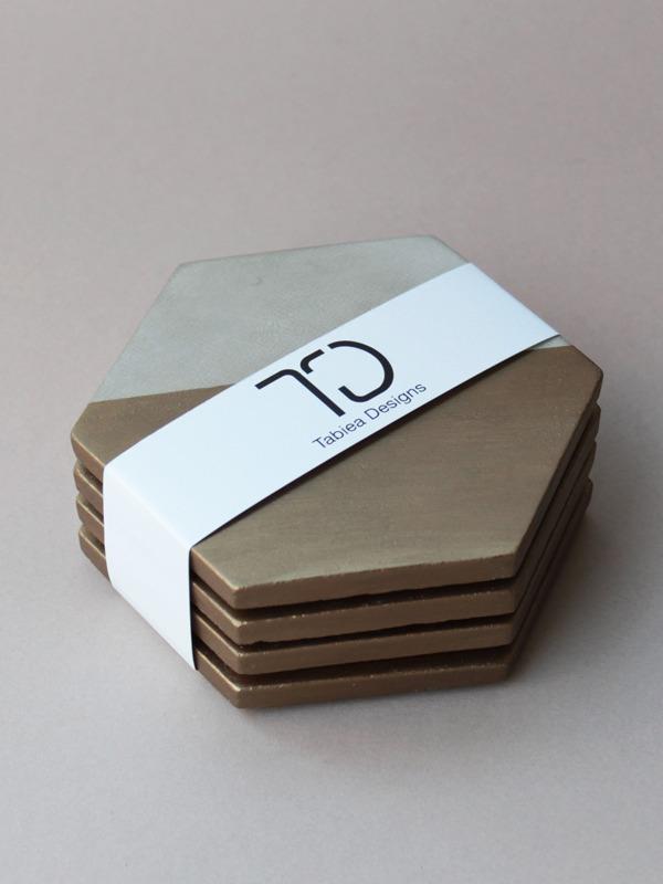 Tabiea Designs Hexagon Cement Coasters- Natural and Bronze- Set of 4