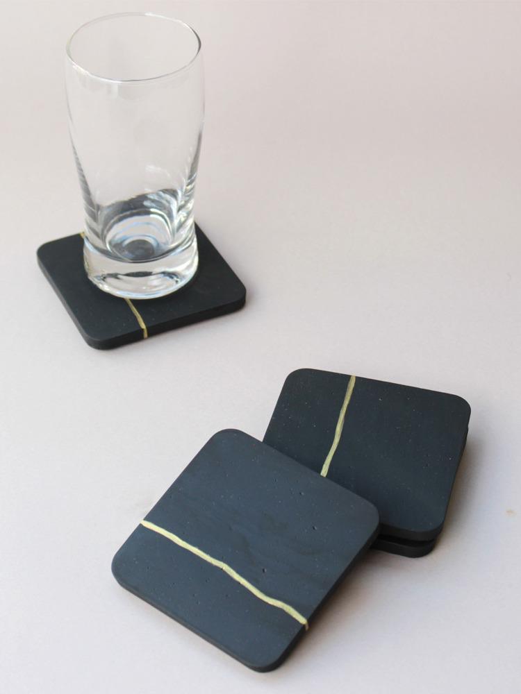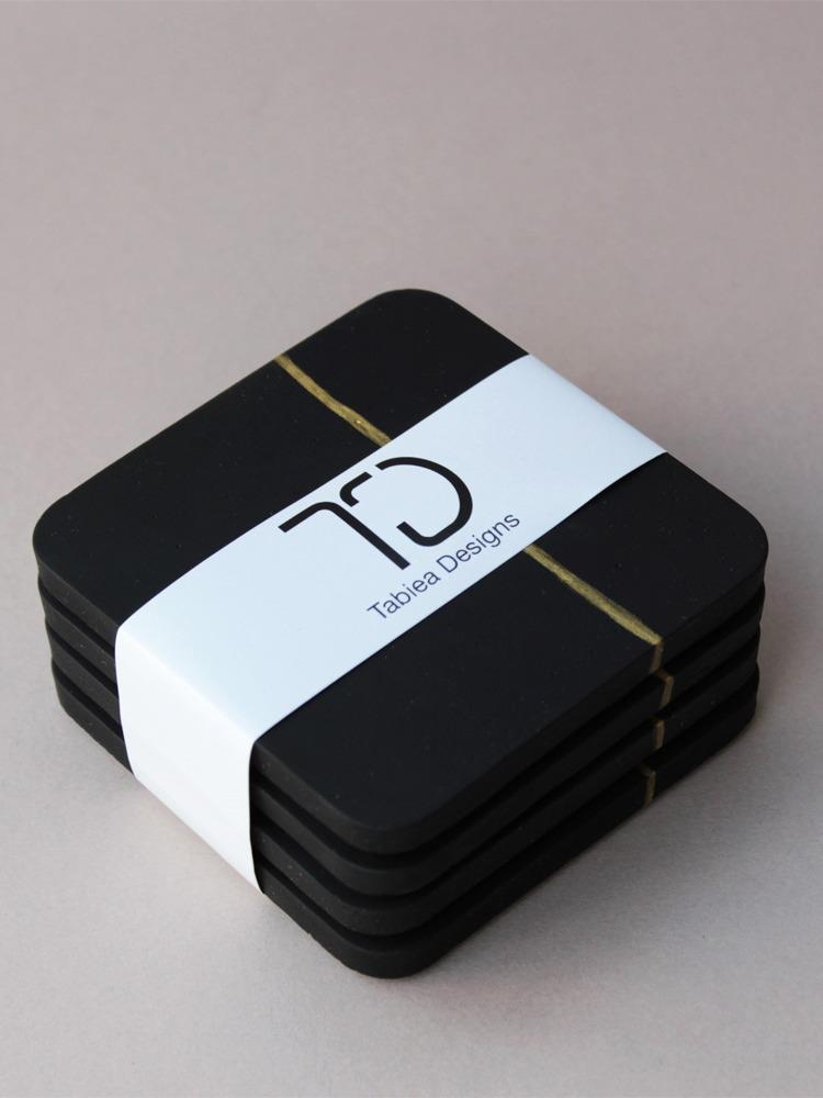 Tabiea Designs Square Cement Coasters- Black and Gold-Set of 4