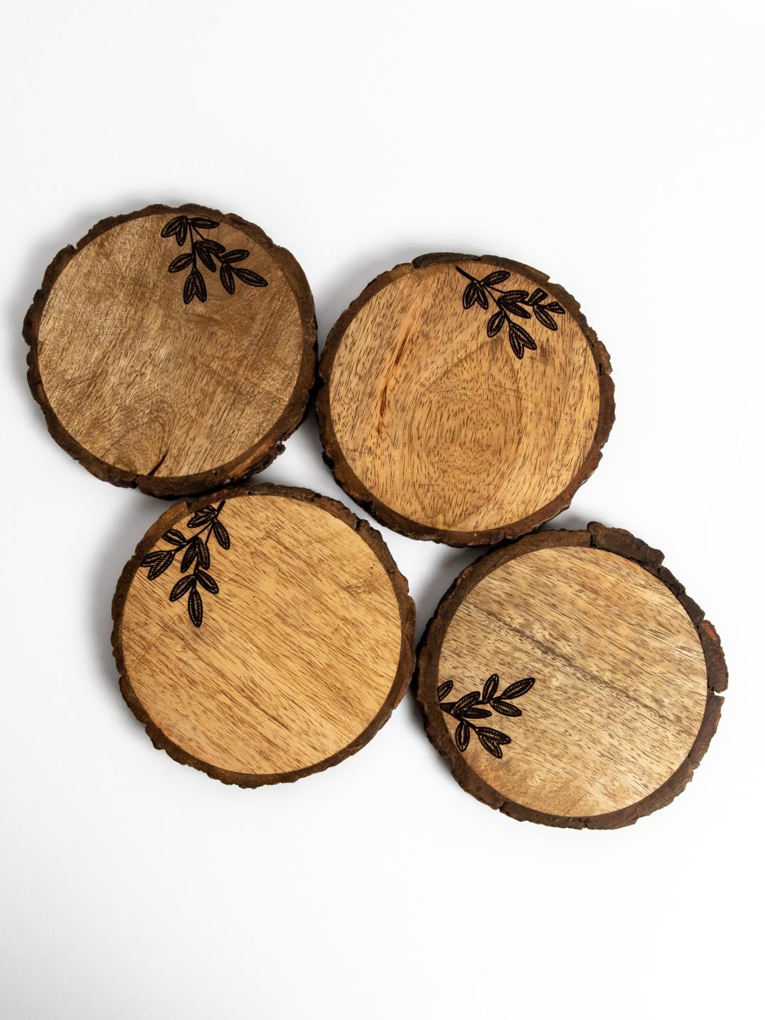 - Made in mango wood , finished in bark edges ,it is engraved with an intricate pattern which makes this set all sorts of unique.