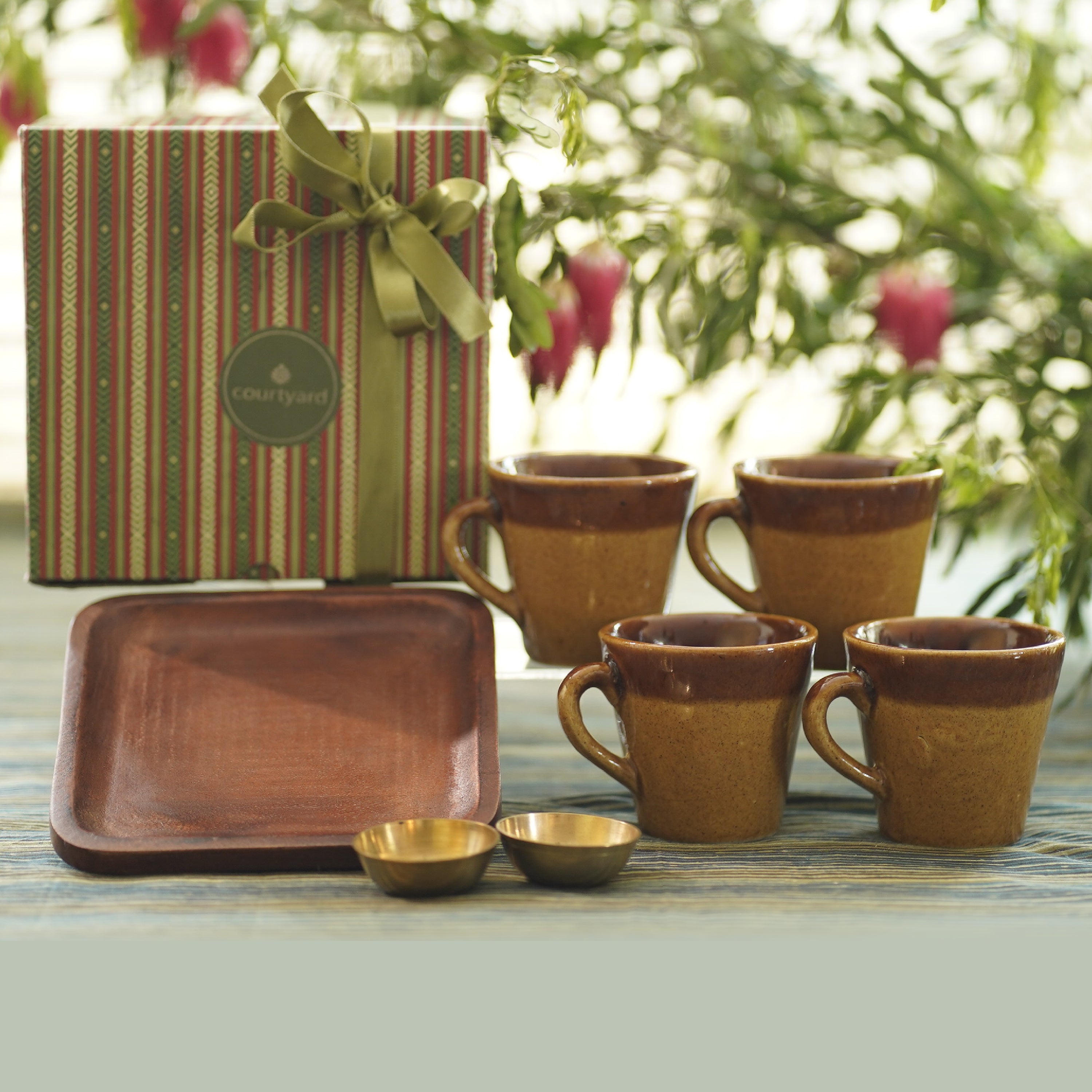The Madhuram Collection brings together a fine assortment for tea ware and its related serveware in hand thrown ceramic, accented with brass findings and wood. The collection also has interesting tea set combos in gift boxes at amazing prices that are perfect gifts for any celebration and festivities.