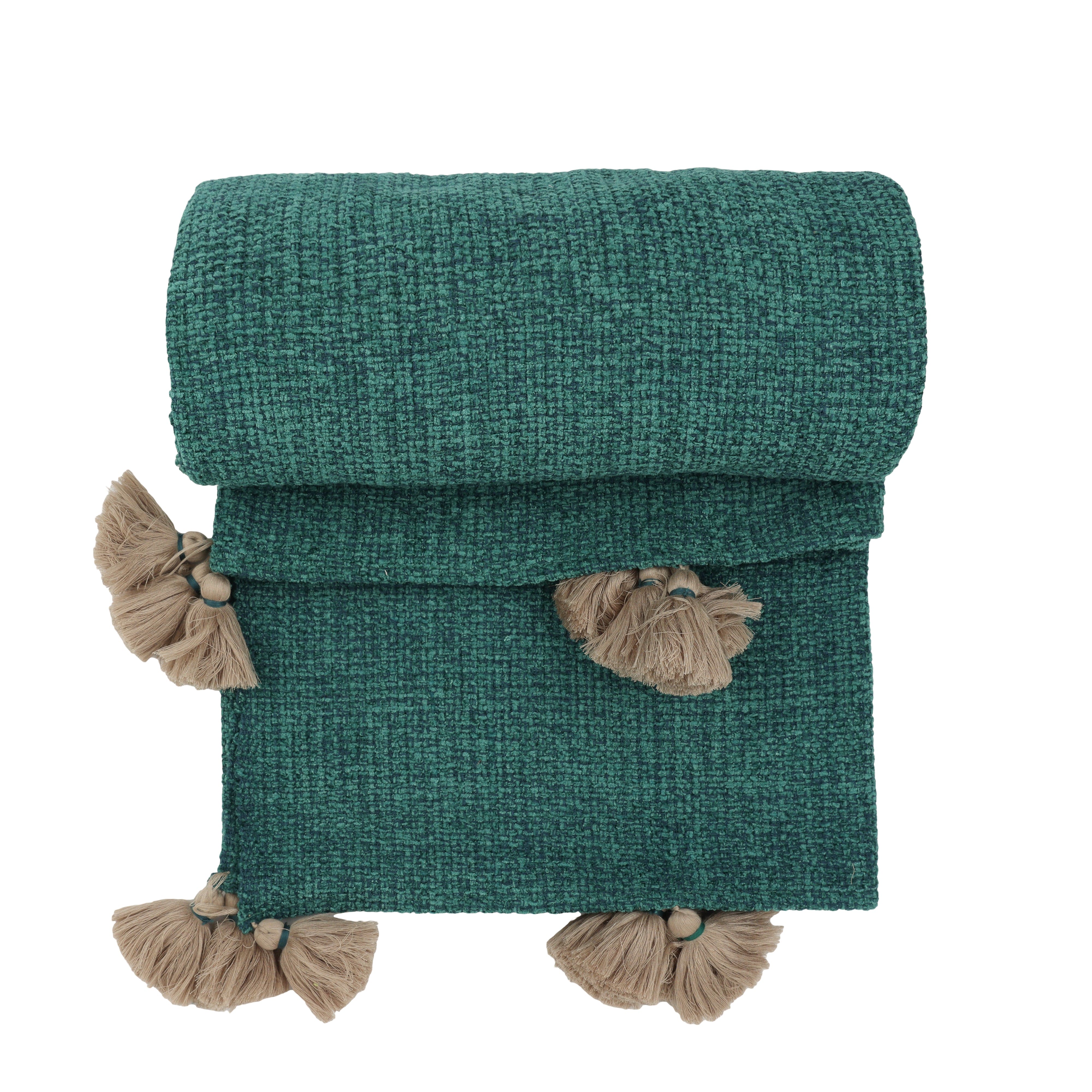 Indulge in the velvety softness of our handwoven cotton throw, featuring a chenille-inspired texture for ultimate comfort. Finished with charming pompoms, it's the perfect blend of luxury and playfulness. Elevate your relaxation experience today!