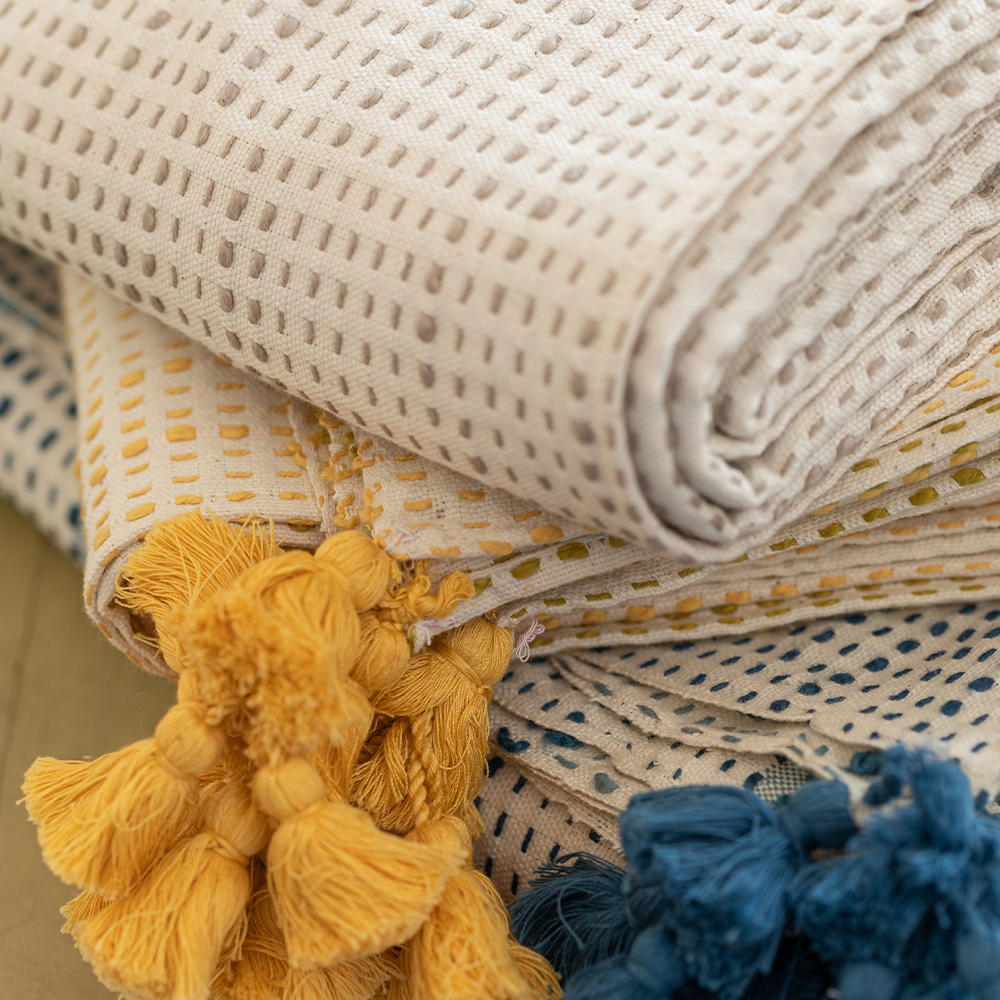 Mindfully made out of 100% organic cotton, our Dashed Pure Cotton Blanket Online will always offer you the comfort you'd want to crawl back into!