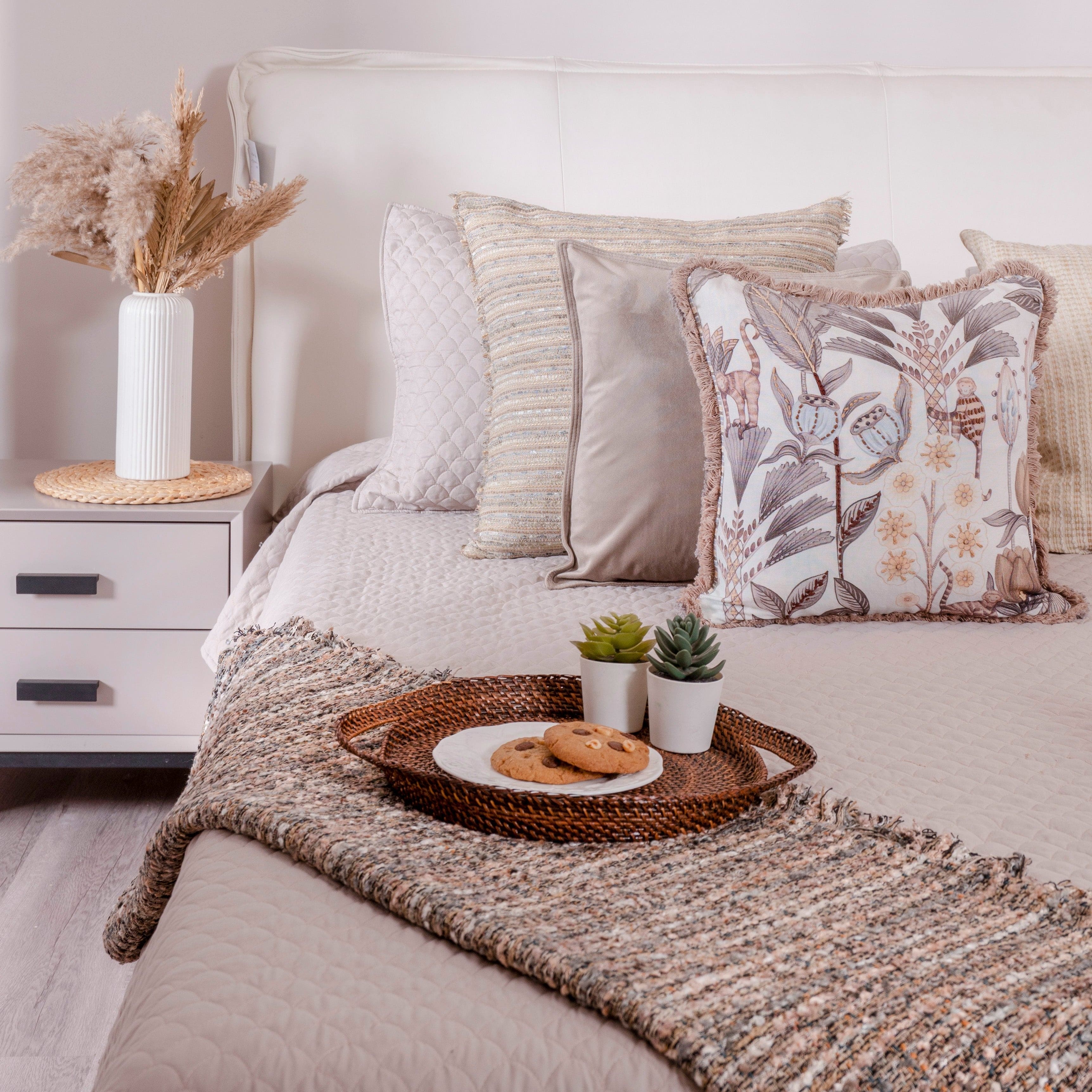 Hand Woven with care, the boucle fabric of this throw boasts of a delightful texture that adds depth and character to any space. Airy and breathable, this throw is the epitome of summer comfort, offering a gentle embrace on warm evenings or lazy afternoons. Whether draped over a sofa or wrapped around your shoulders, its softness and versatility make it a must-have accessory for the season. Embrace the essence of summer with our handwoven boucle throw, bringing a touch of relaxation and tranquility to your home.