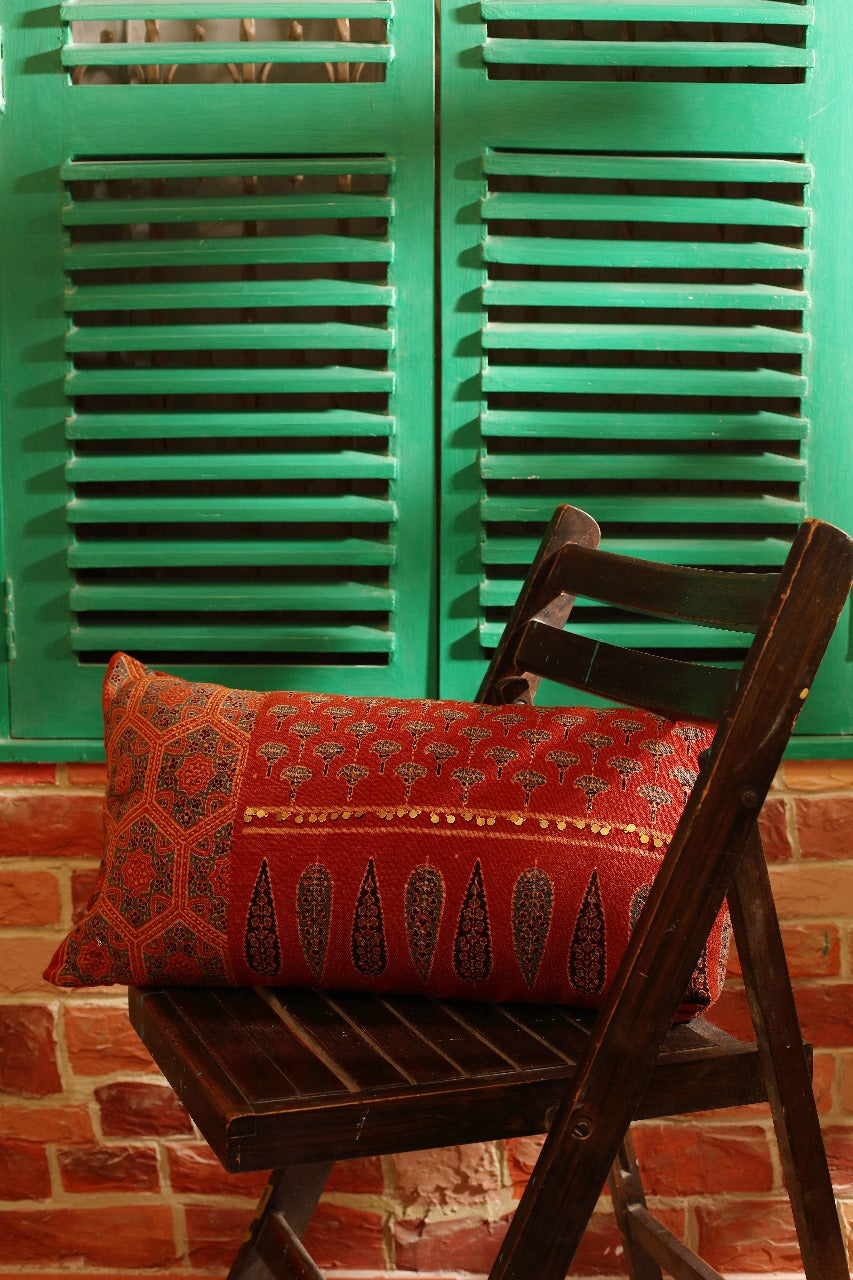 Ajrak Rust Red Handcrafted Organic Cotton Cushion cover (12" x 24")