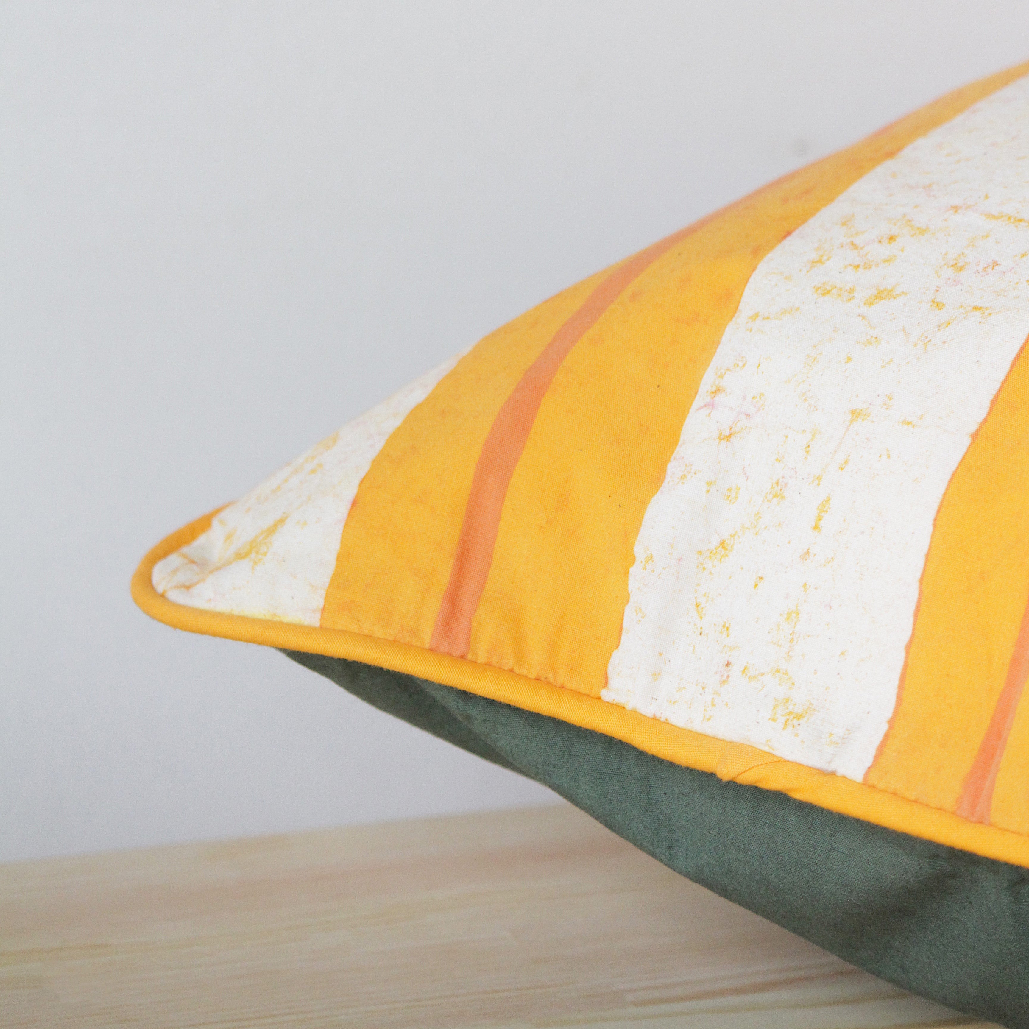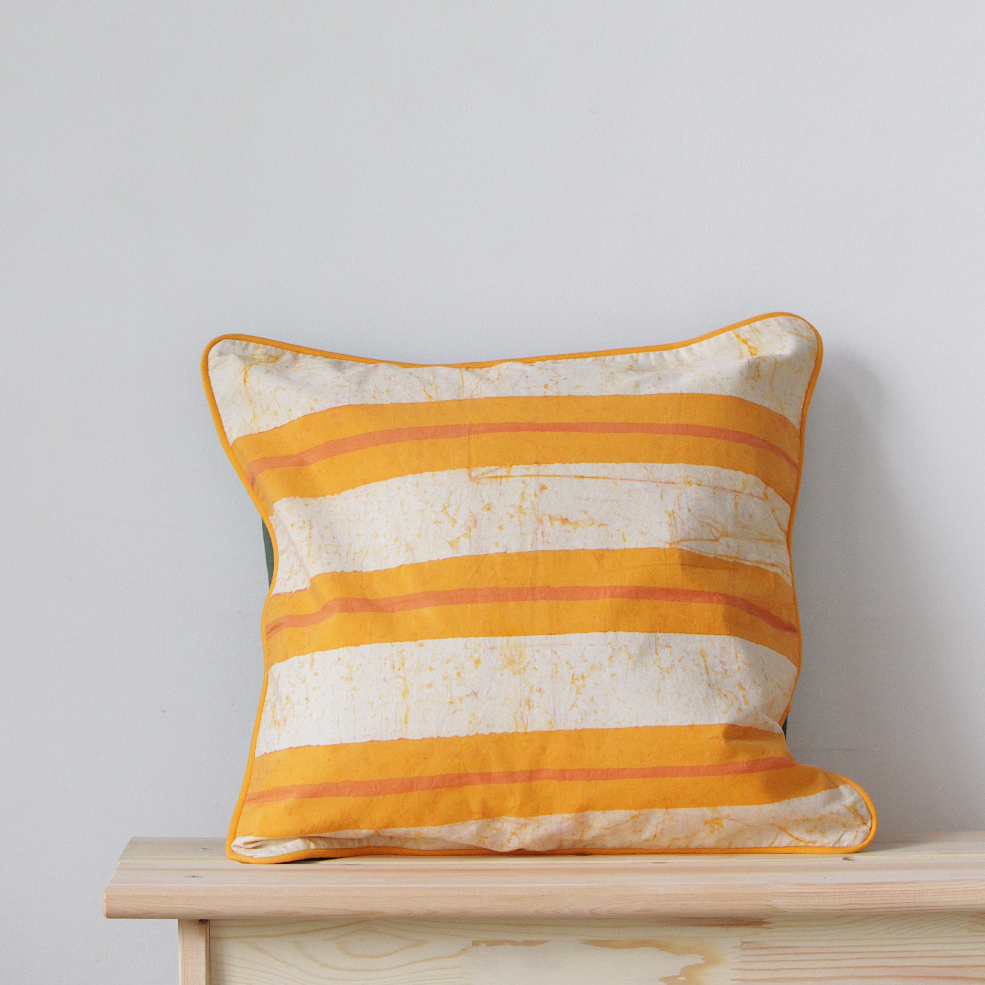 Quaint dwellings lined with beautiful trees big and small, Reminiscent of pot-pourri of fragrant mists, dew and all What more could mother earth ever offer? To walk on pathways graced by flower! Flora is a collection of décor cushions for your blissful spaces, inspired by the earthy palette of flowering trees of India. Hand printed and painted in Batik.