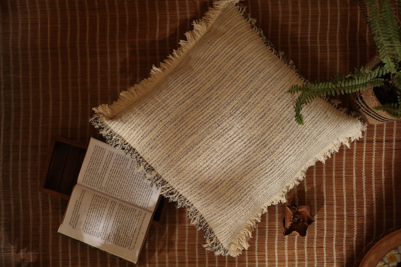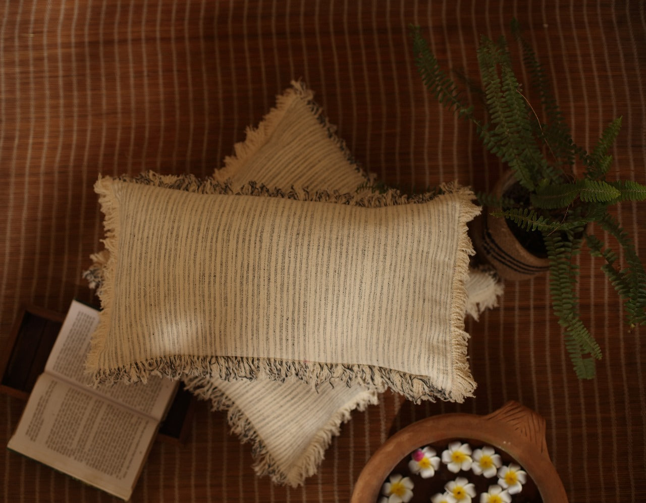 Stripped Organic Cotton Cushion cover with fringes (18" x 18")