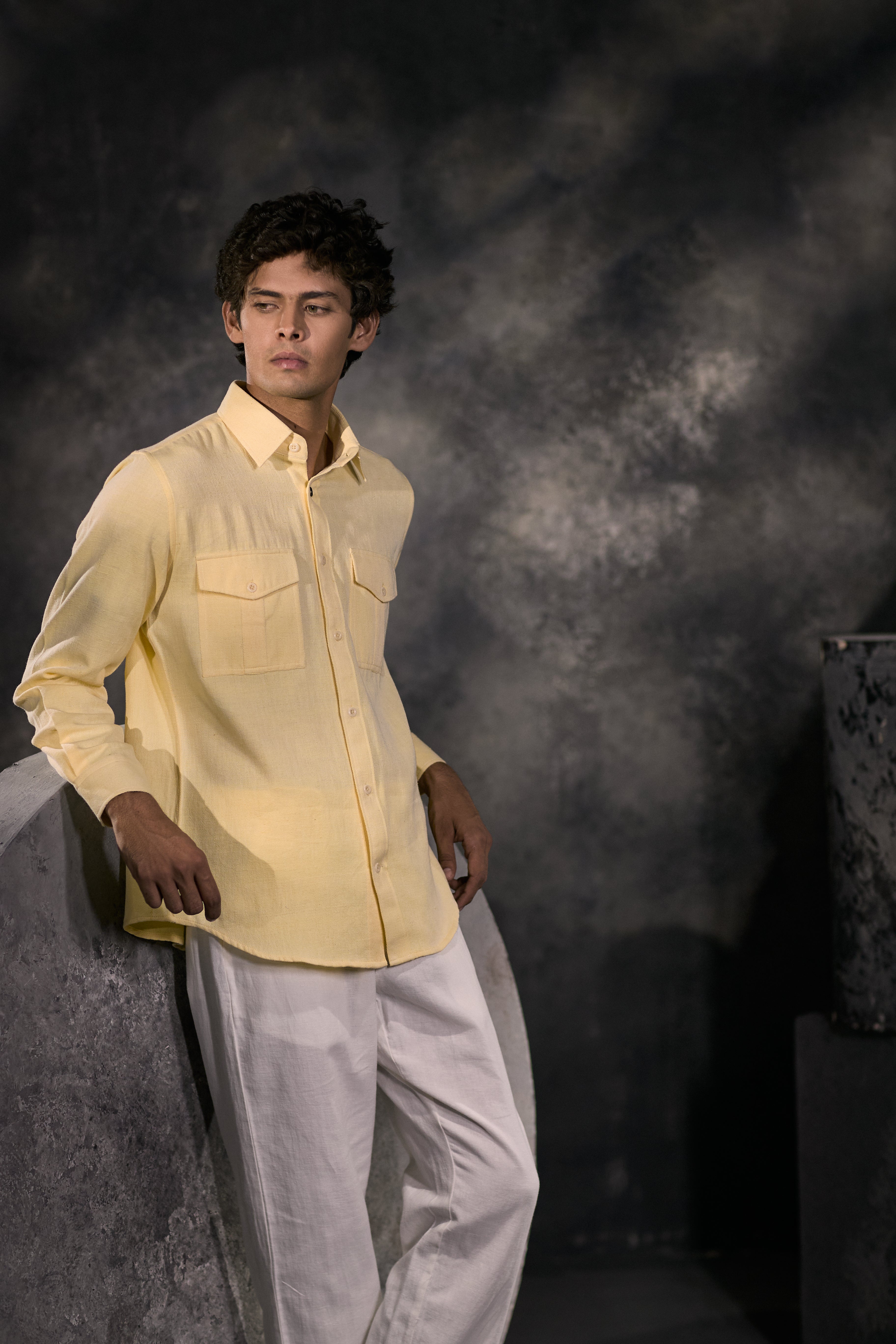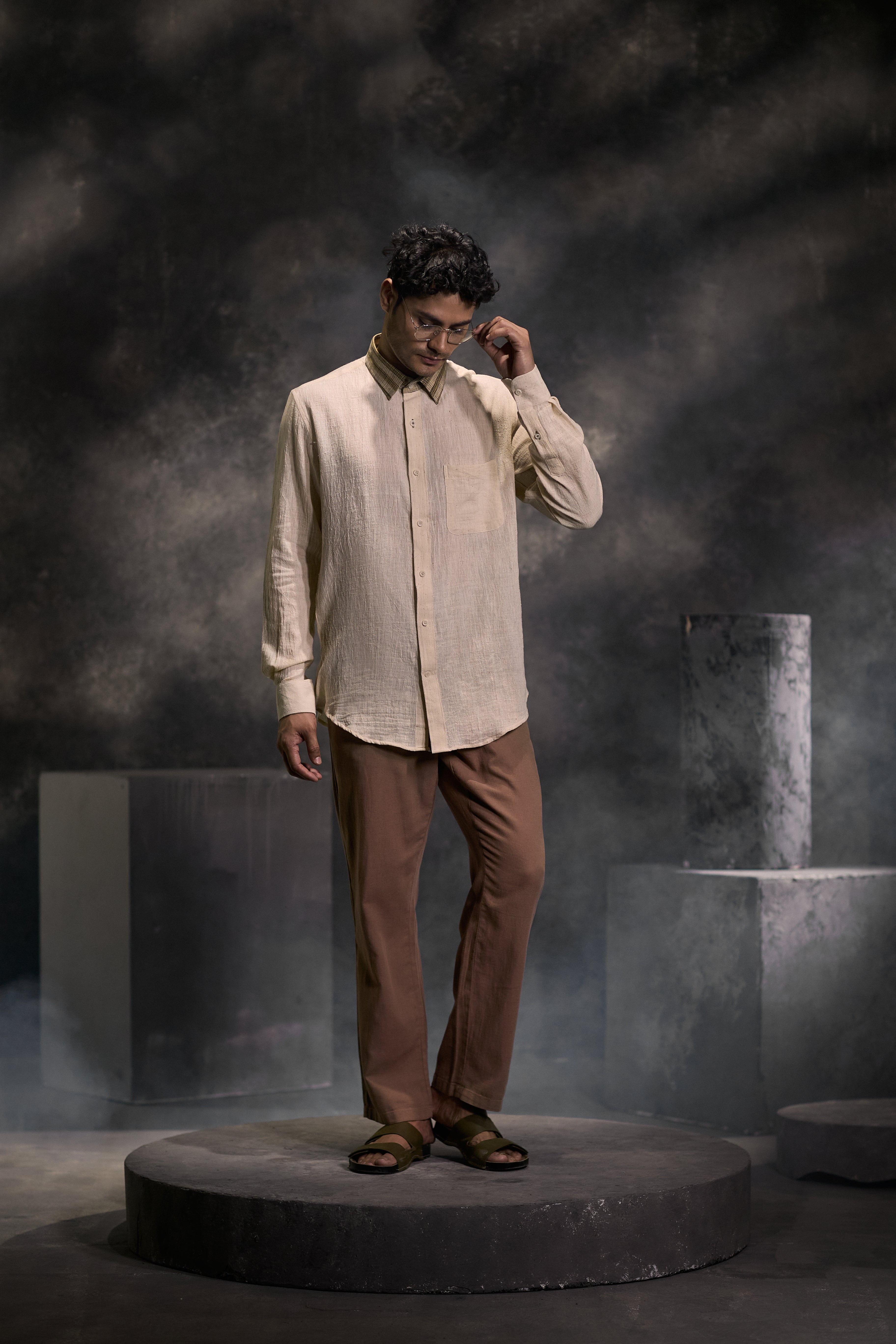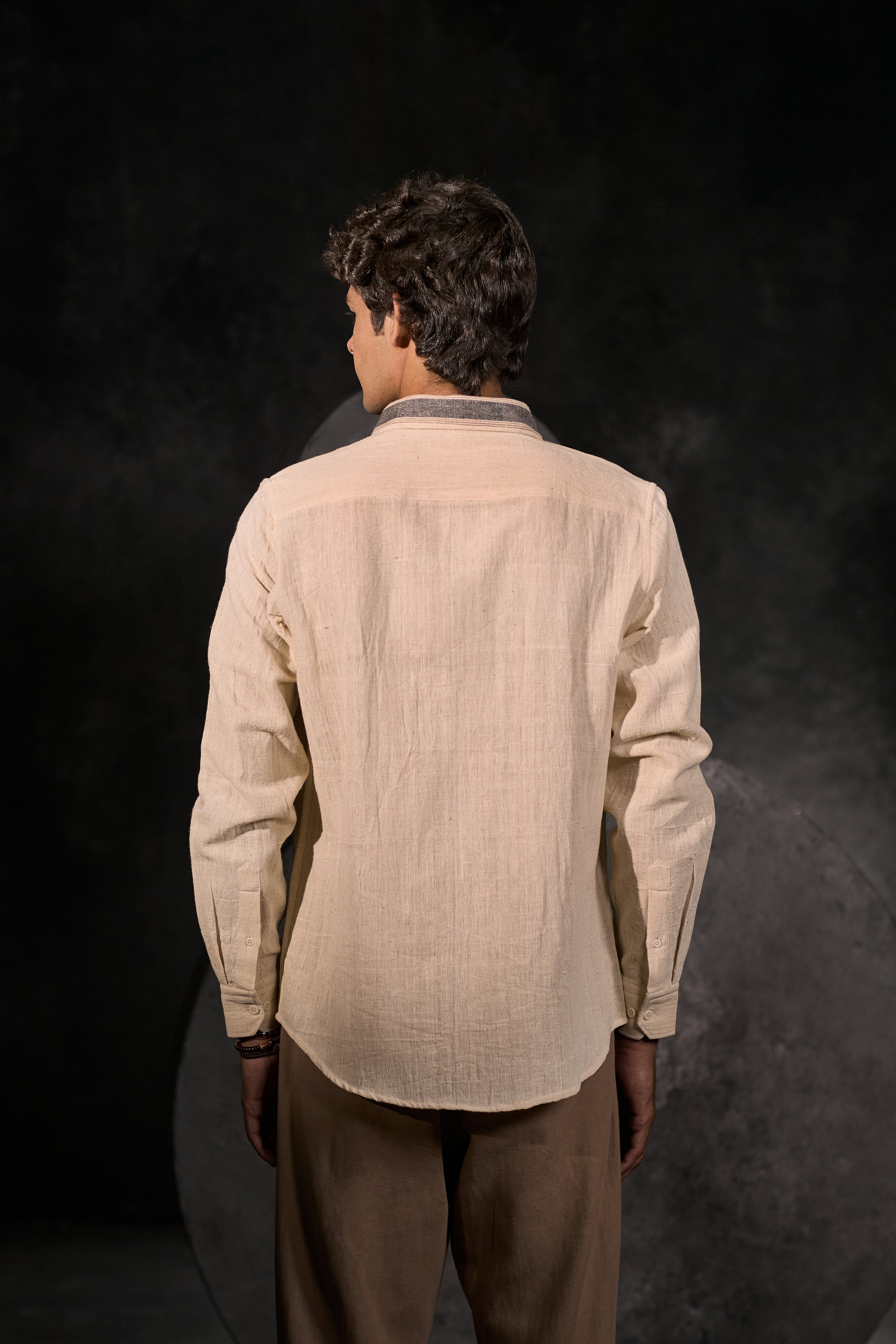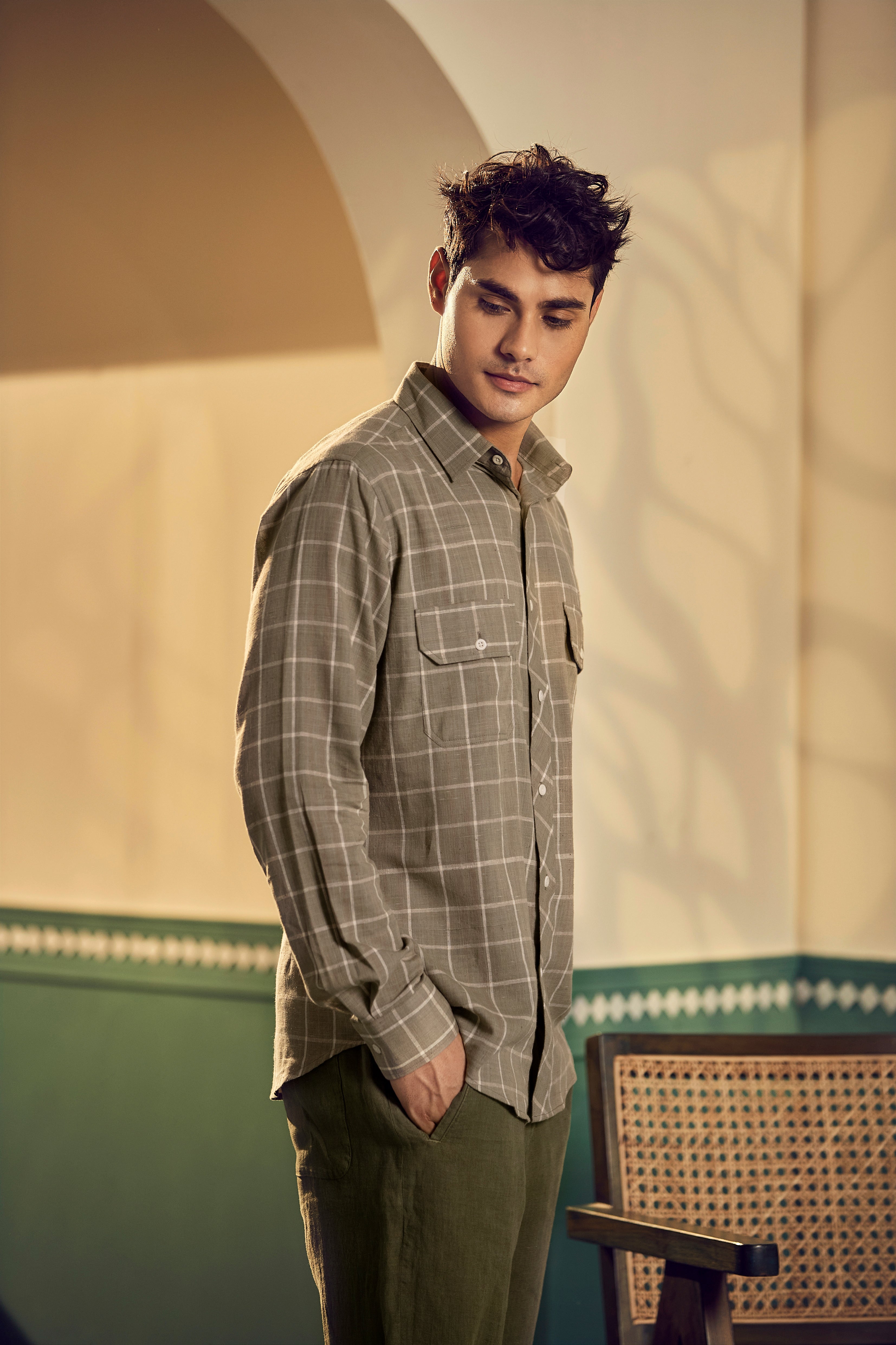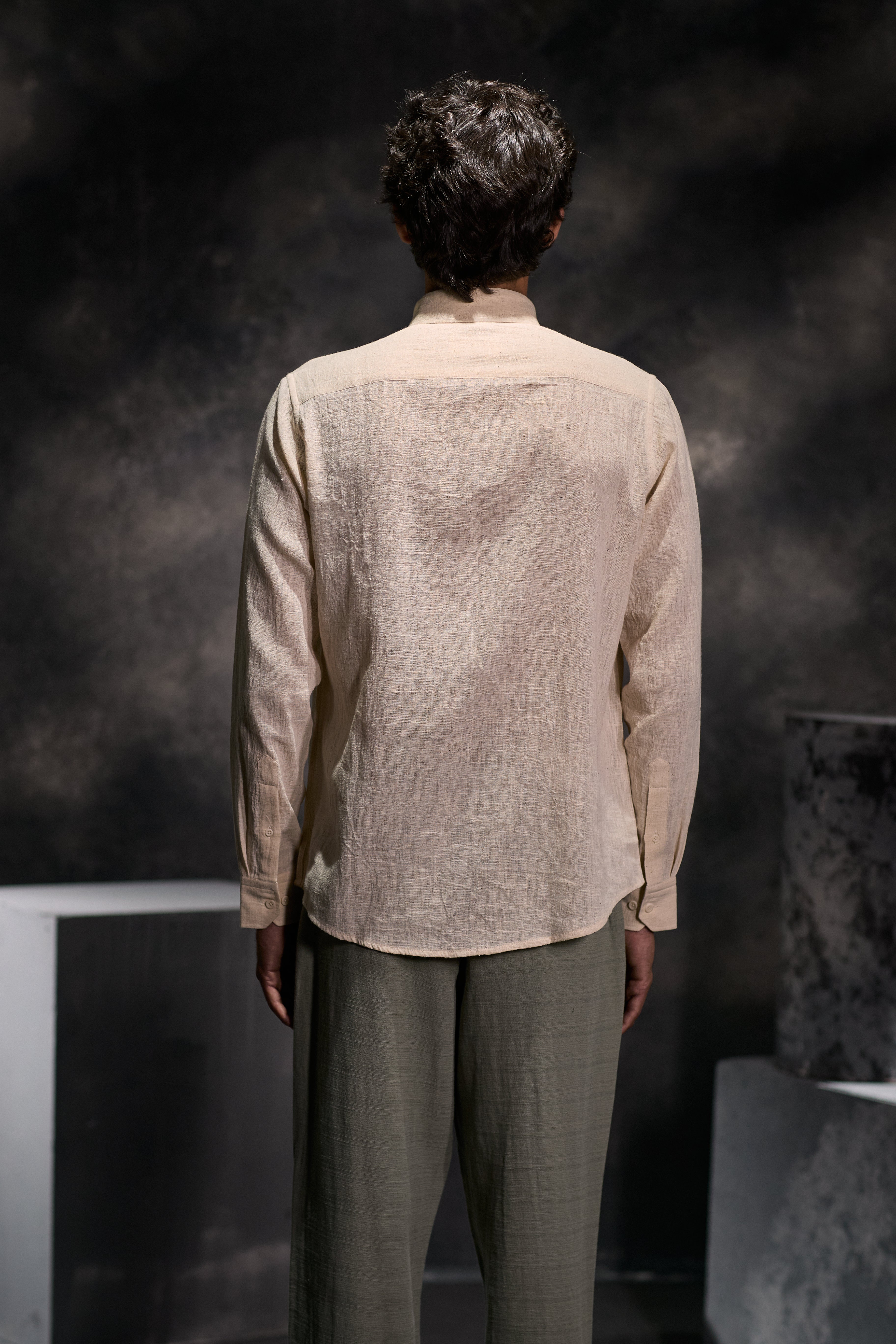 Earthy Route TENCEL- Lyocell Linen Military Green Mandarin Collar Shirt