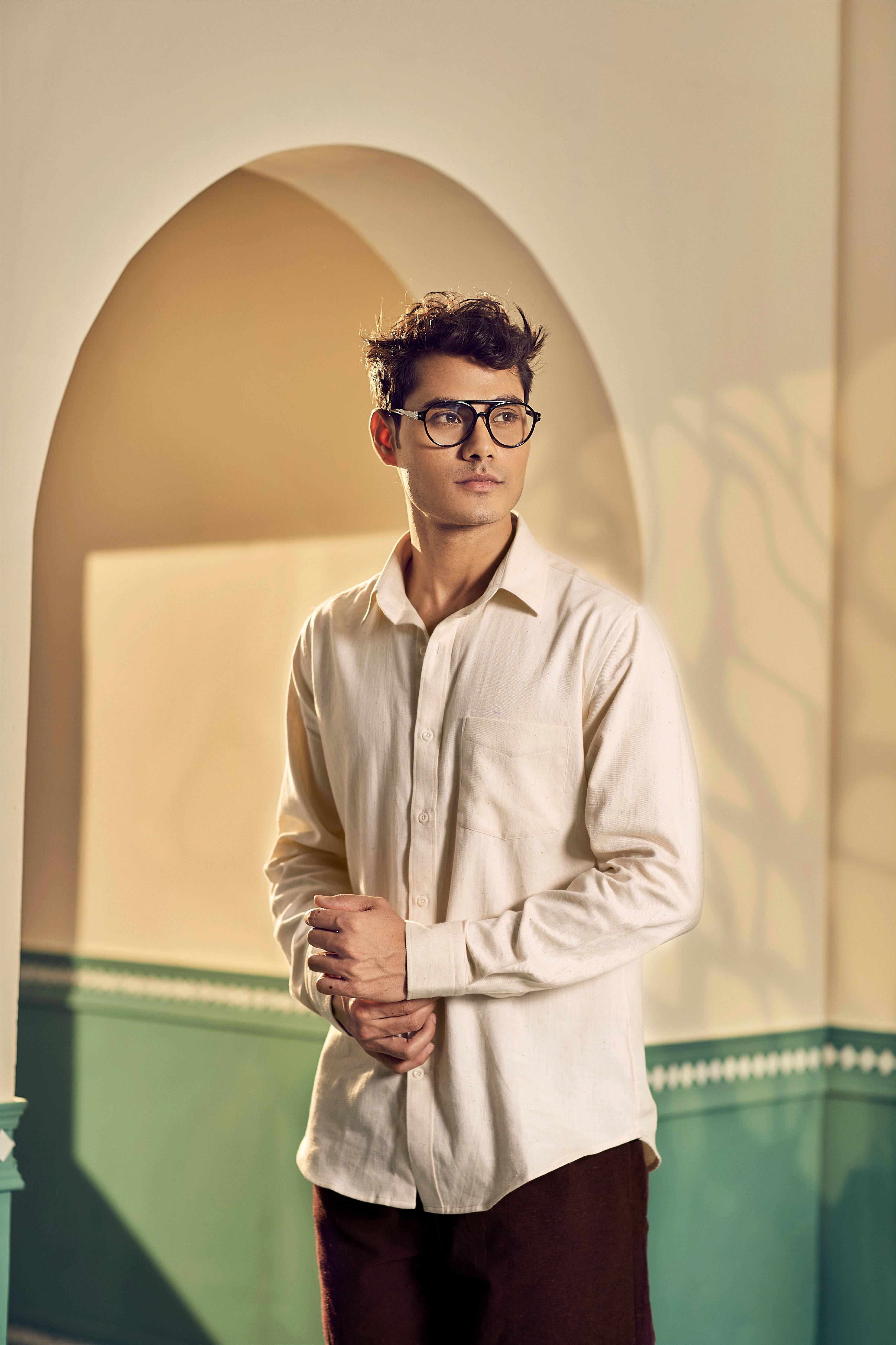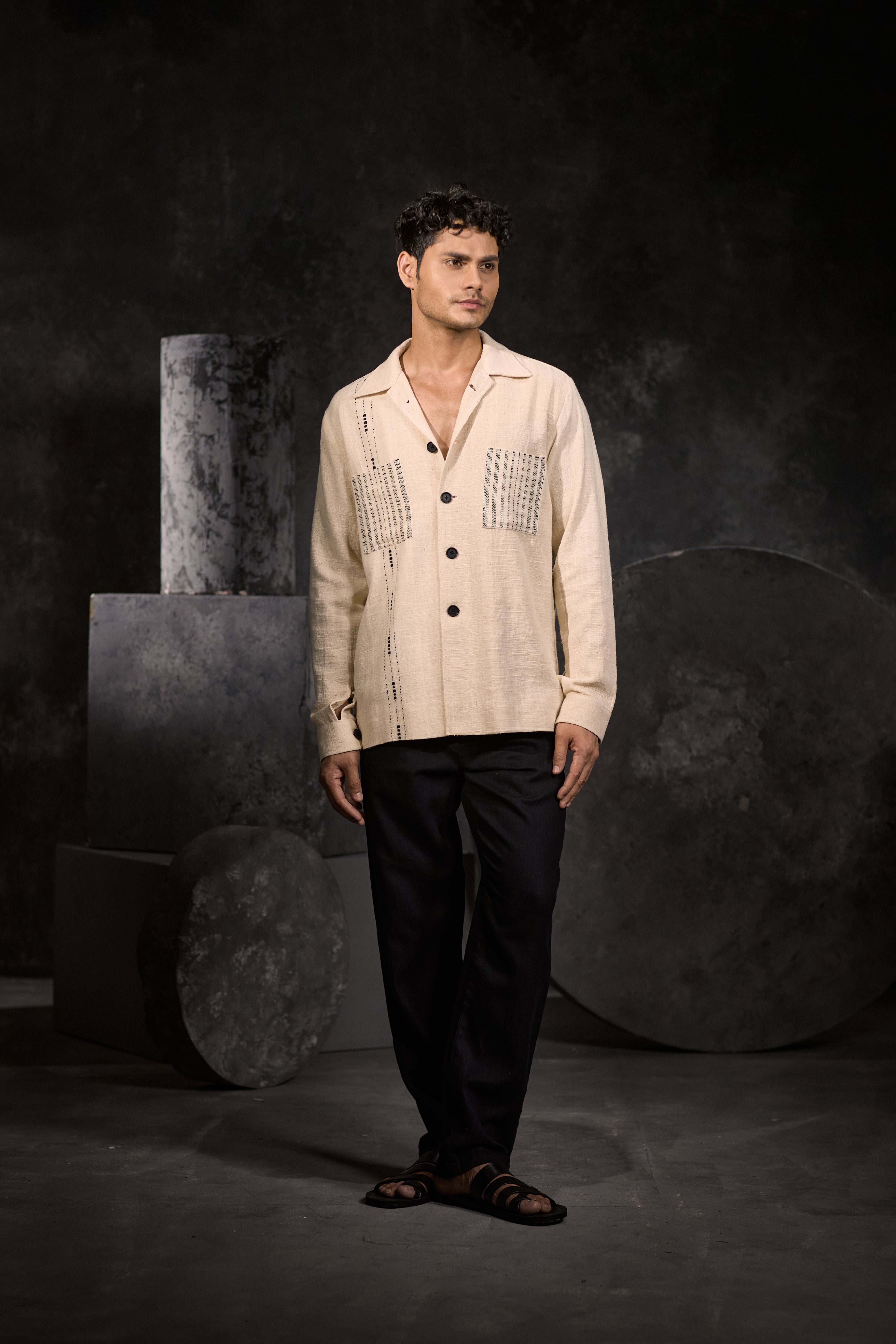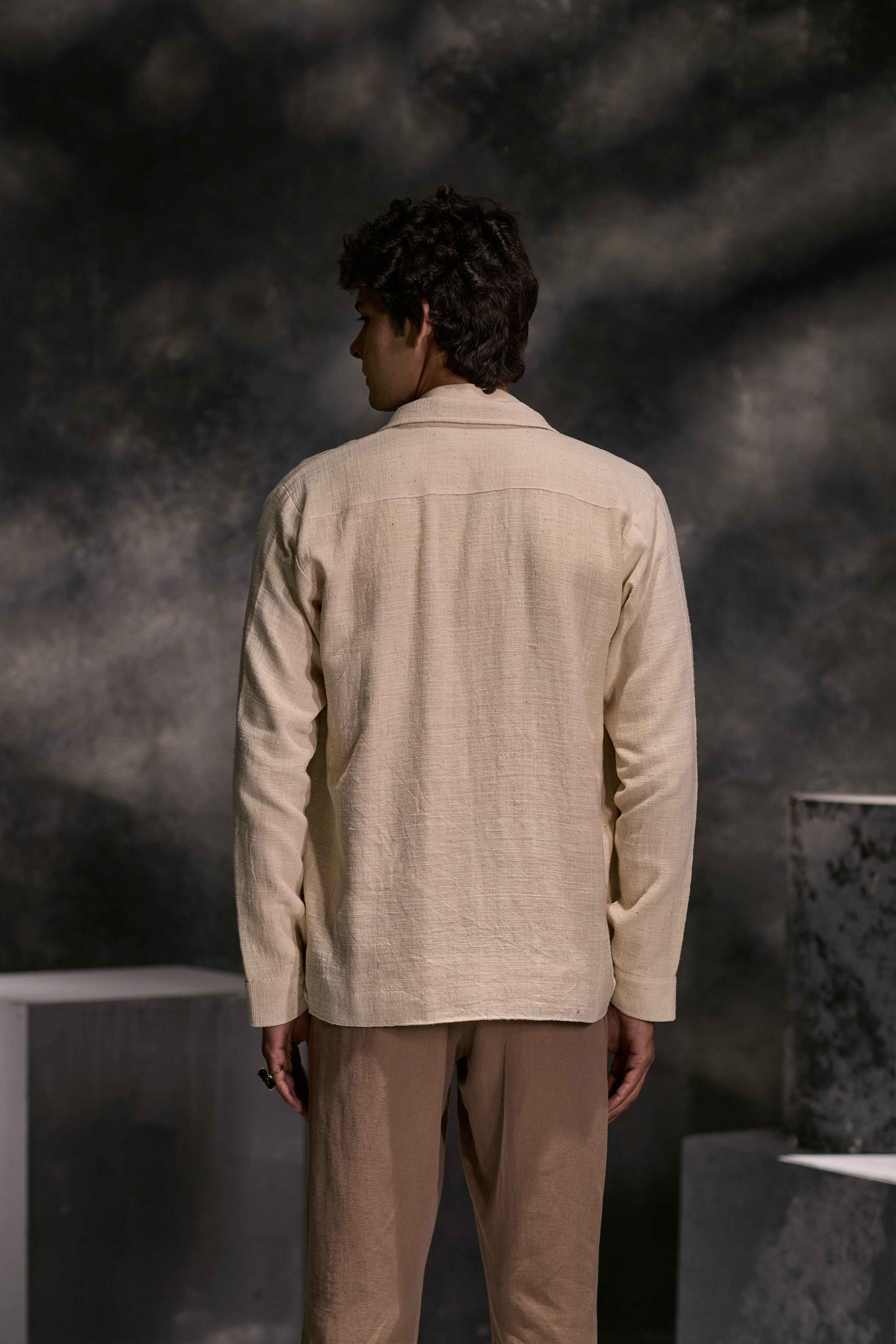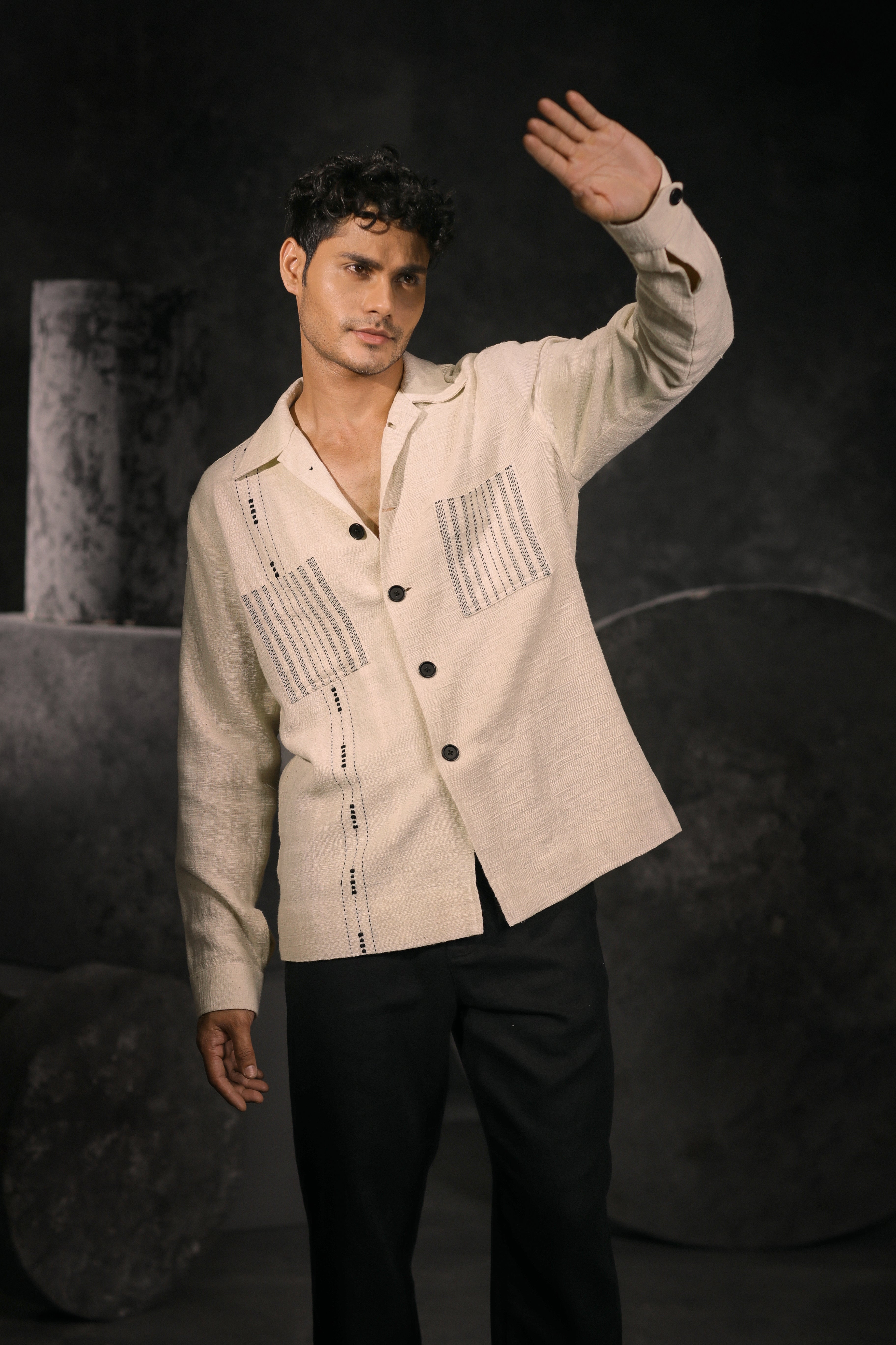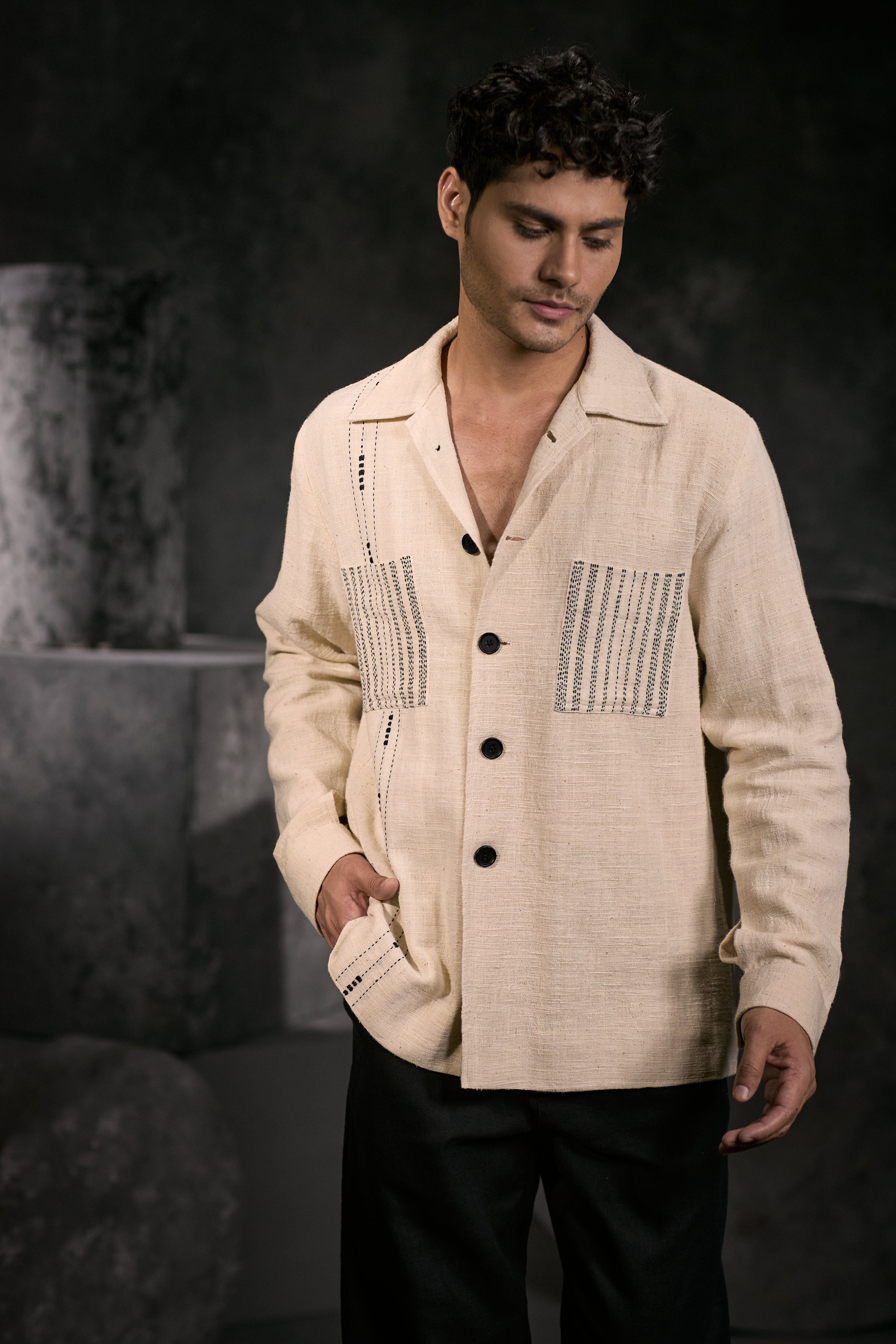 Ecru Handwoven Organic Cotton Embroidered Jacket