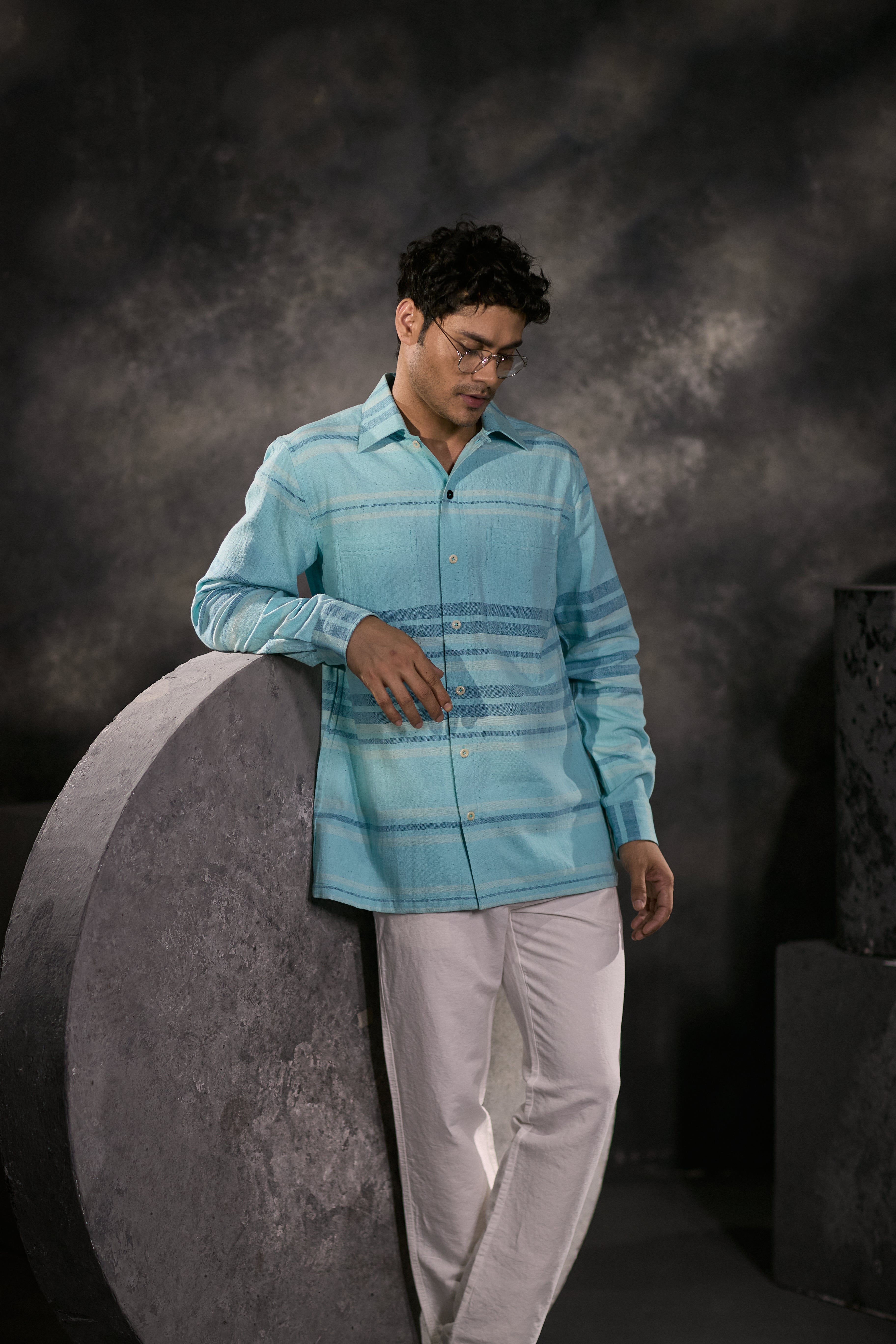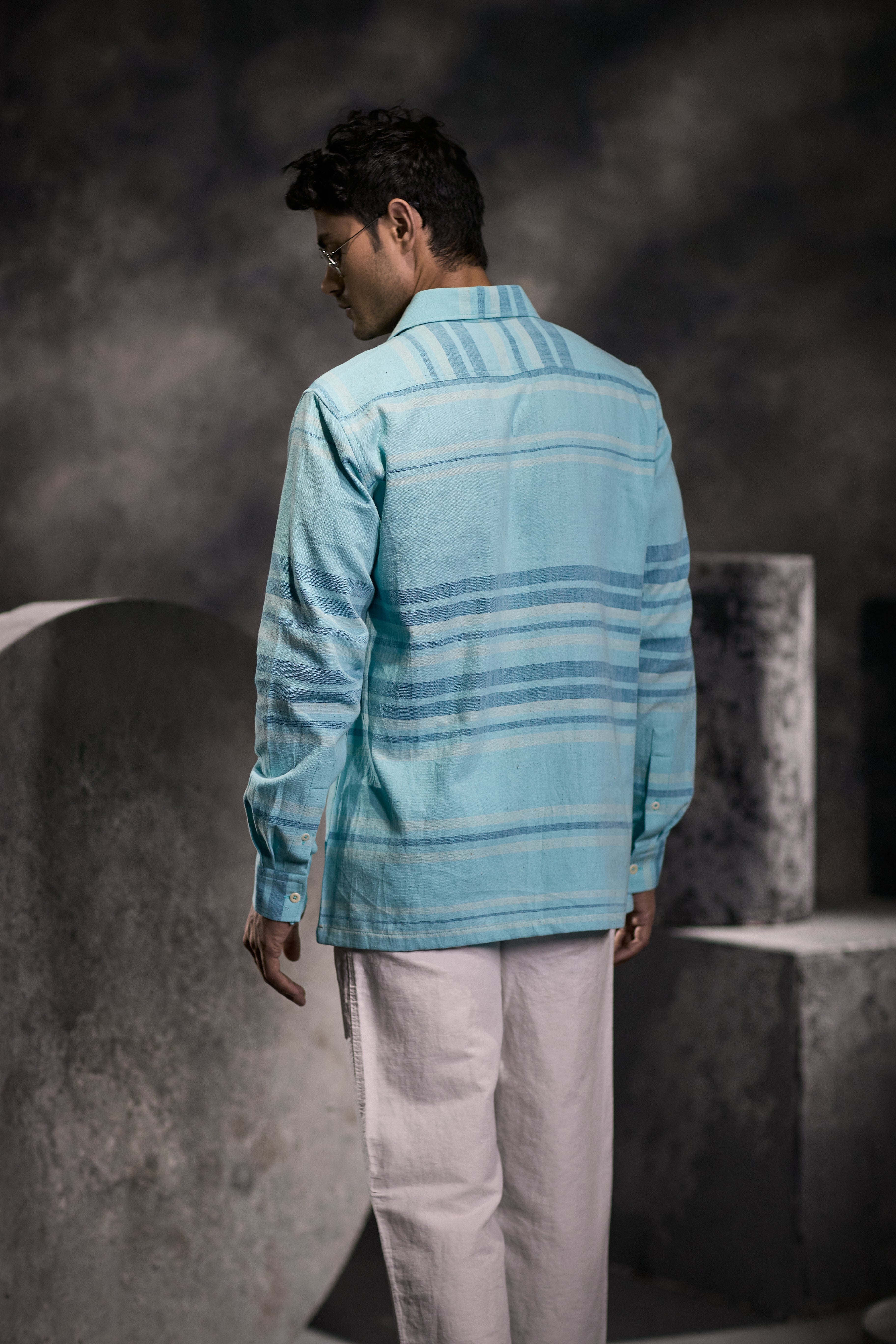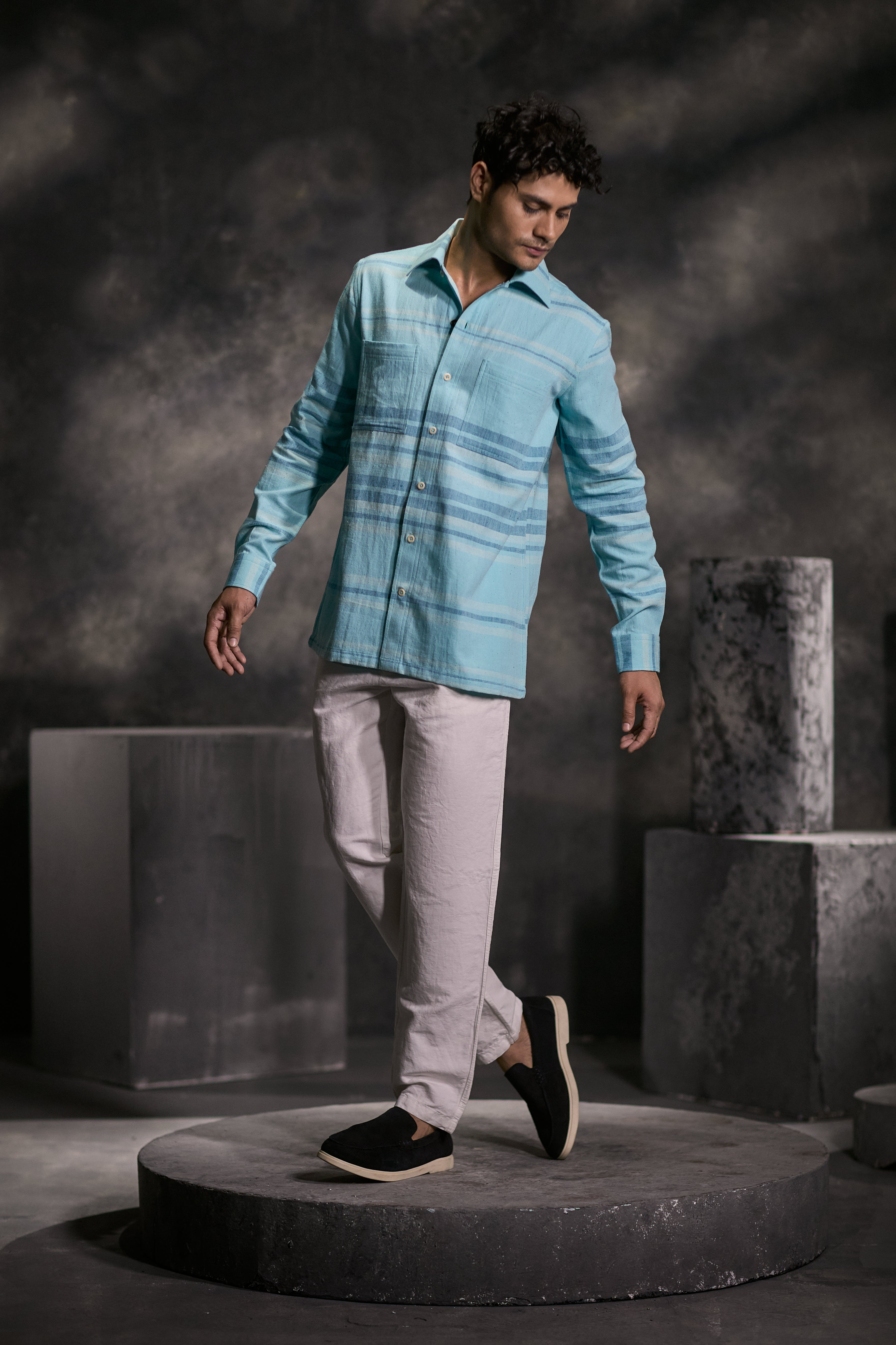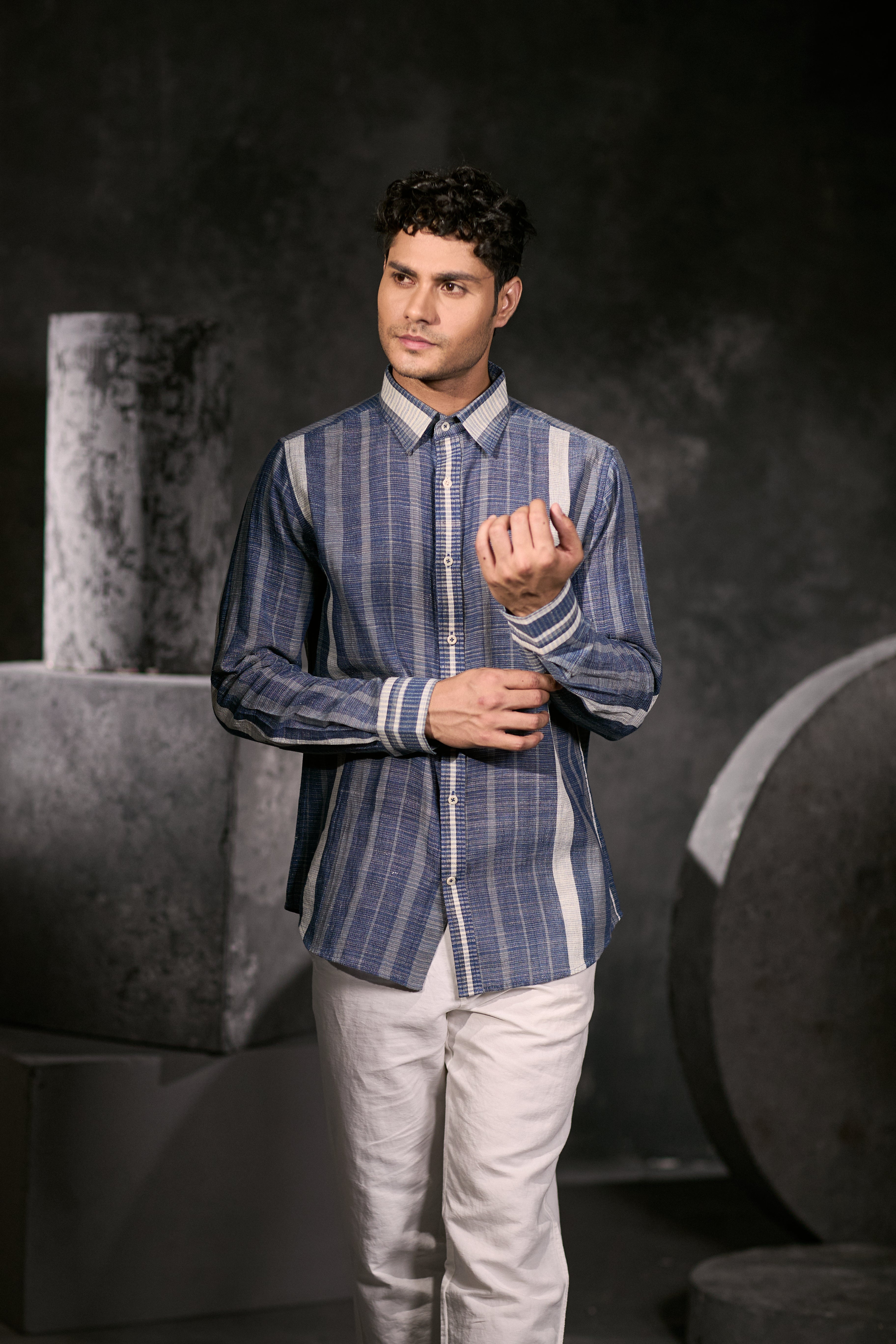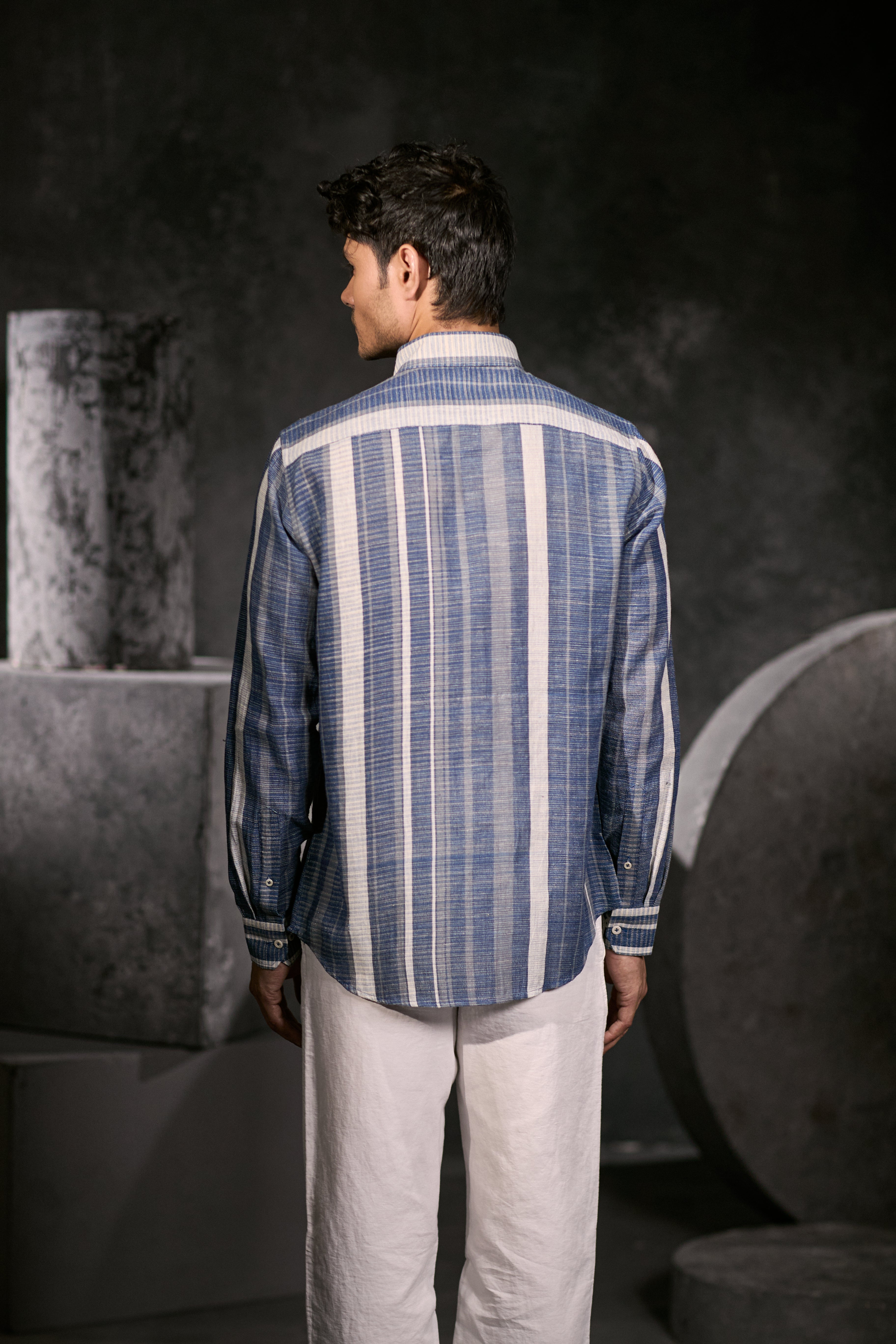 Indigo Dual Shade Organic Cotton Striped Shirt