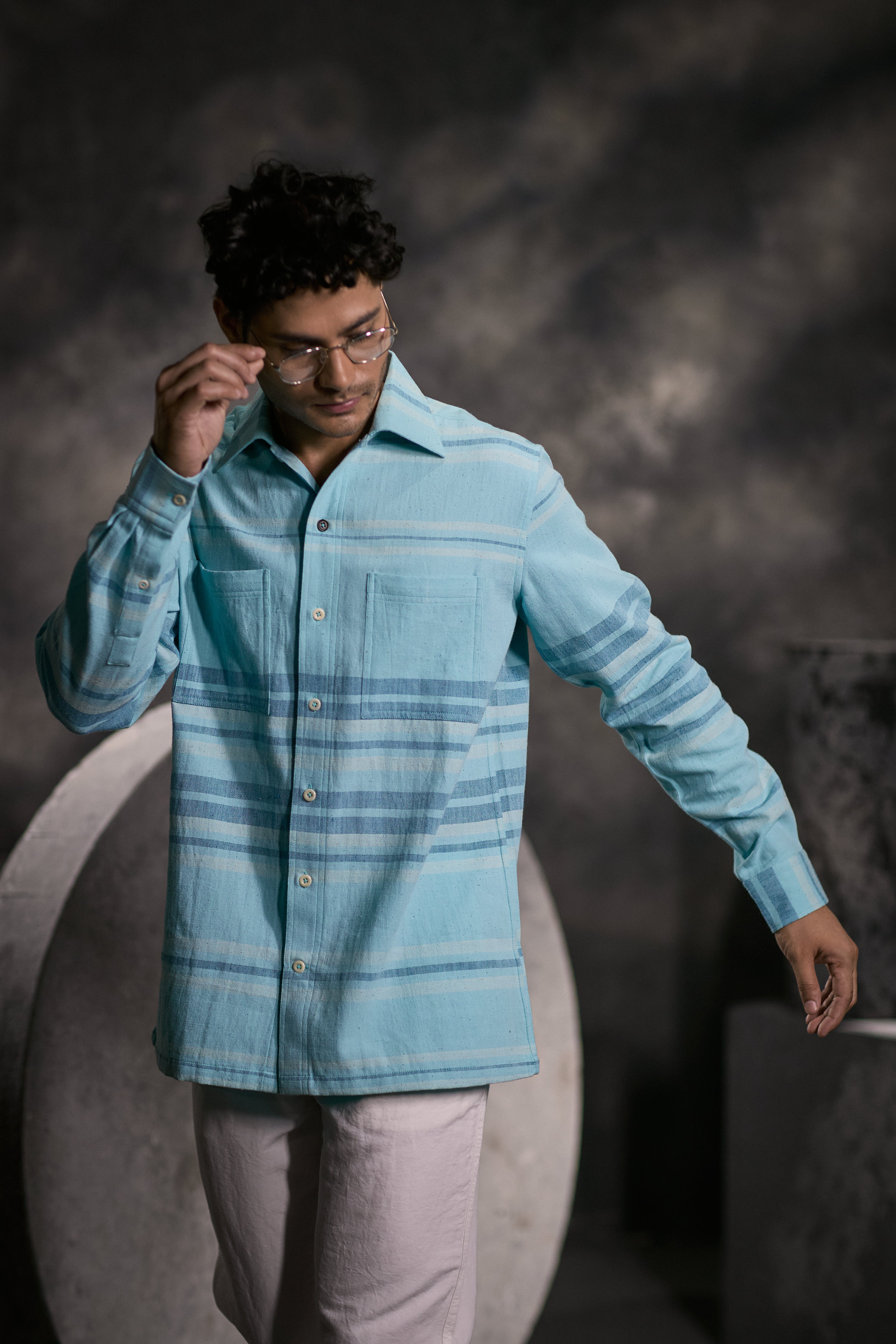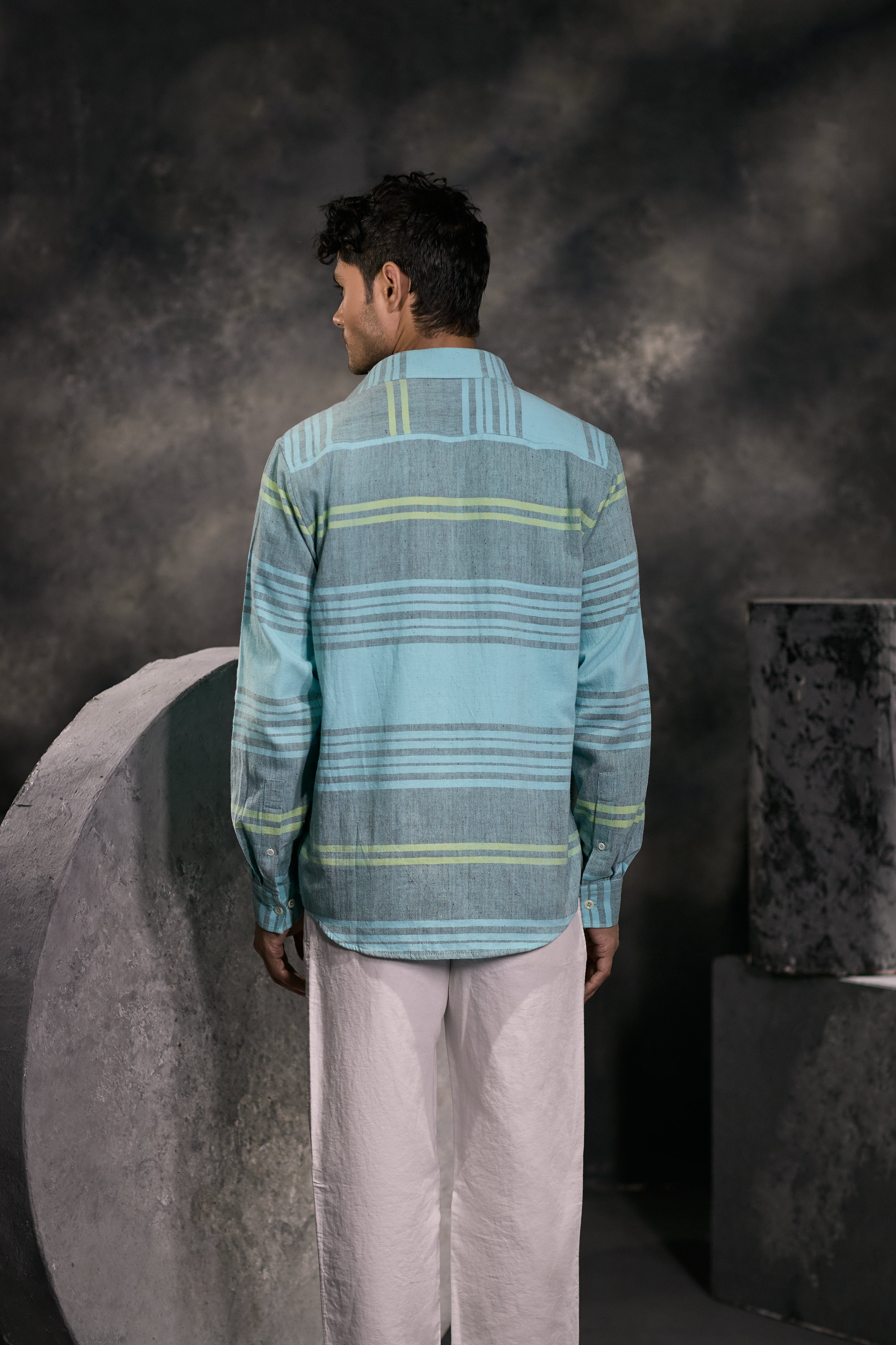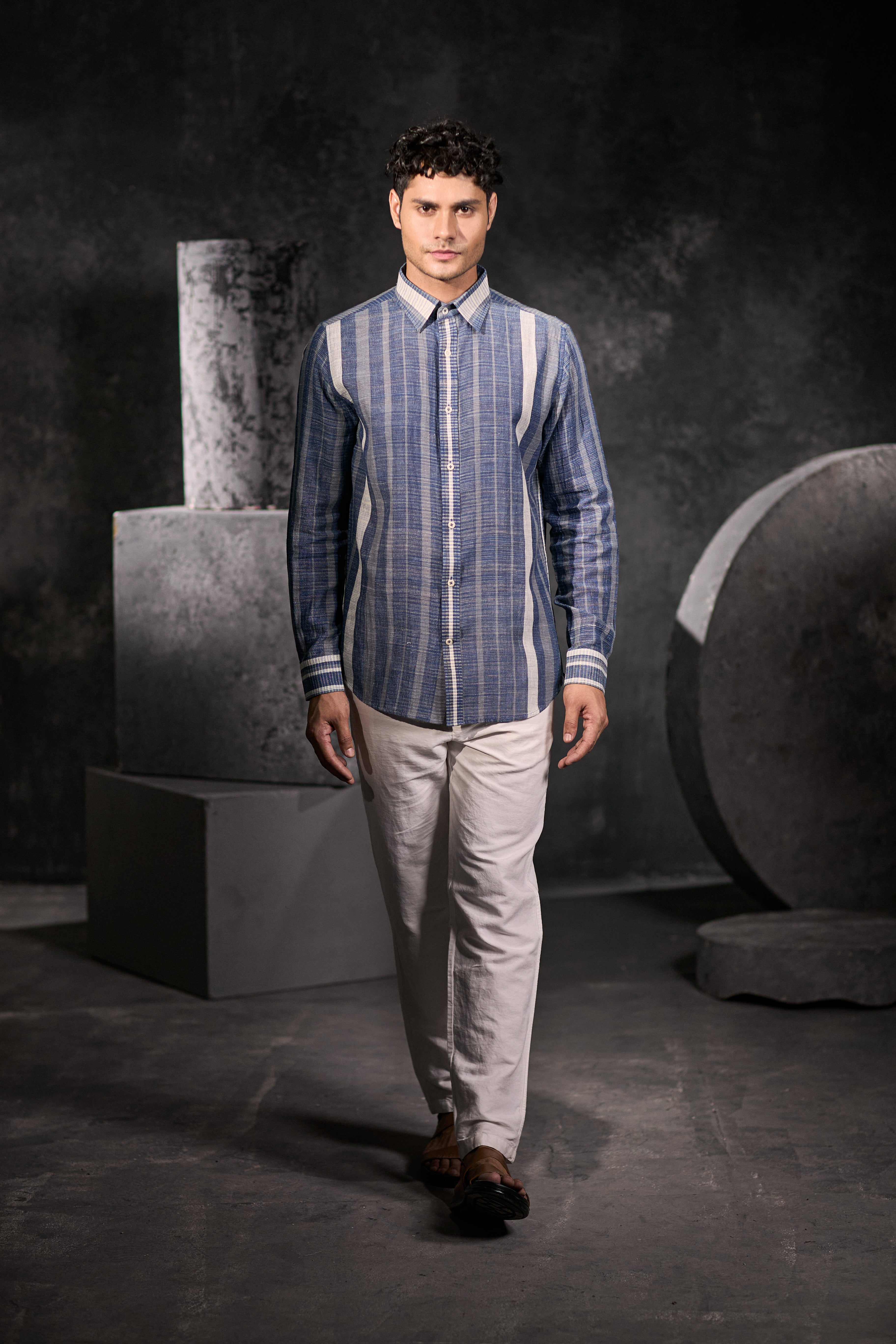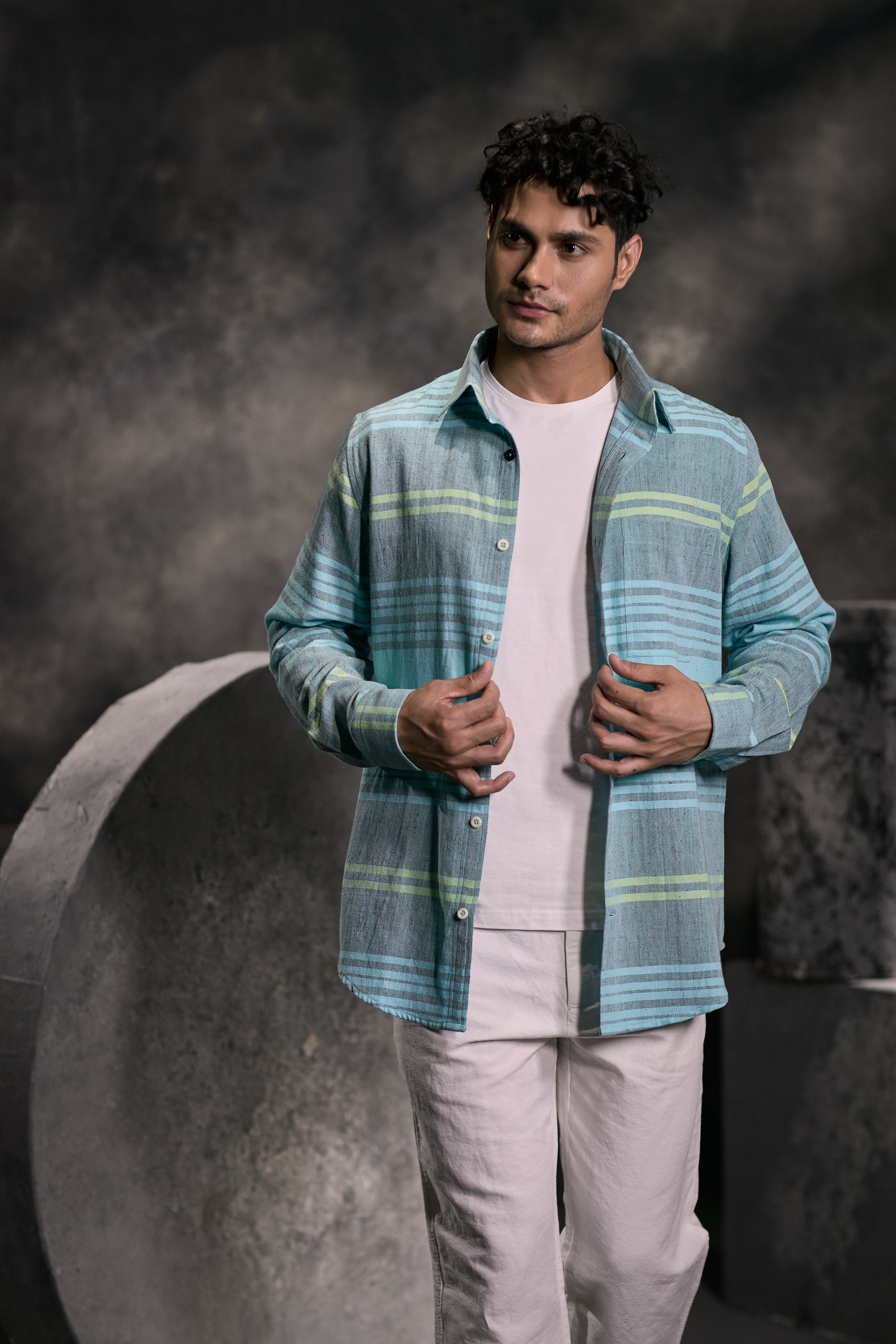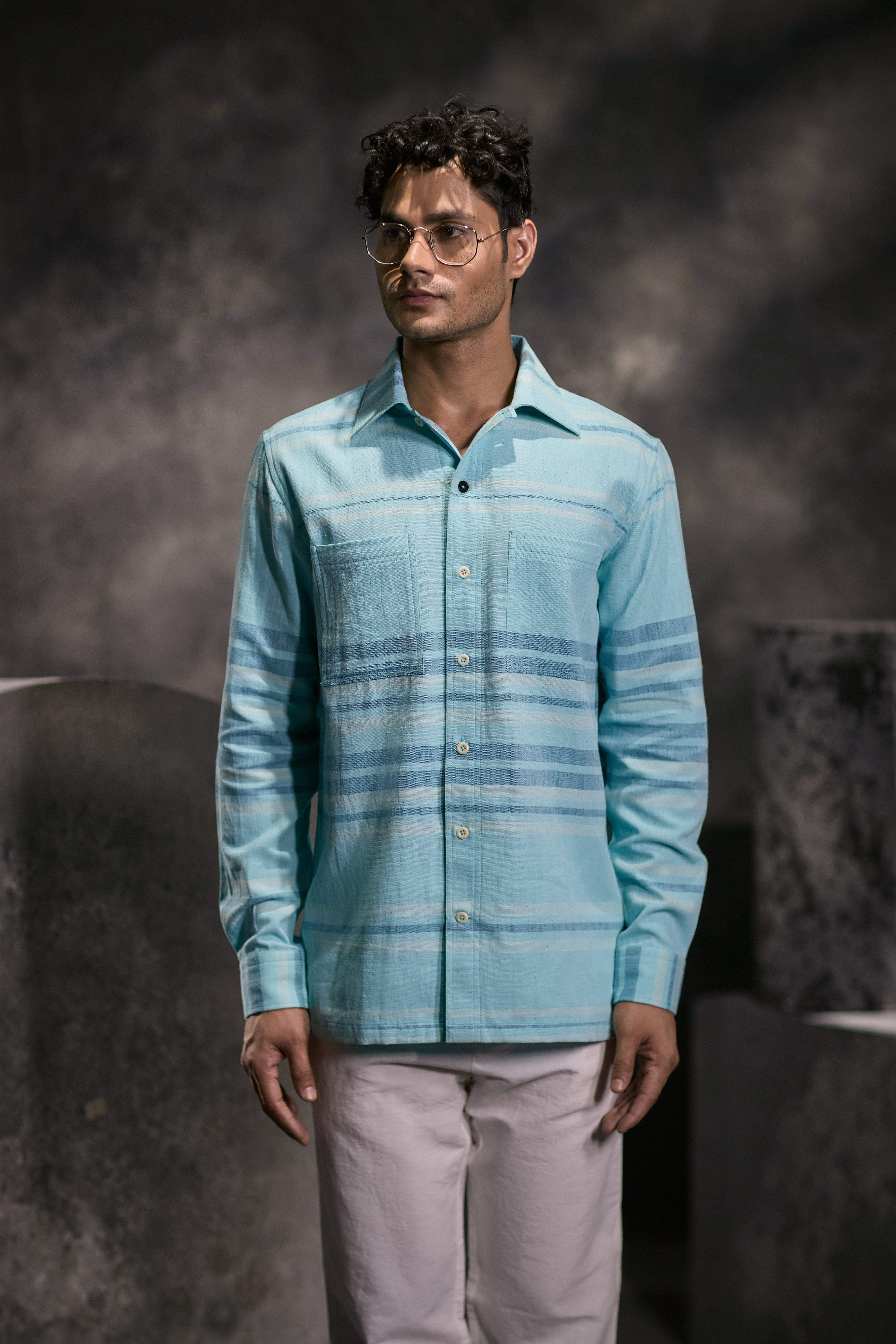 Indigo Dual Shade Organic Cotton Striped Shirt