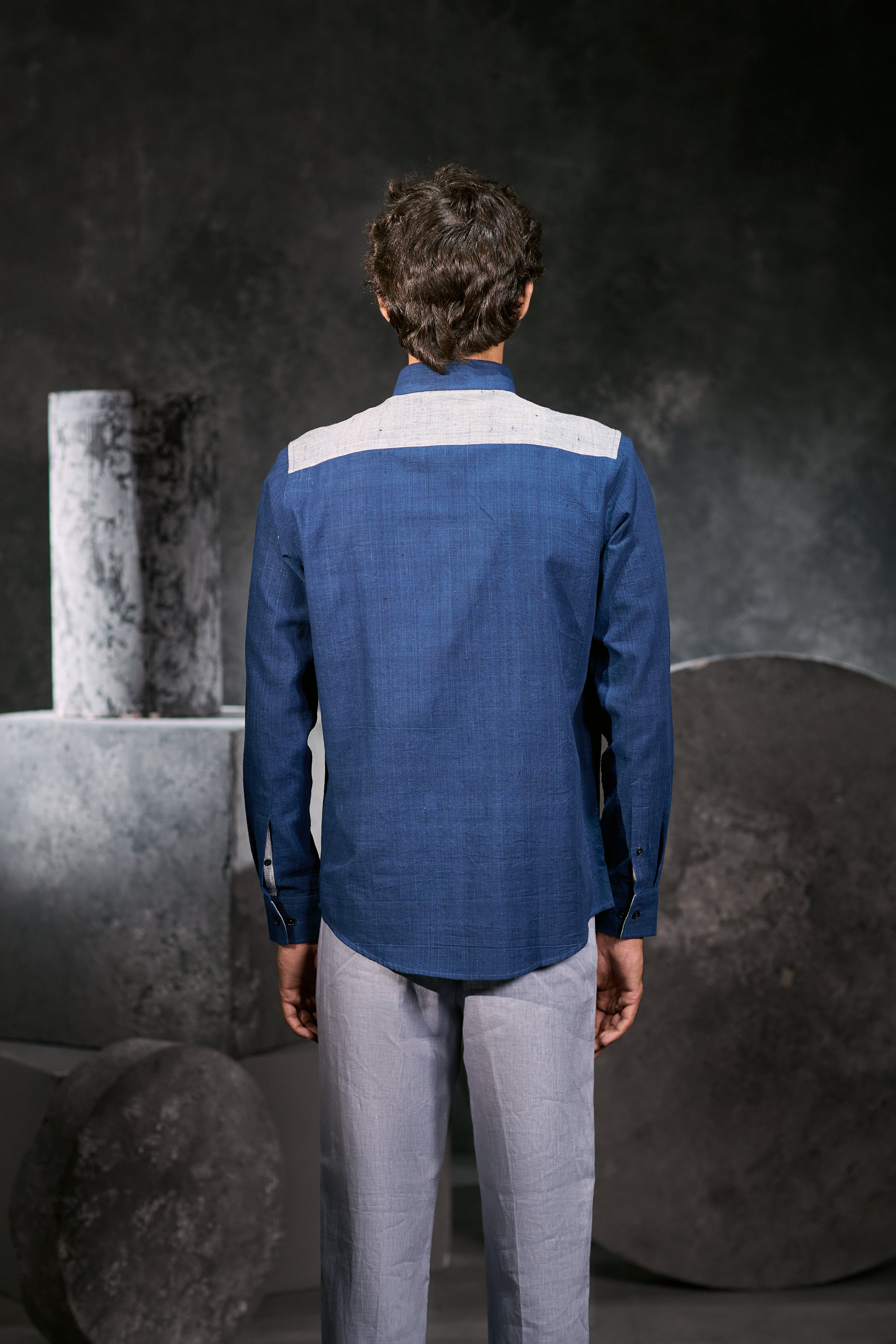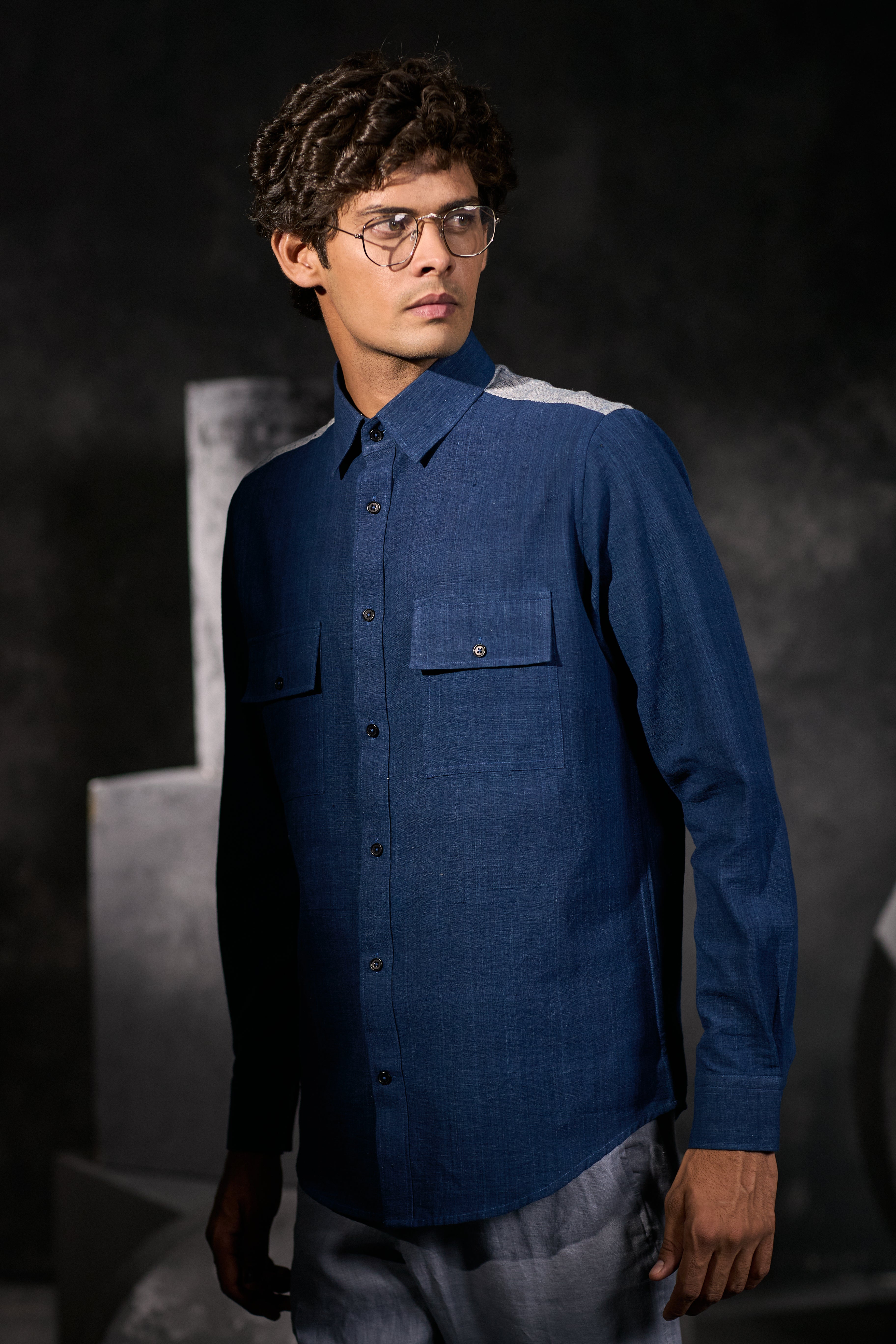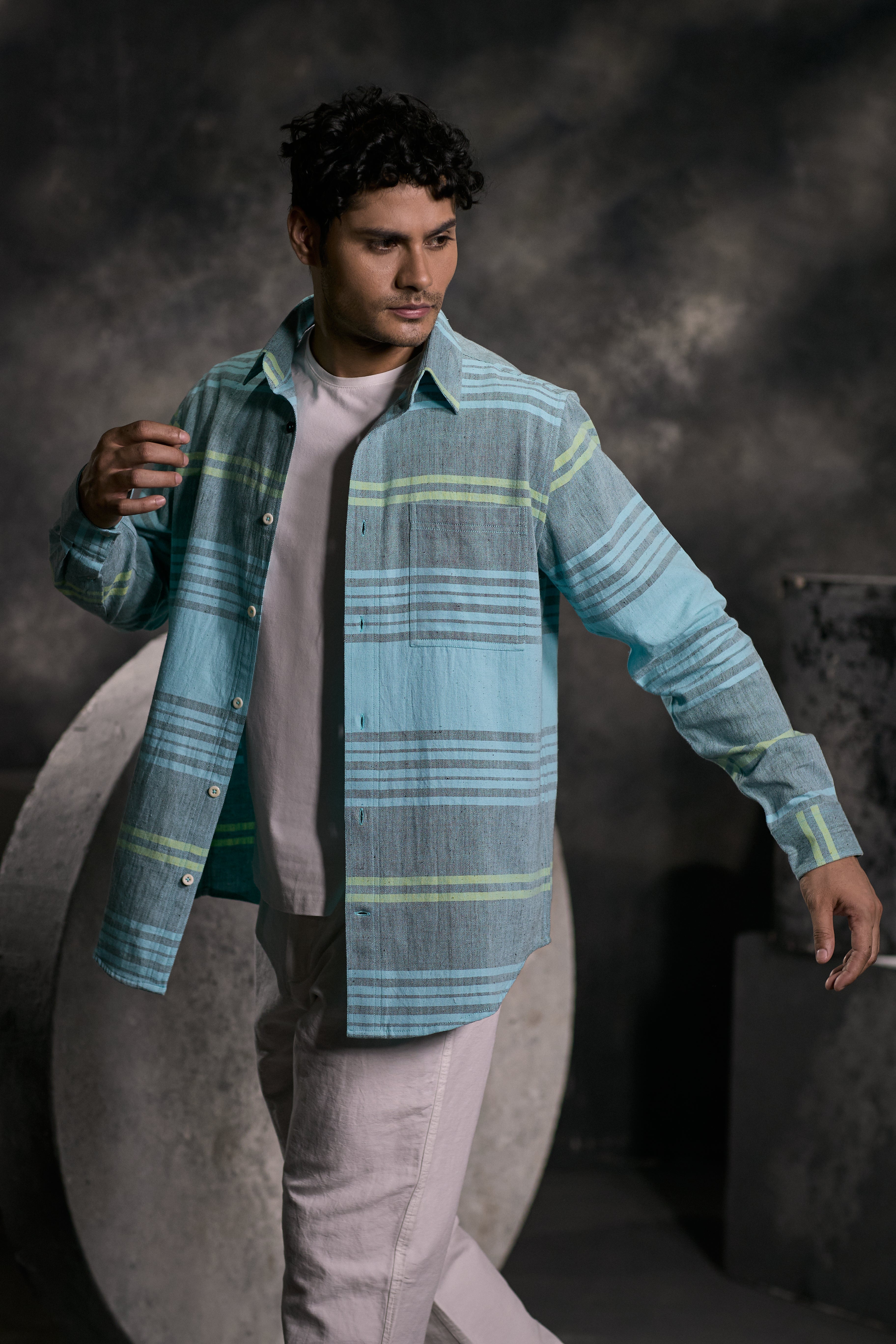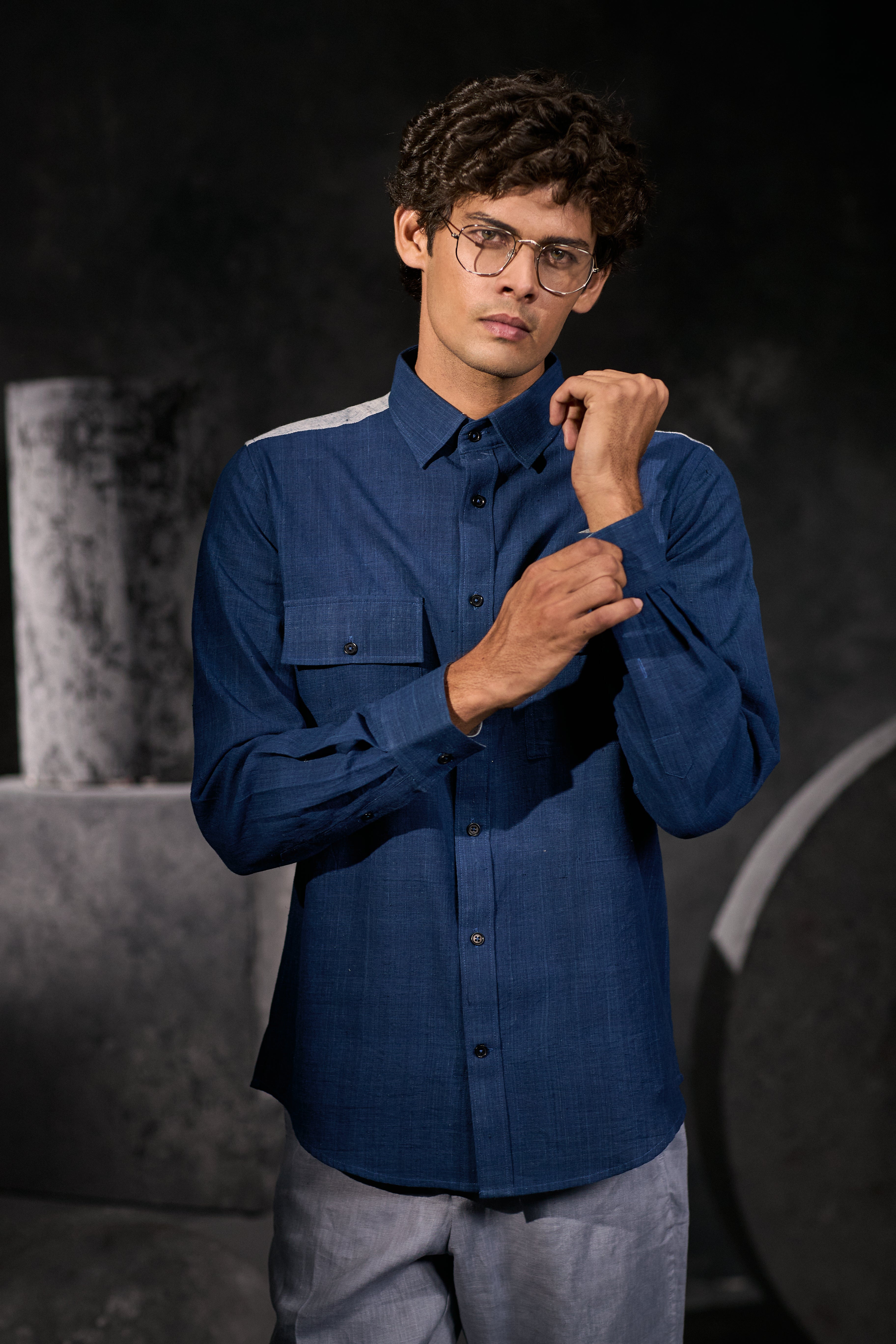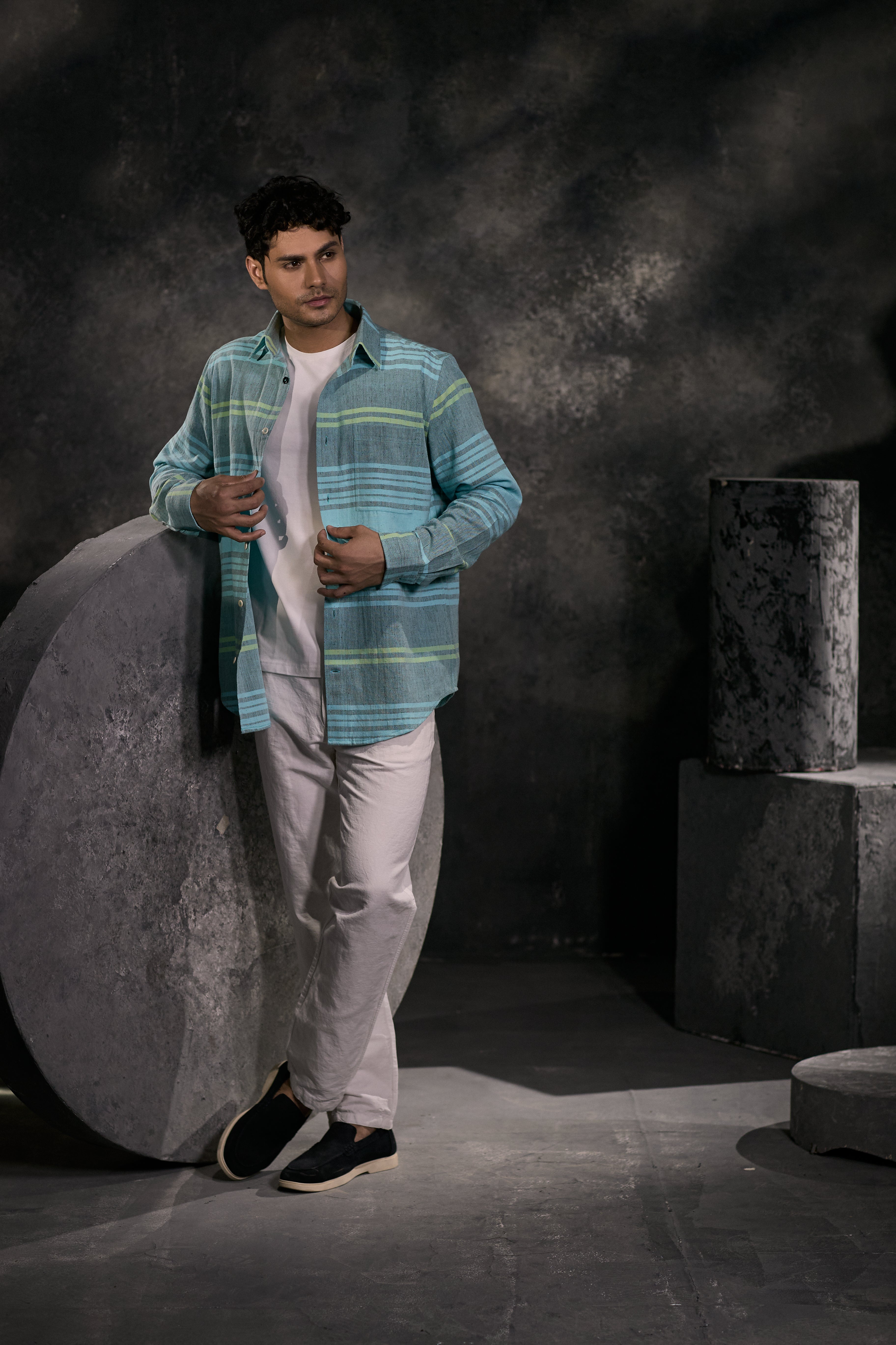 Indigo Dual Shade Organic Cotton Striped Shirt