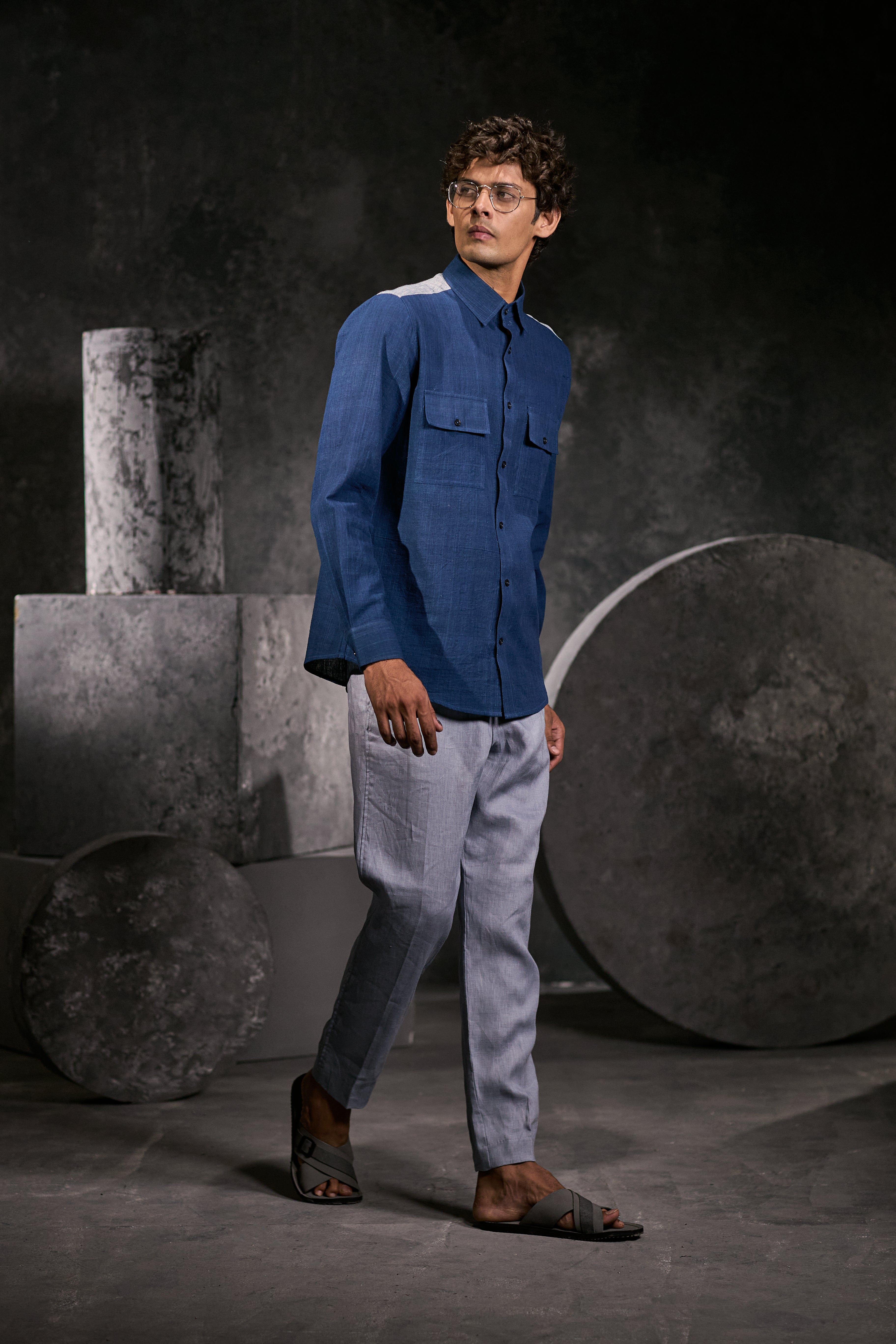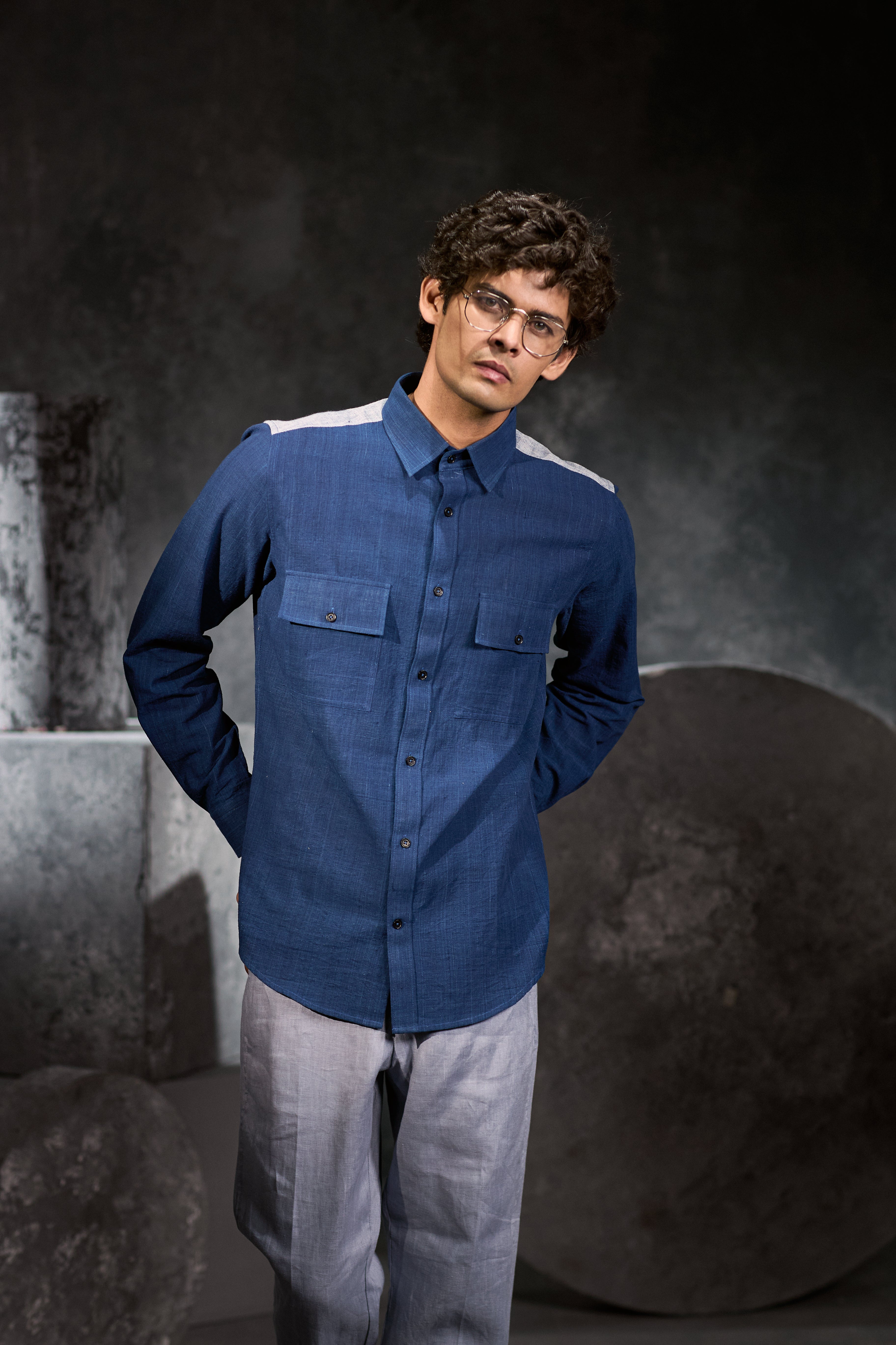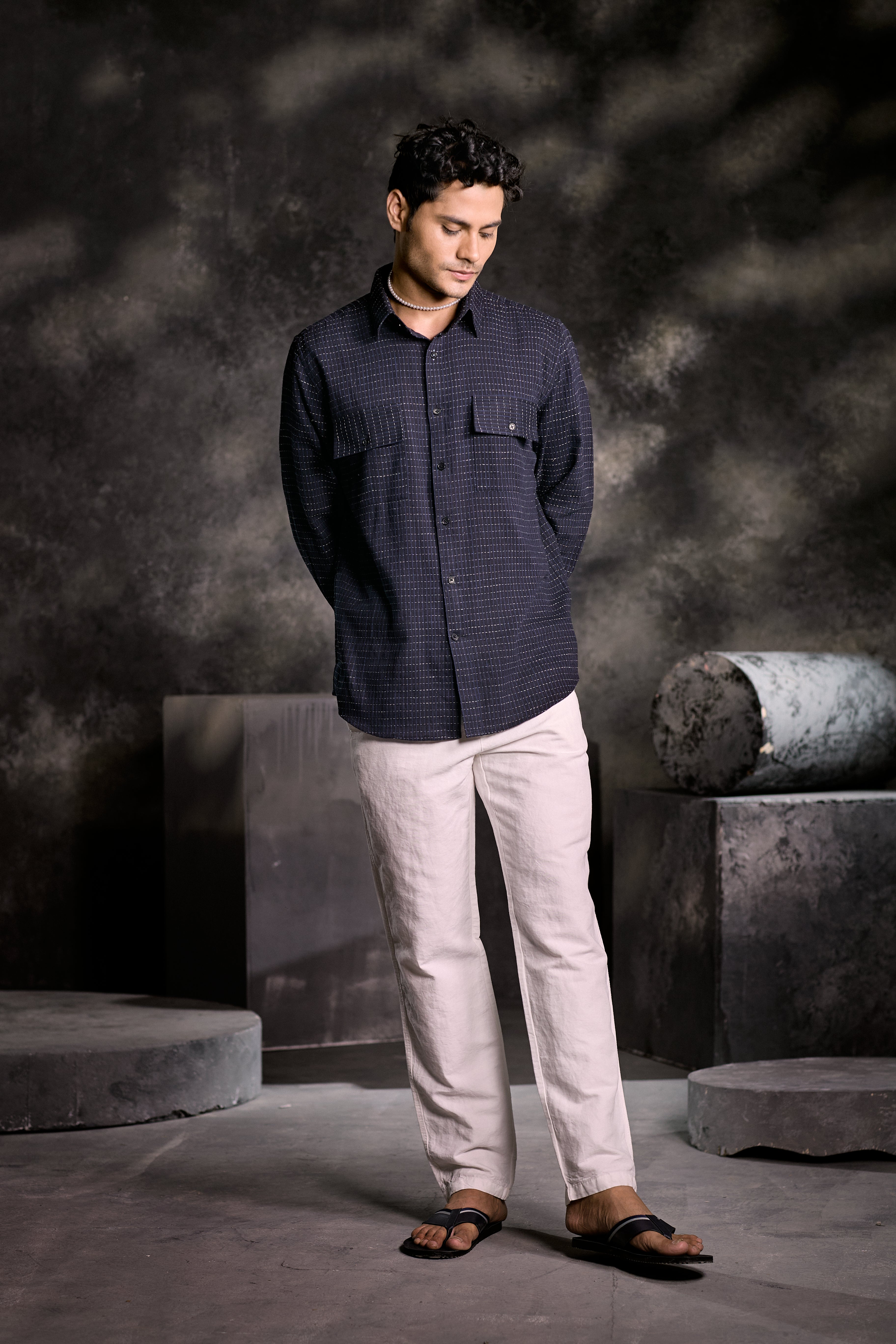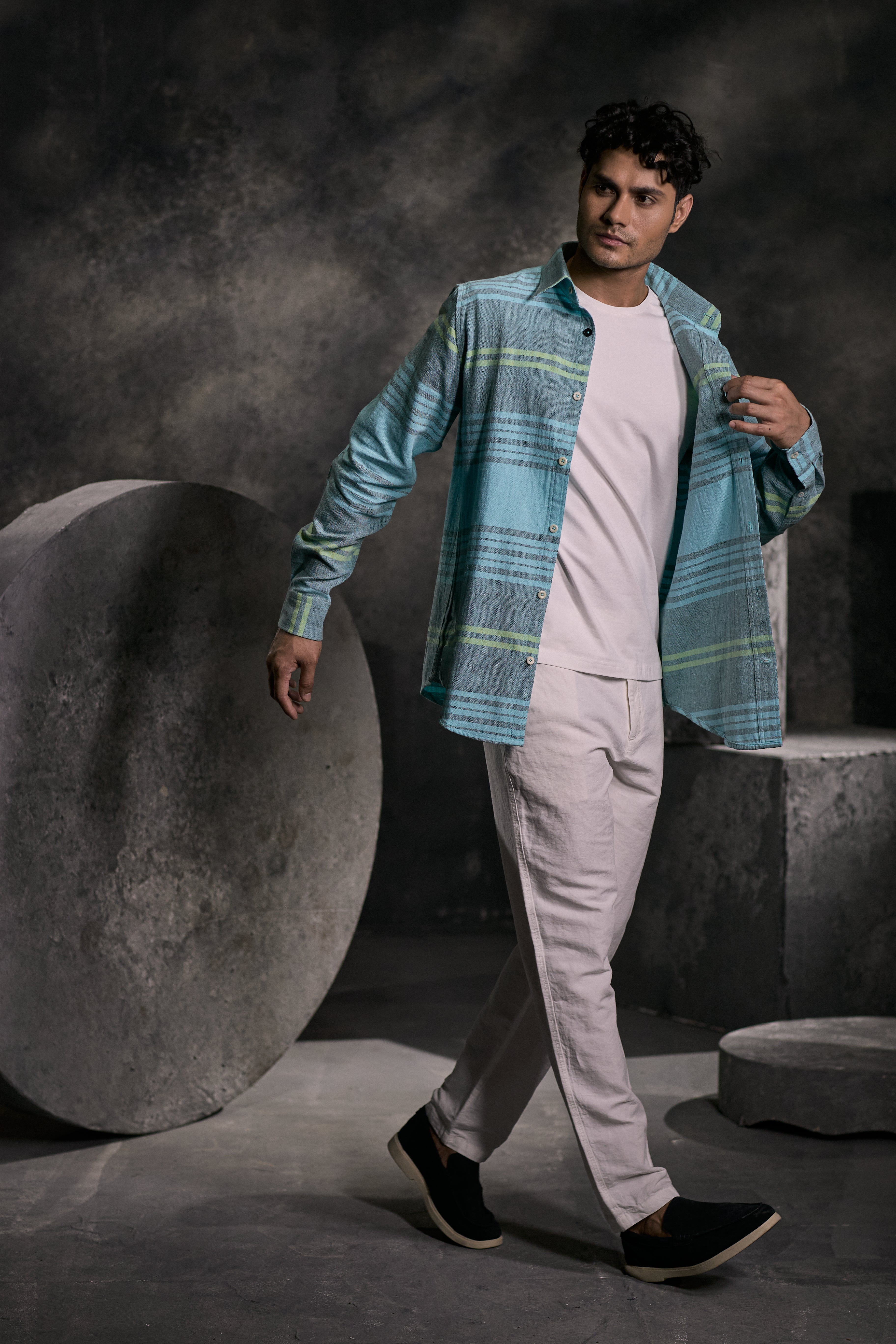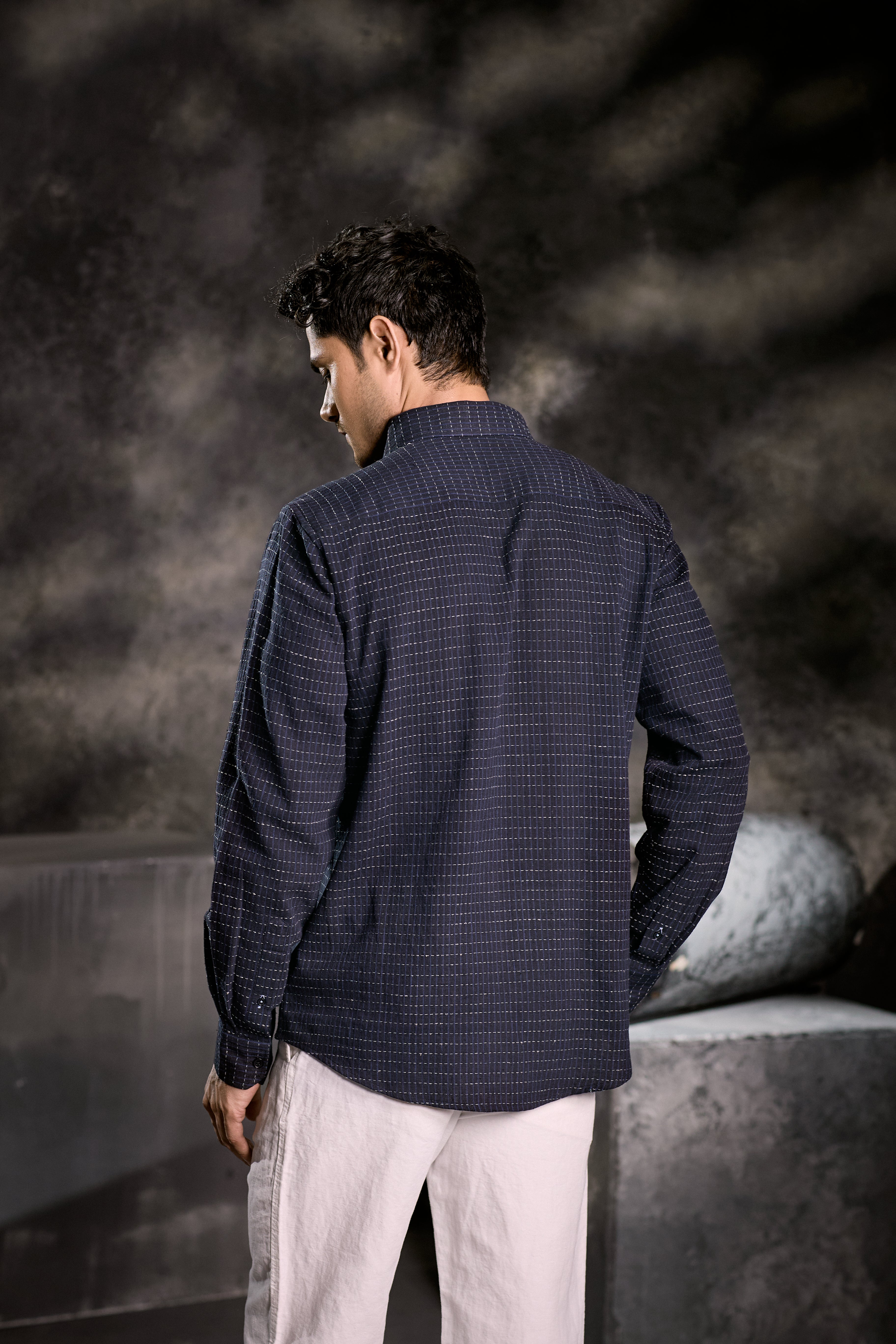 Indigo Dual Shade Organic Cotton Striped Shirt