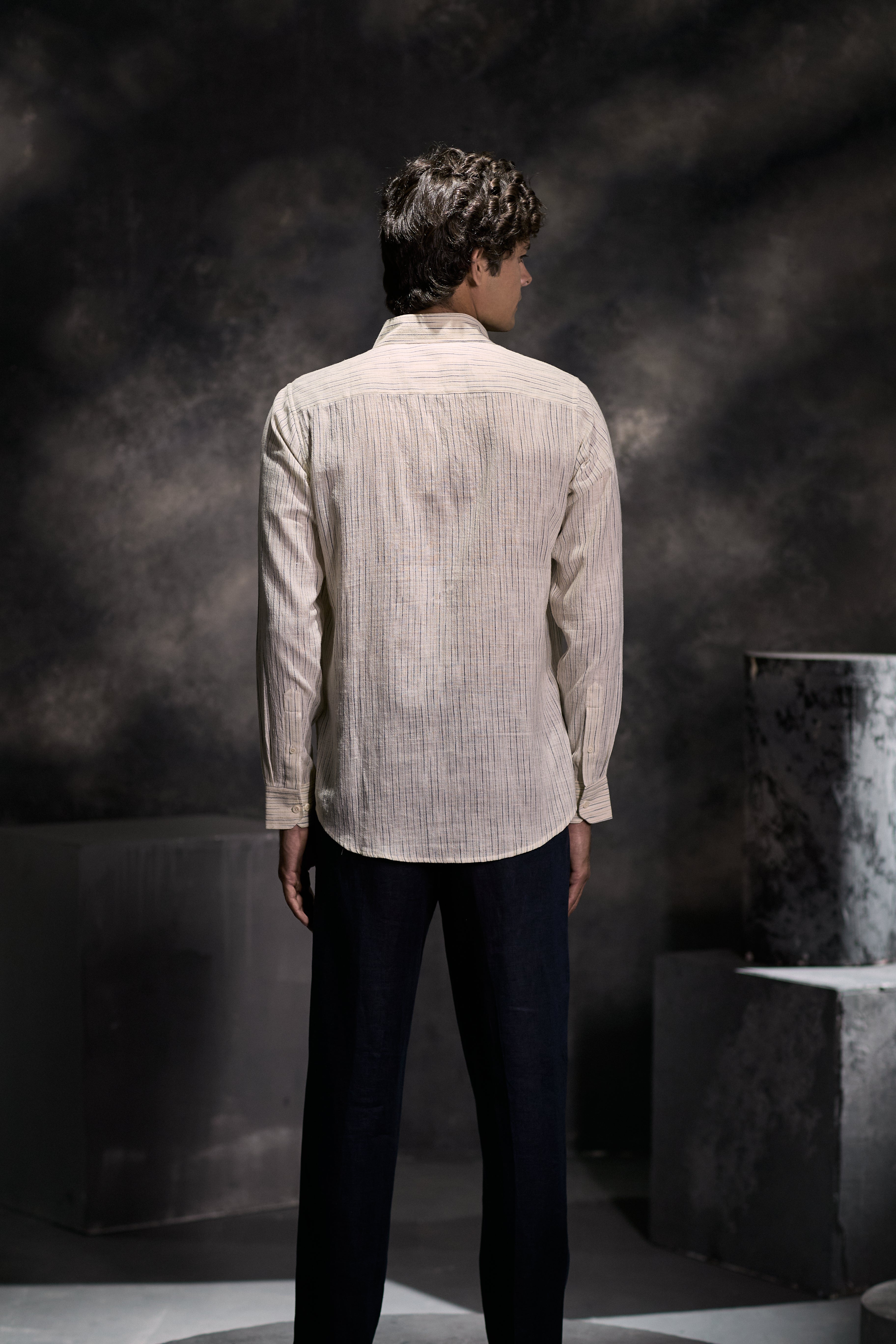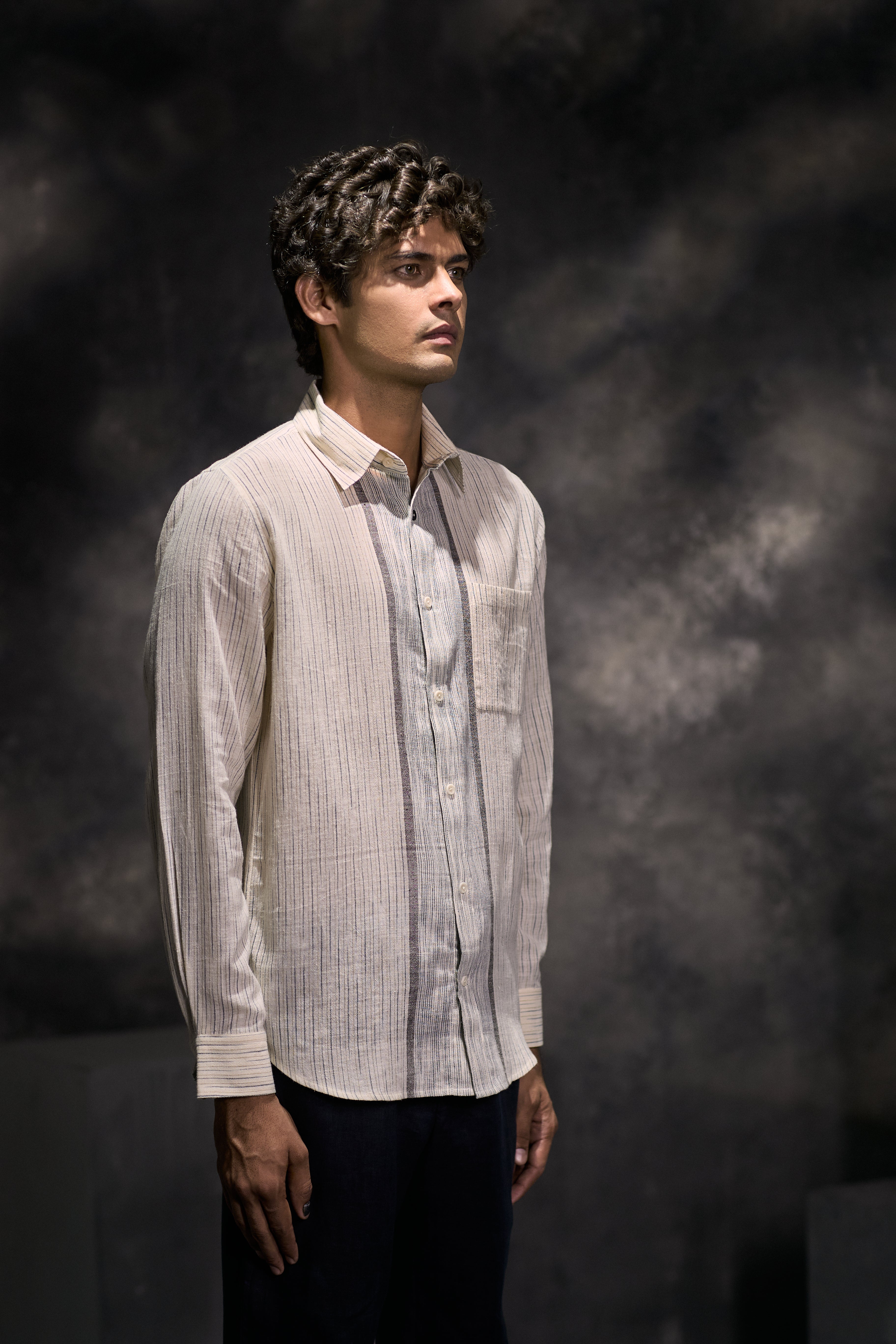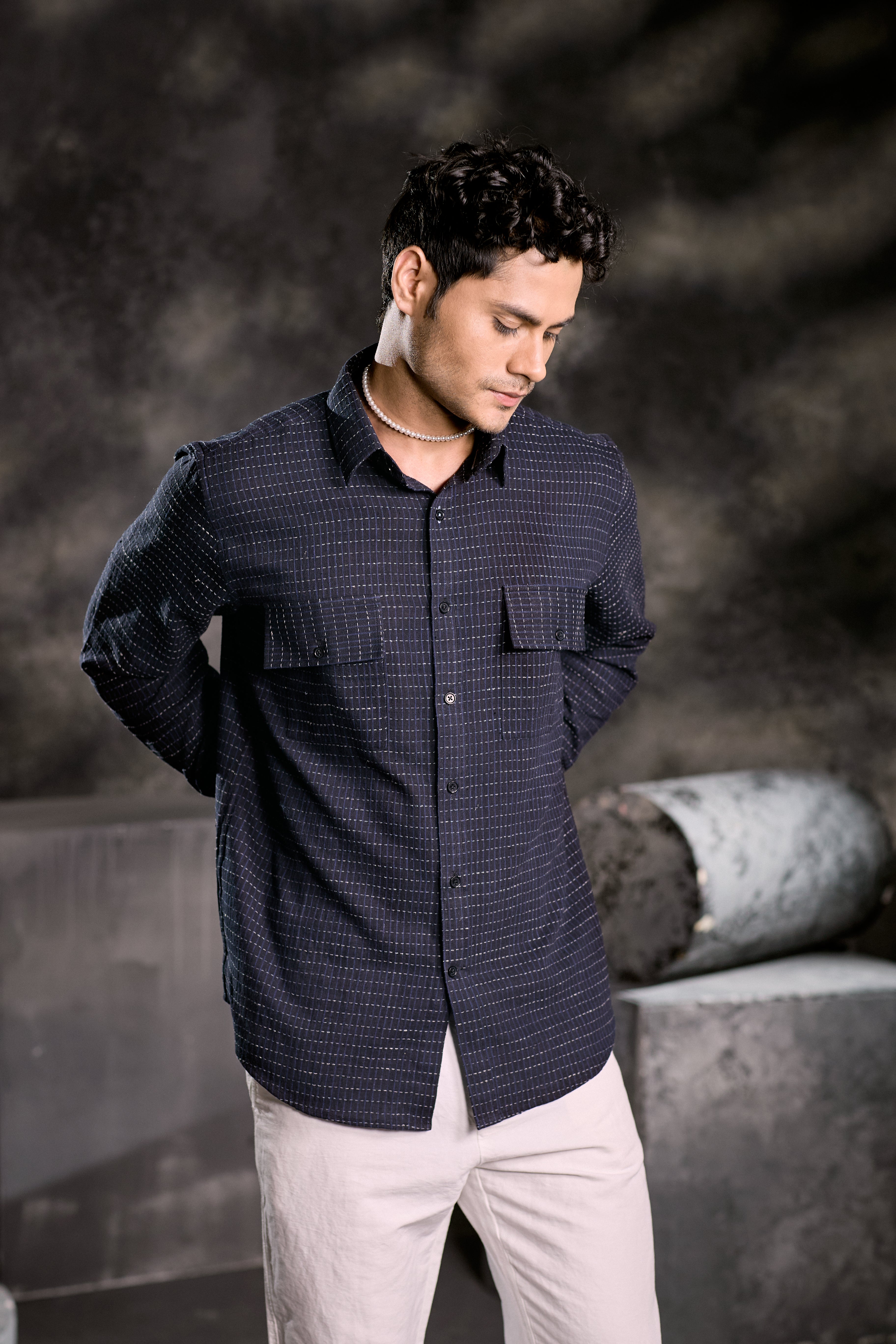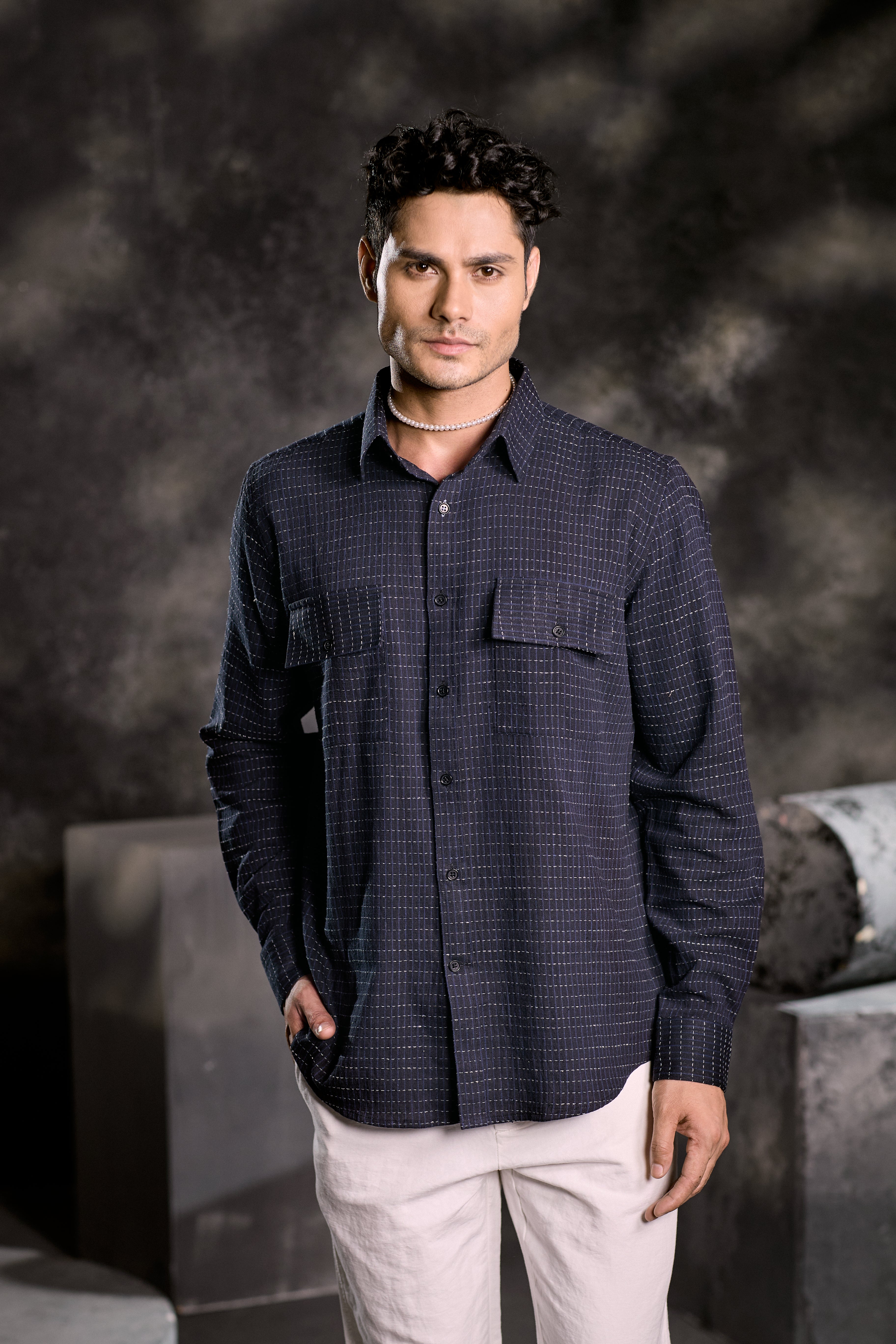 Indigo Dual Shade Organic Cotton Striped Shirt