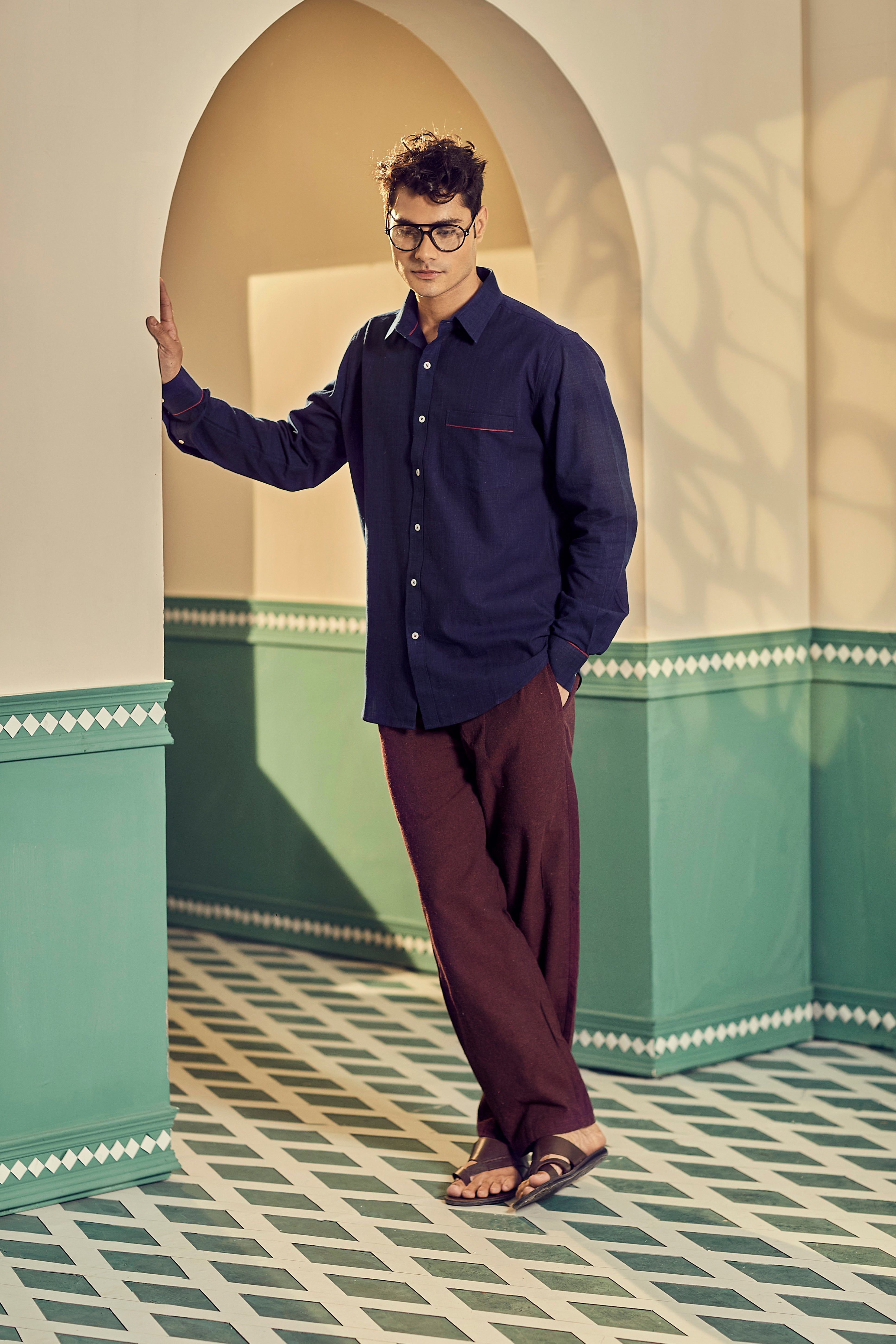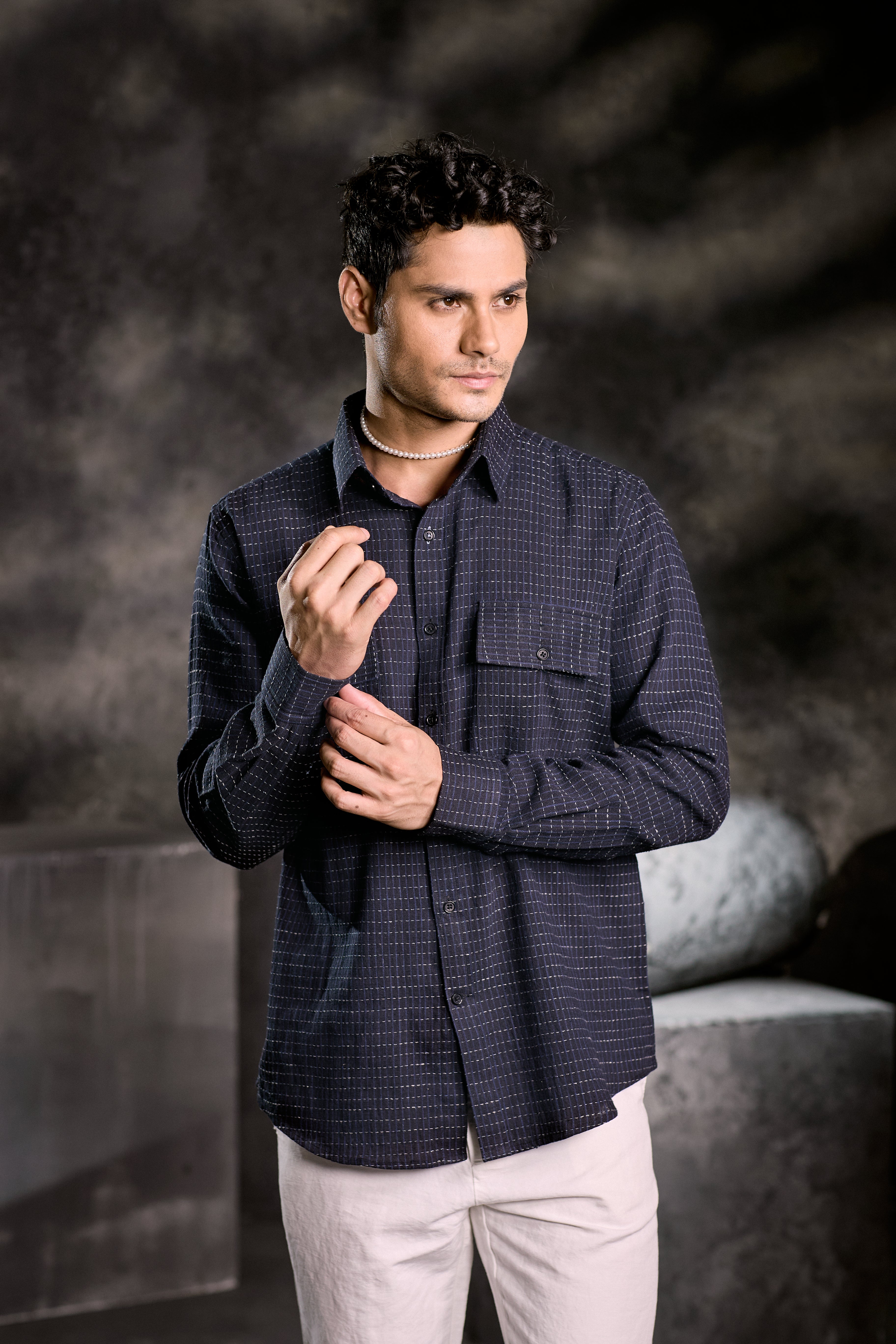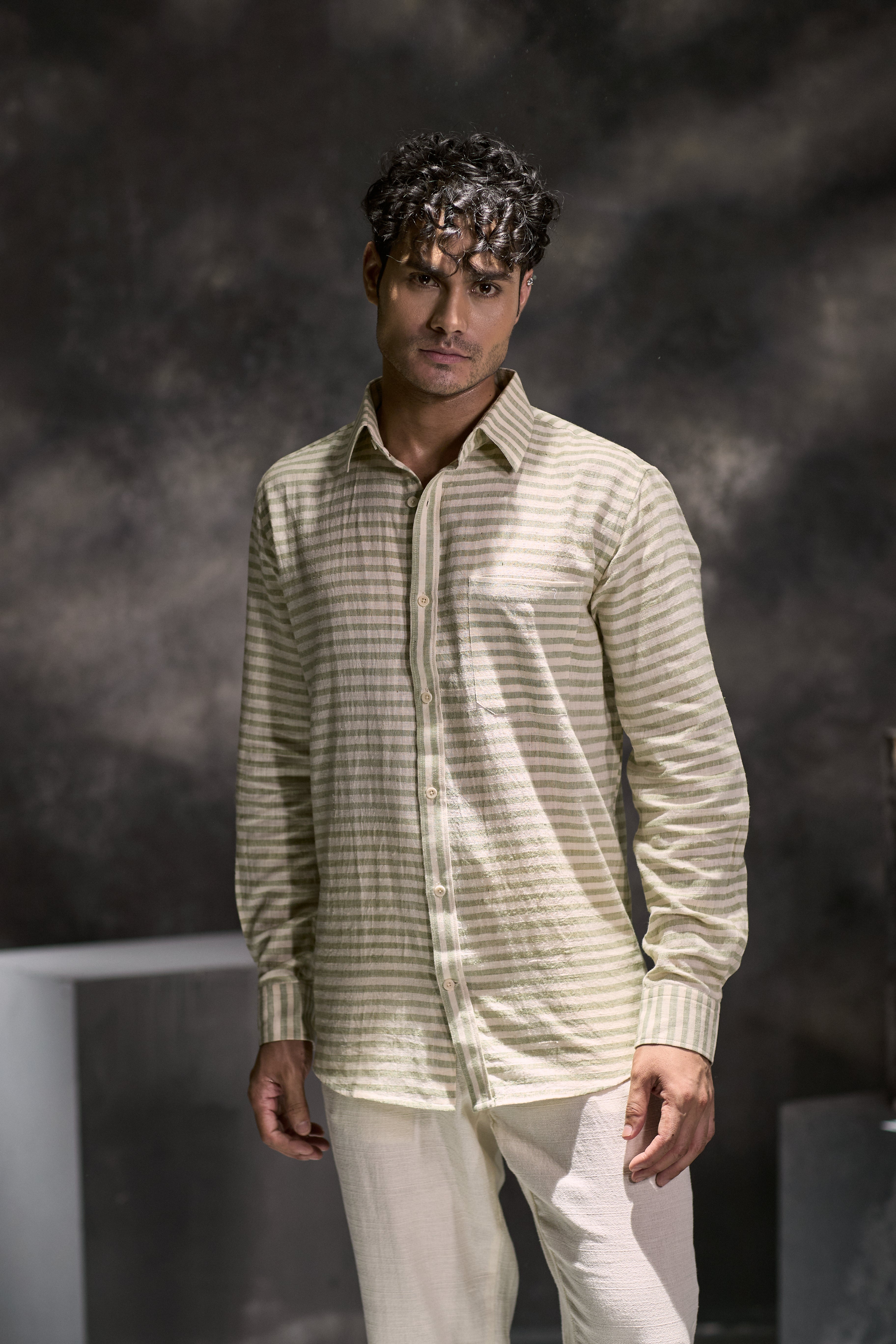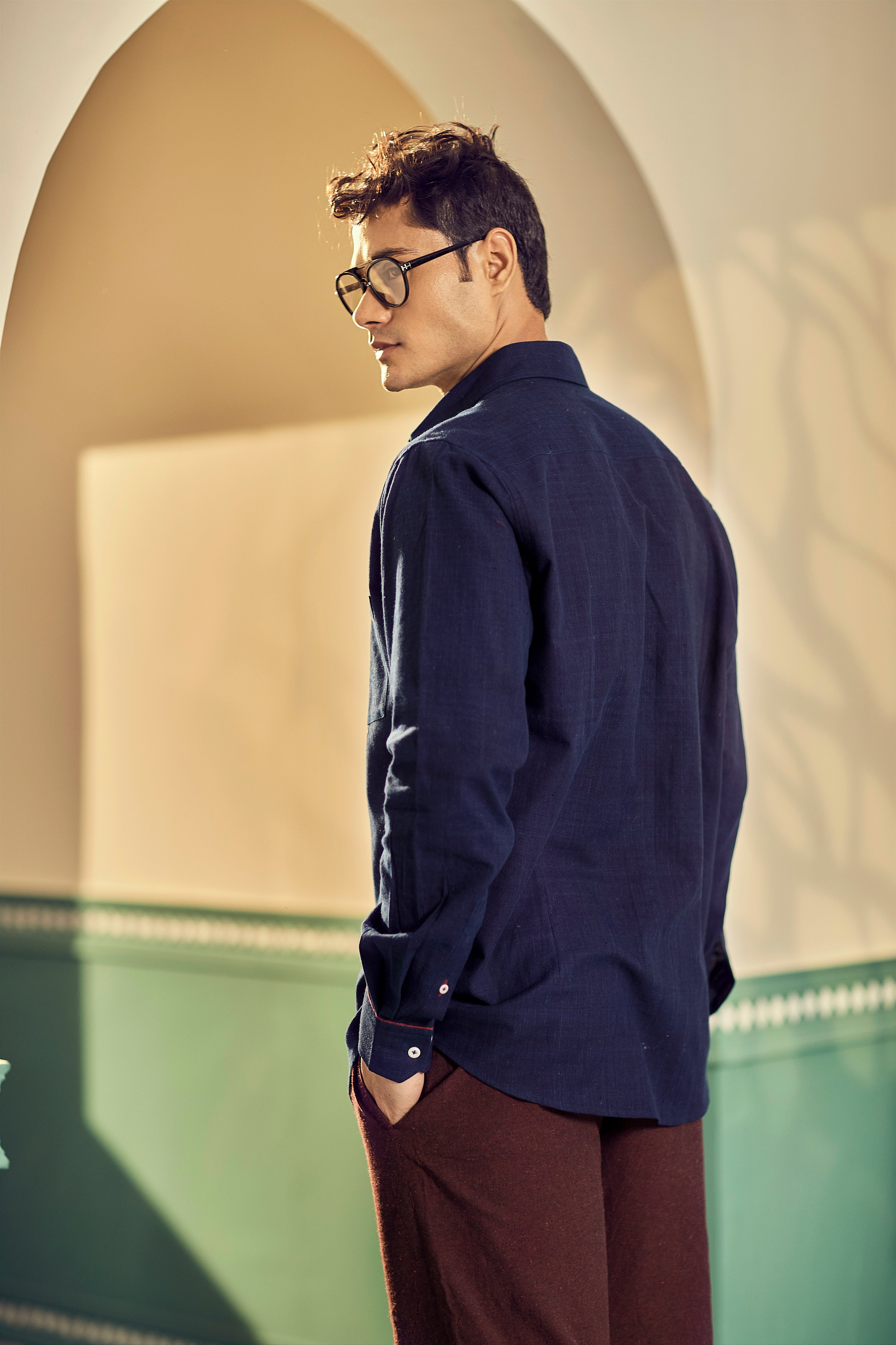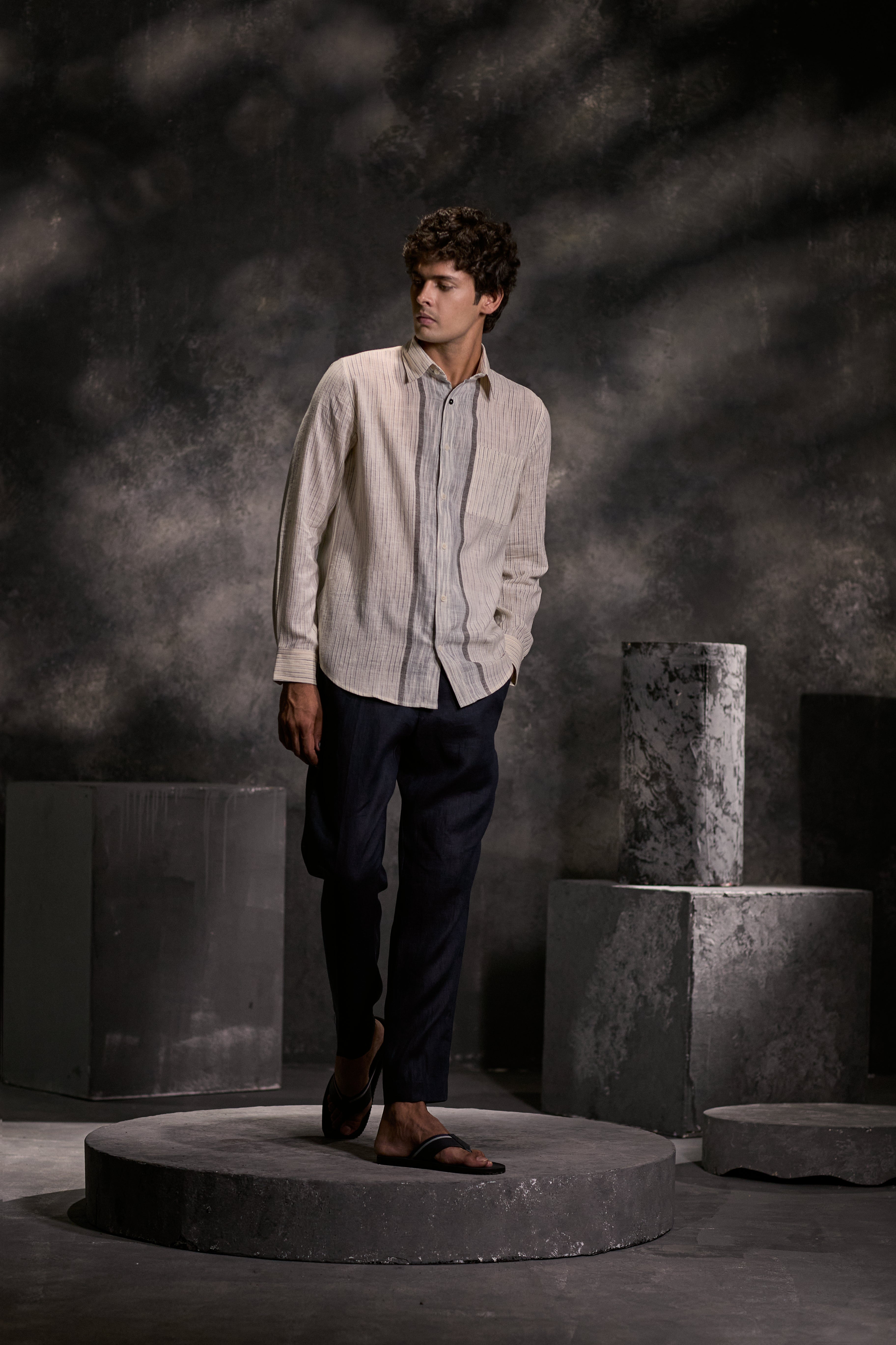 Indigo Dual Shade Organic Cotton Striped Shirt
