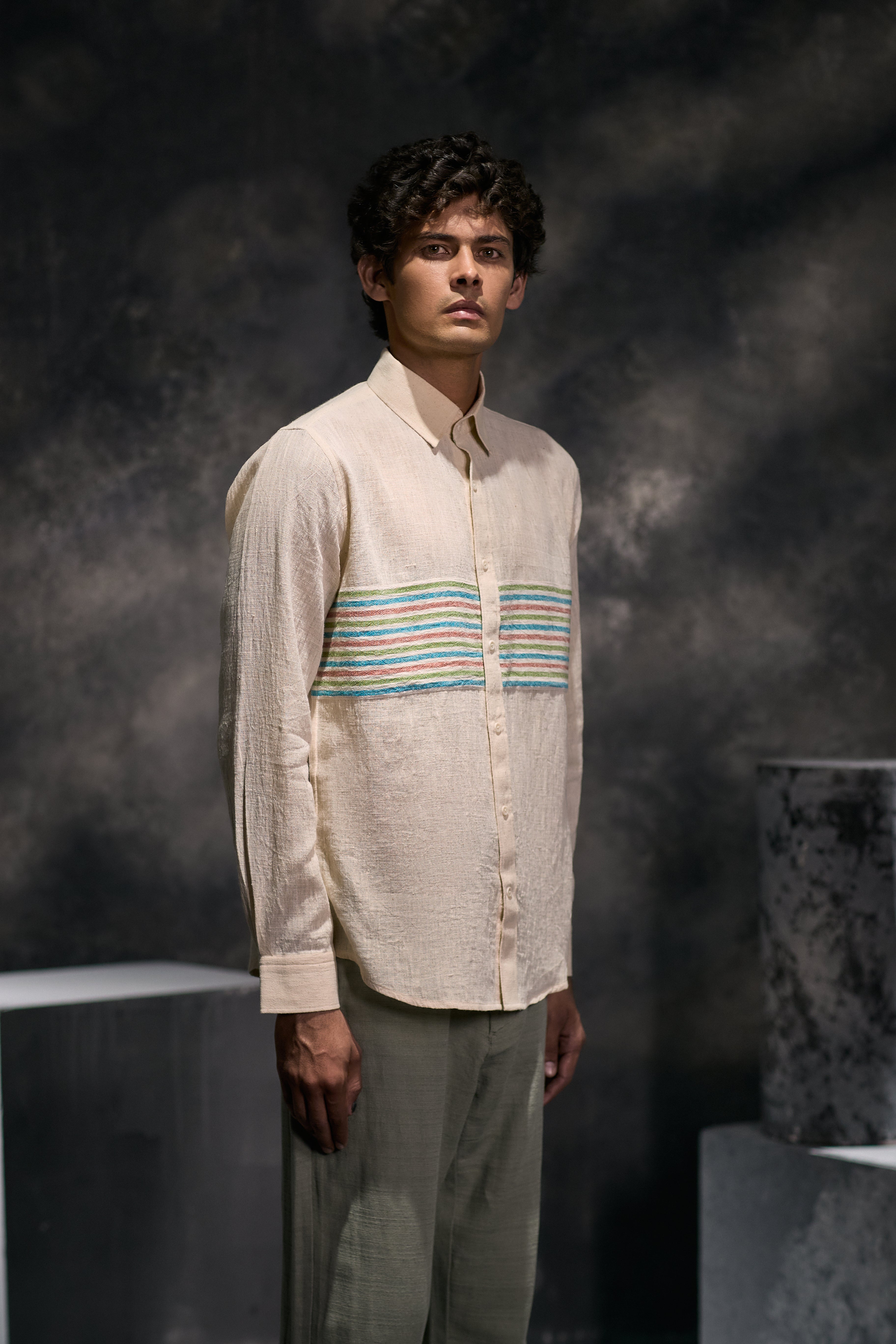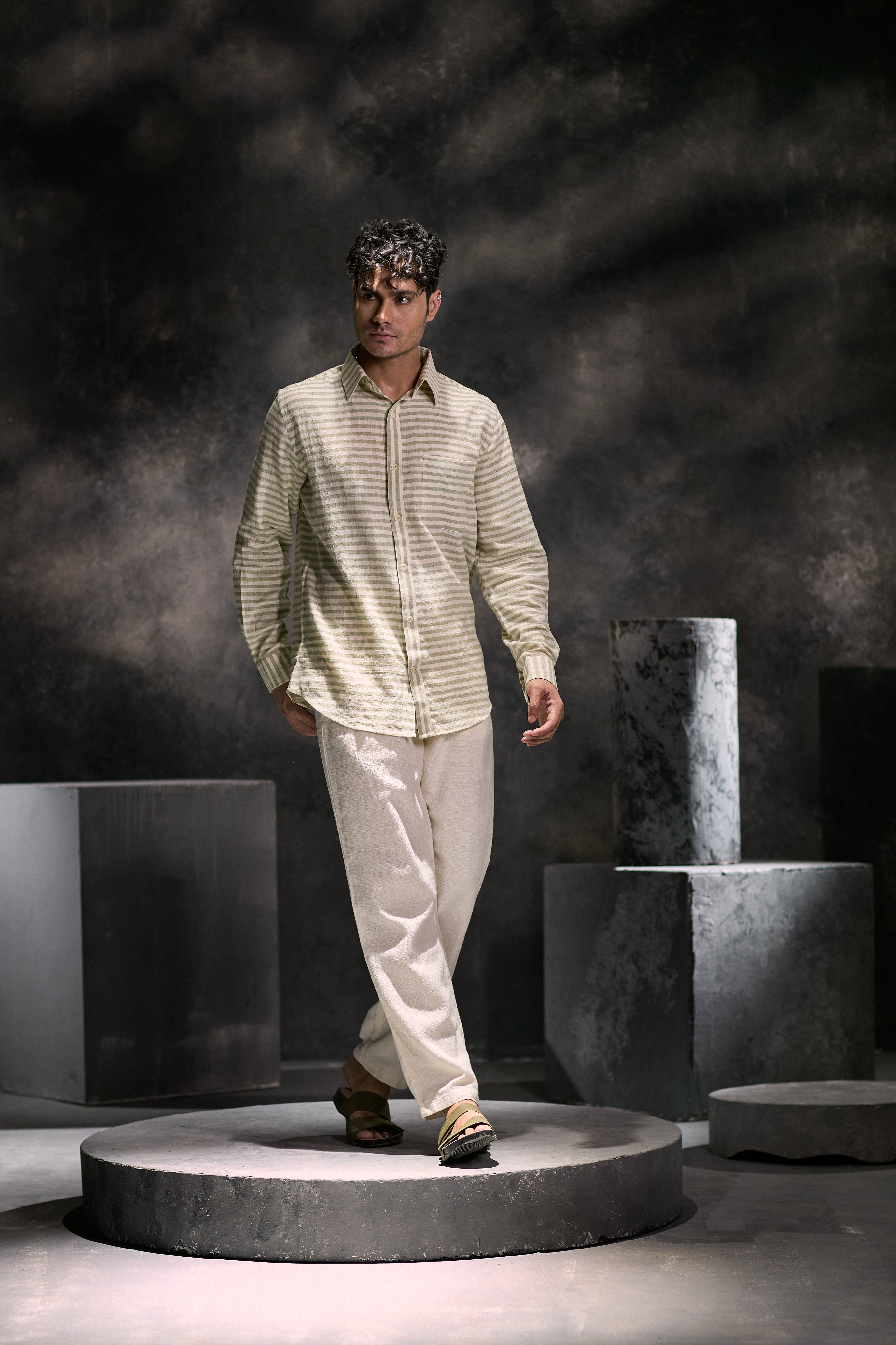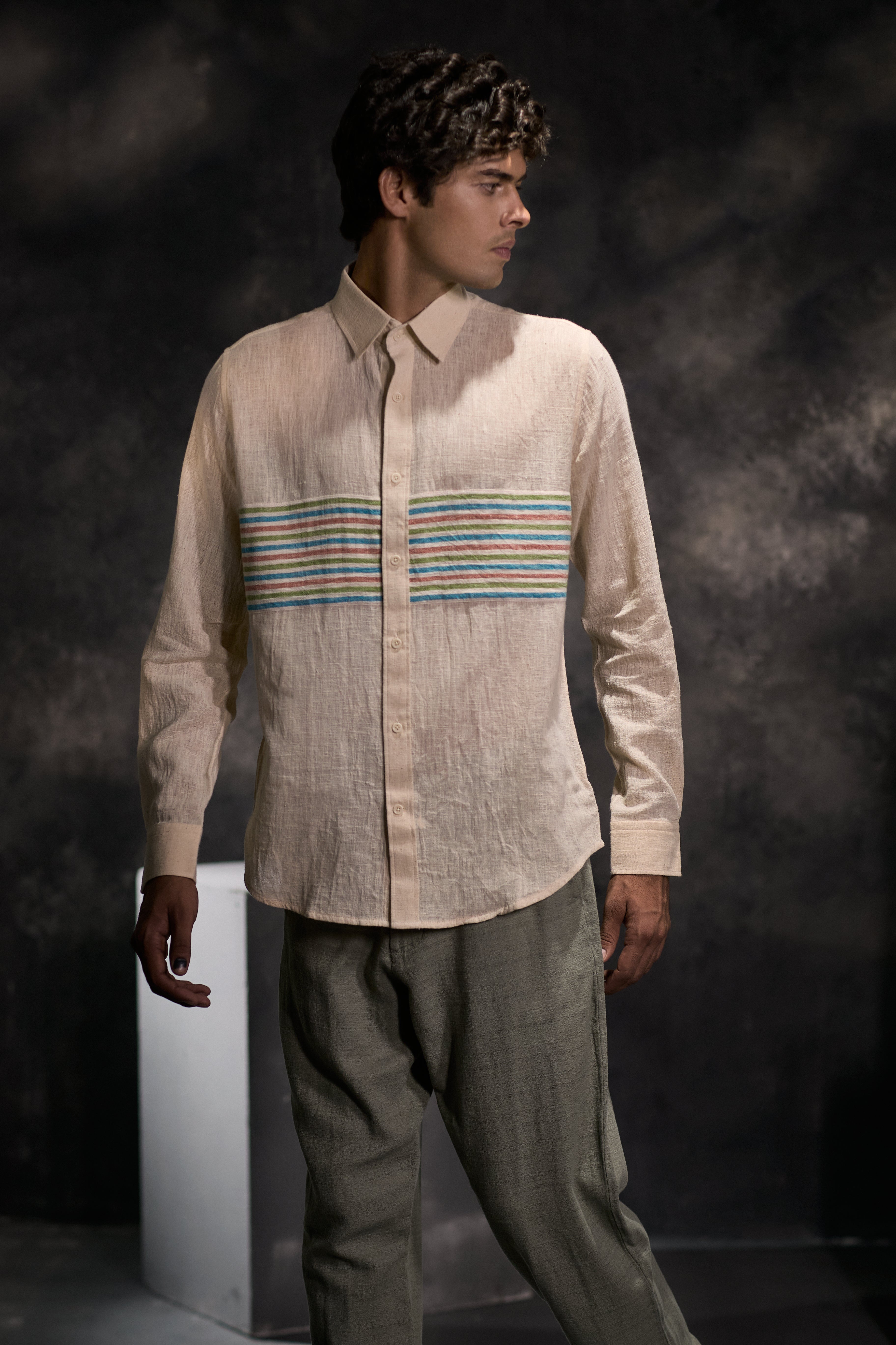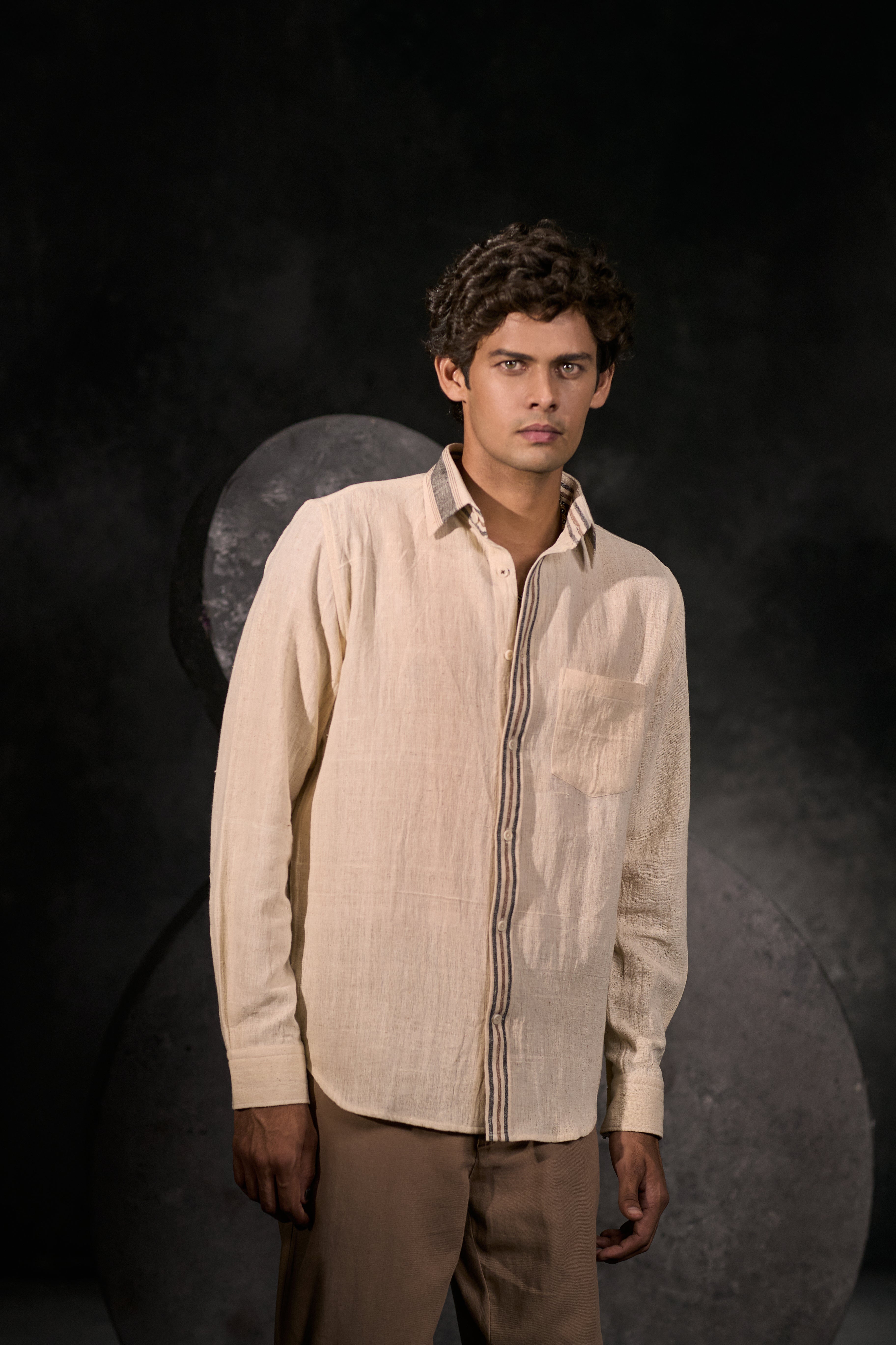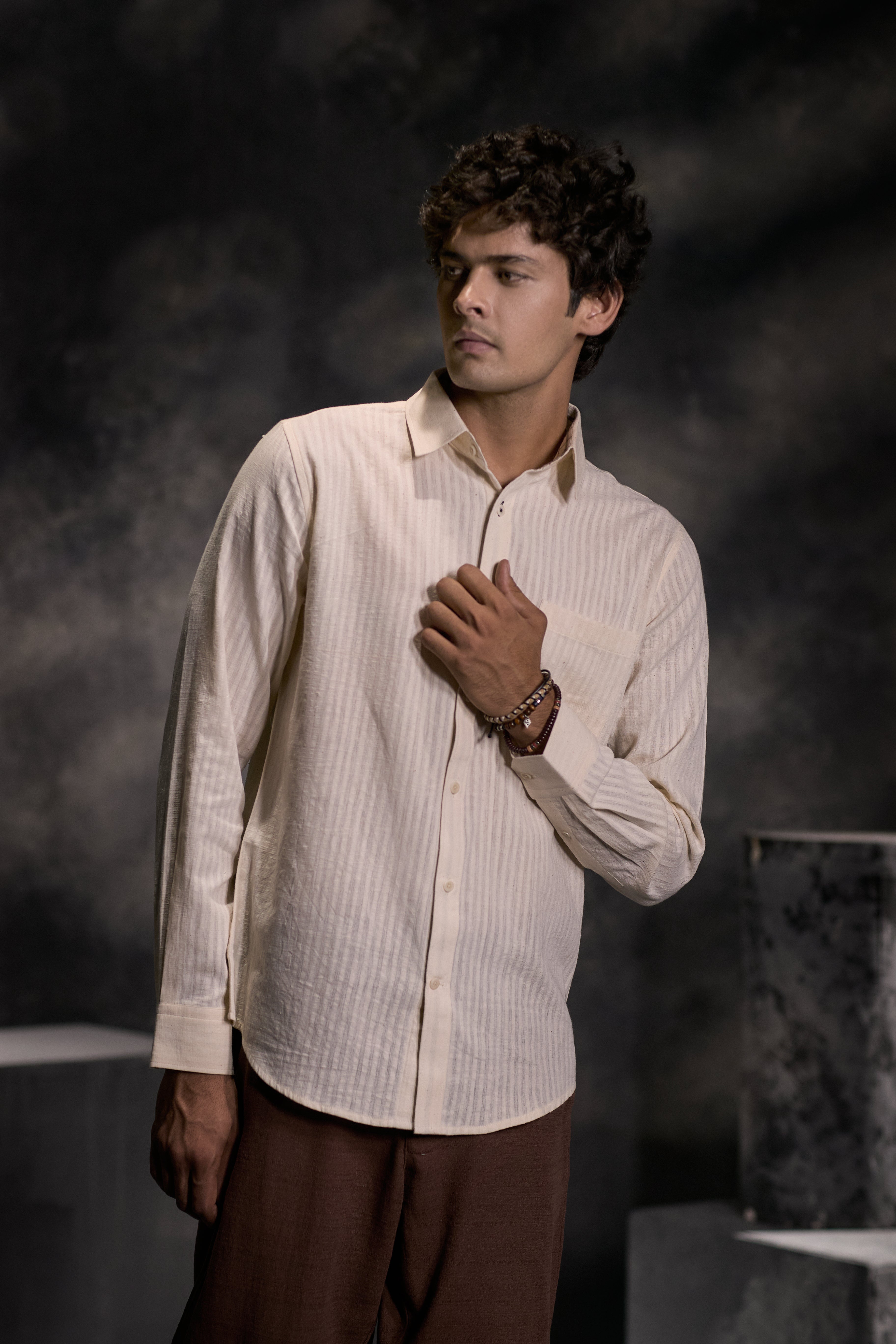 Indigo Dual Shade Organic Cotton Striped Shirt