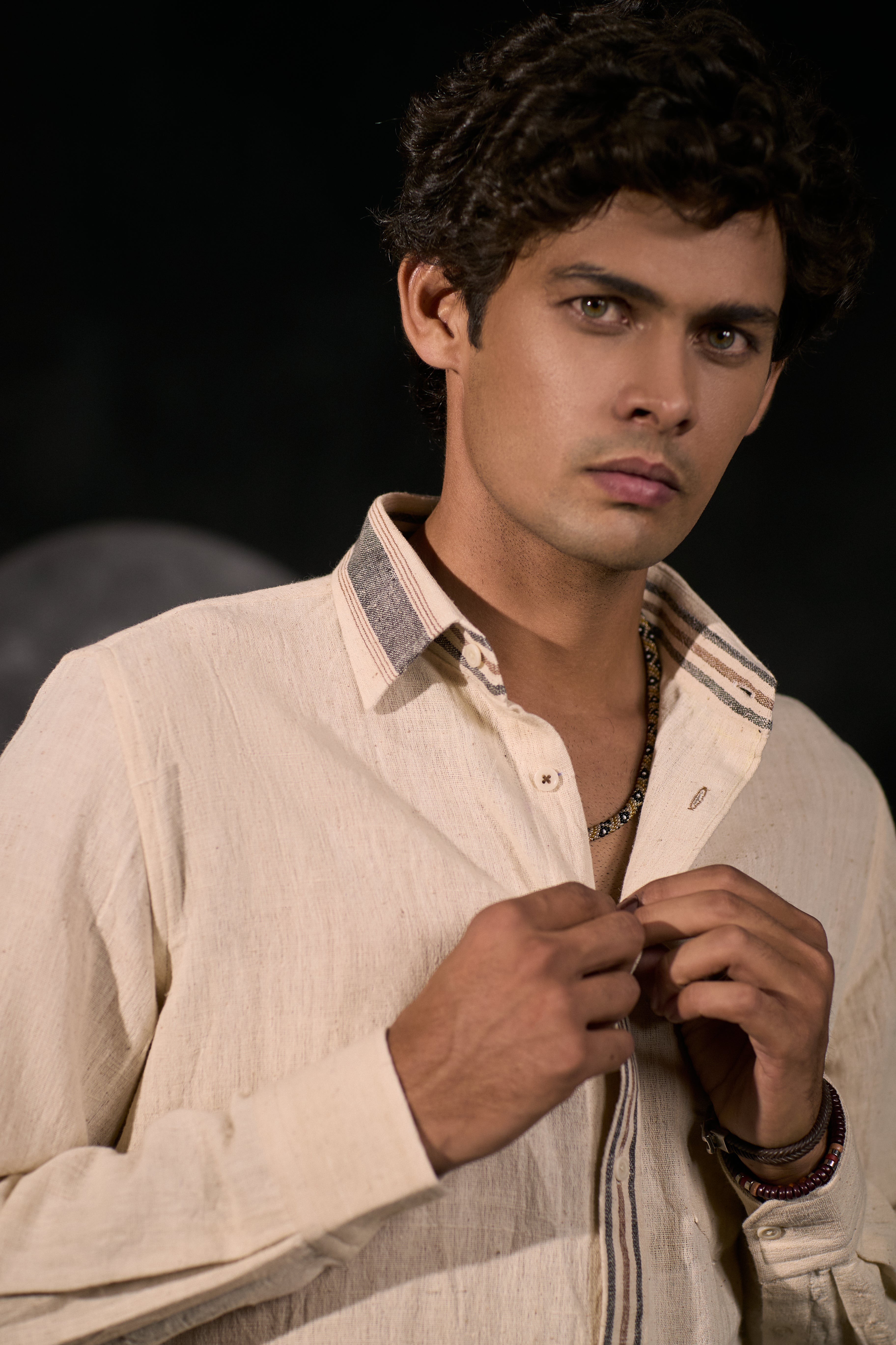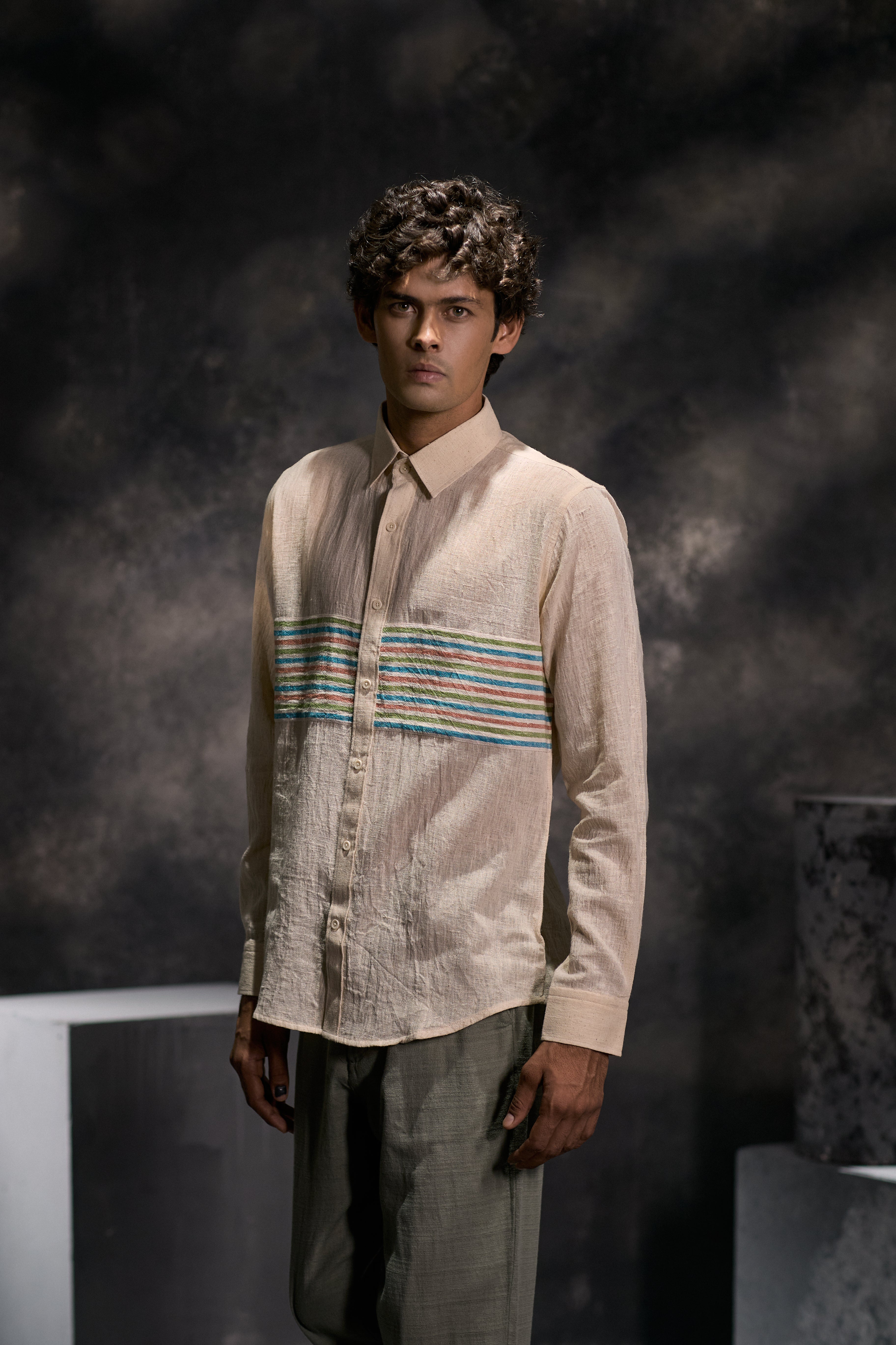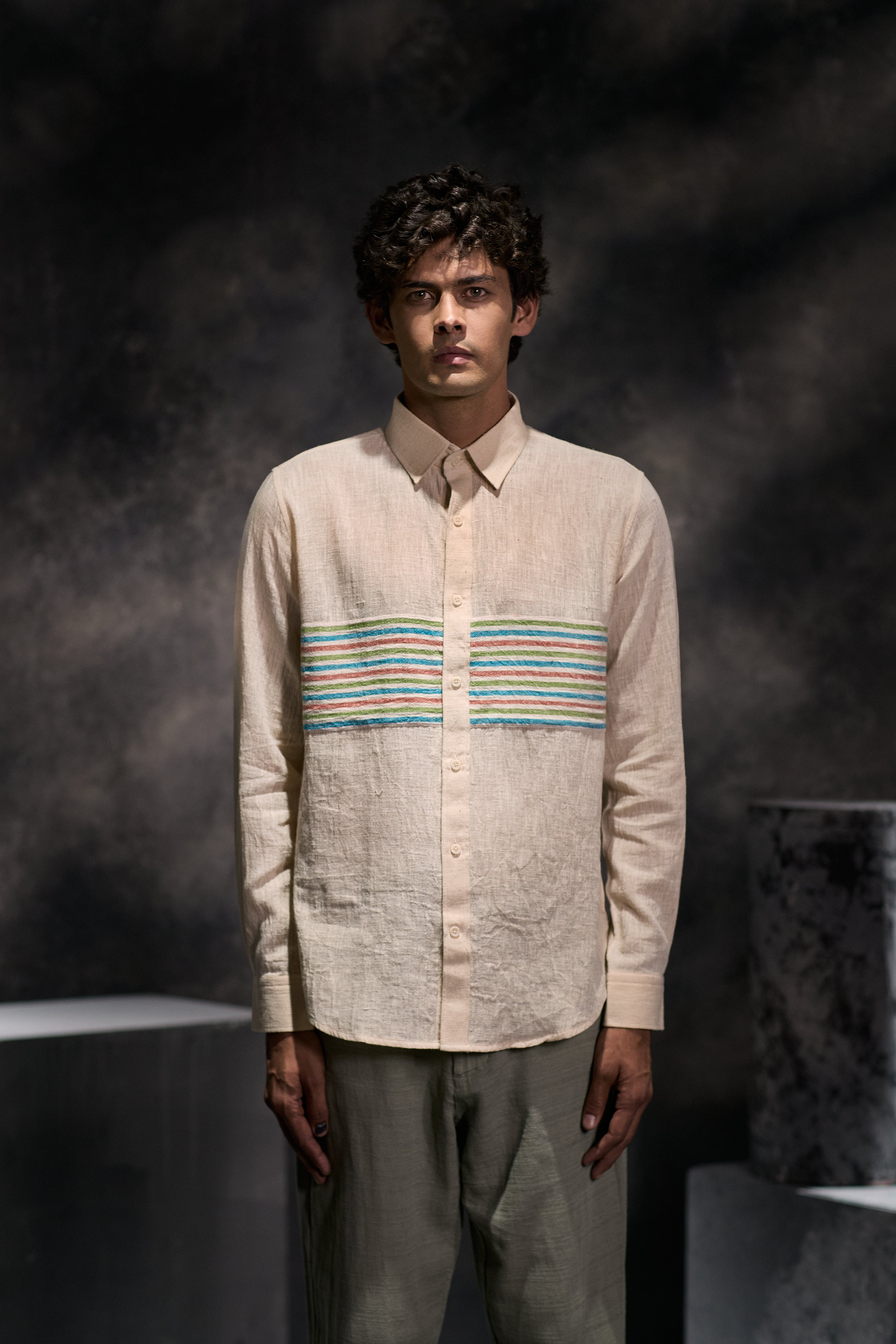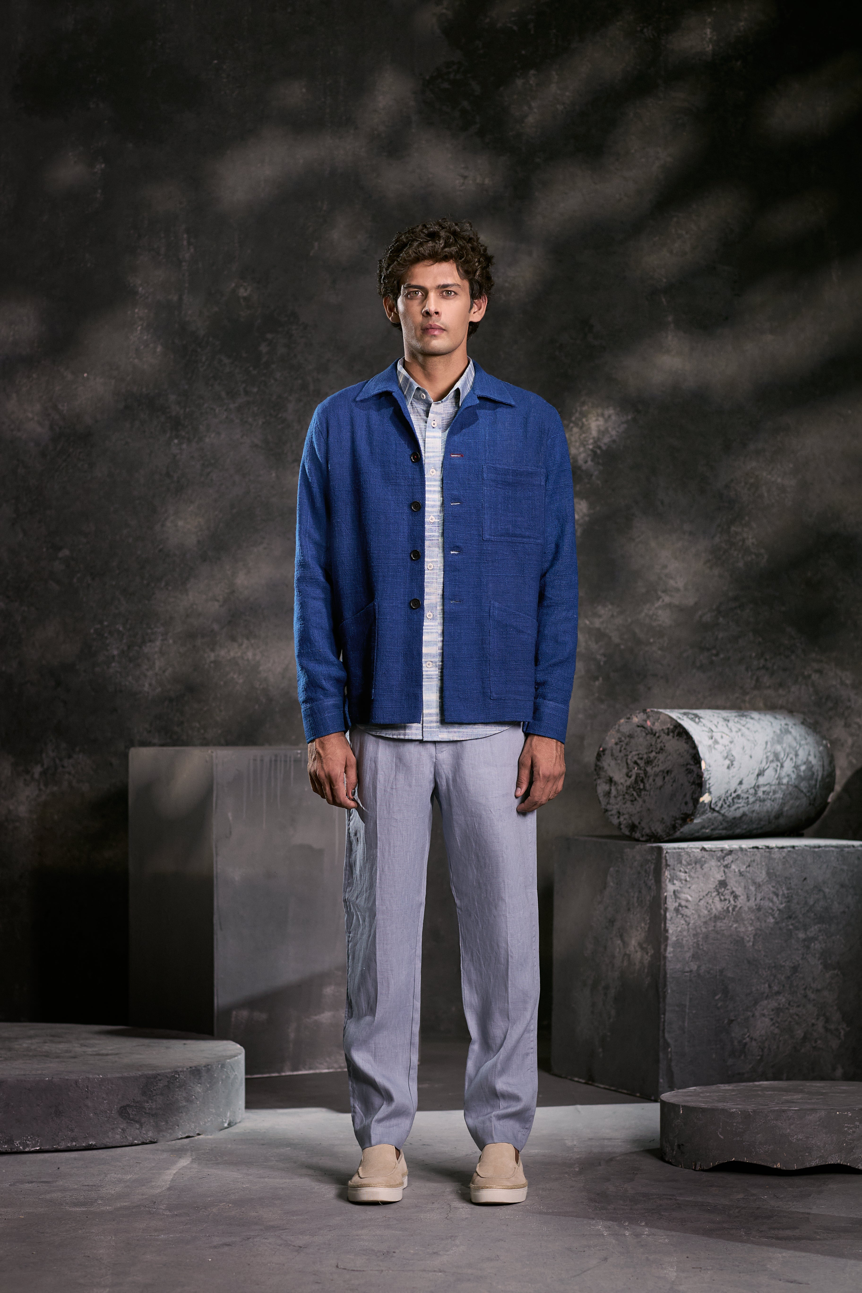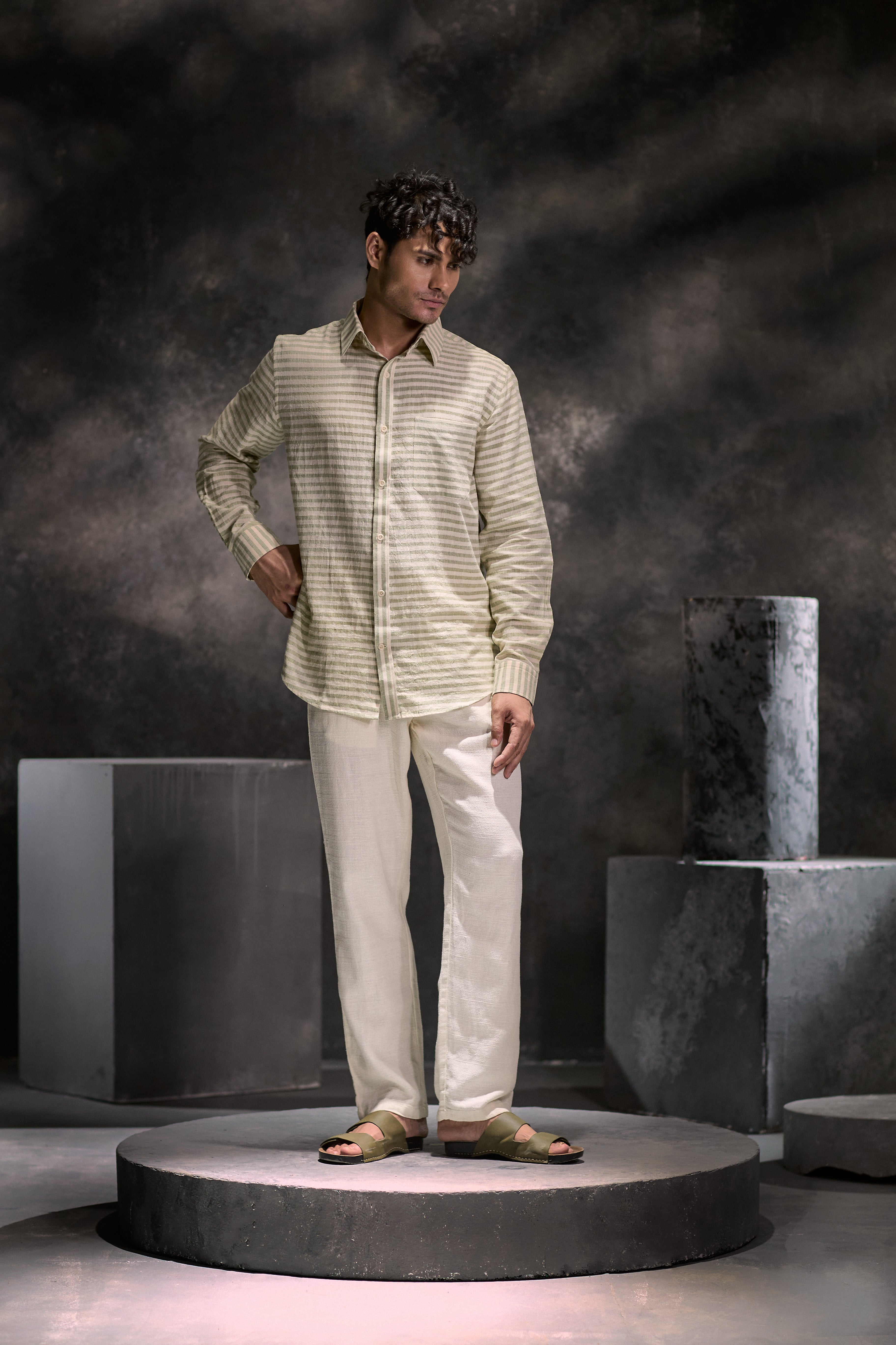 Indigo Dual Shade Organic Cotton Striped Shirt