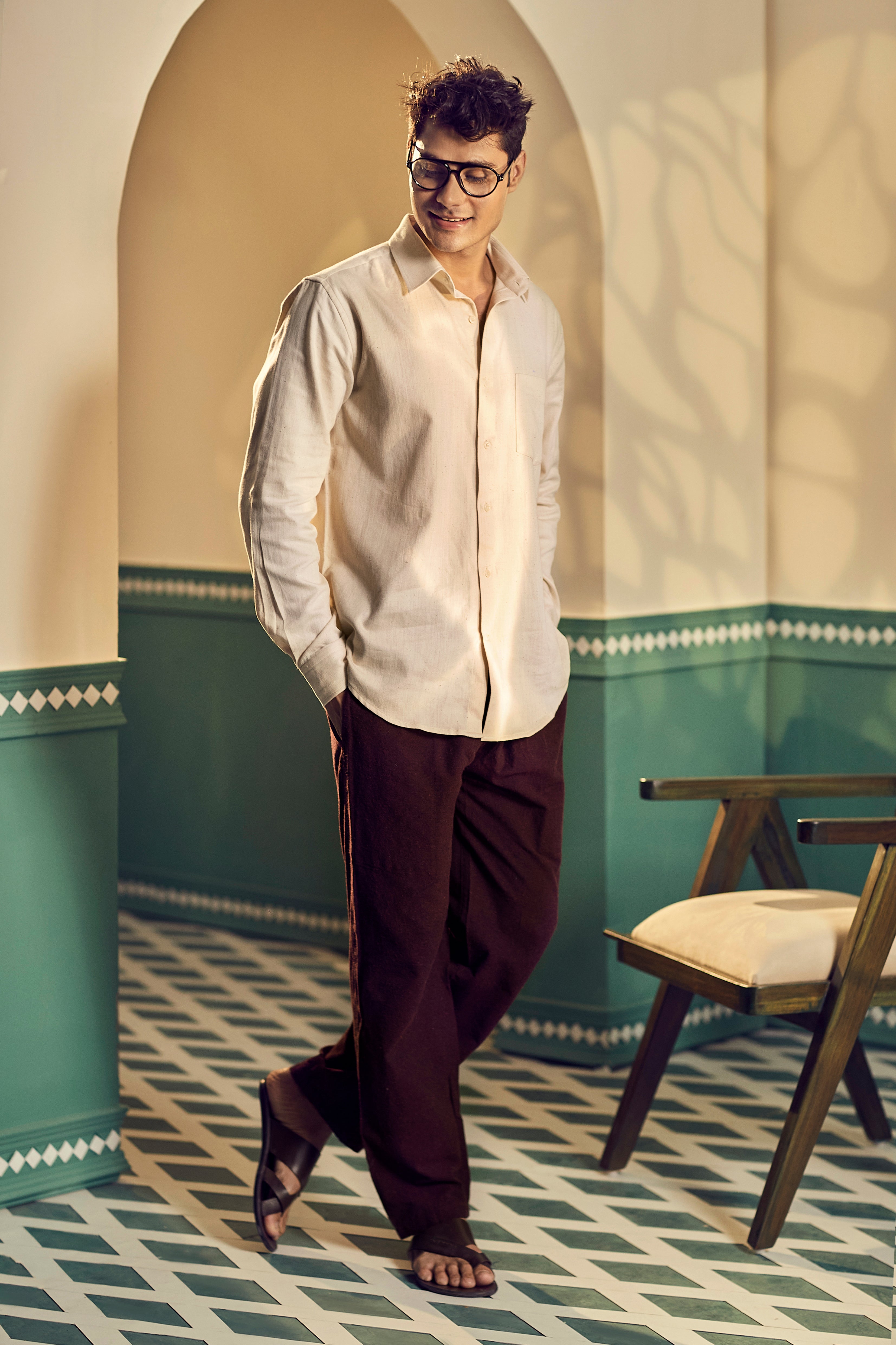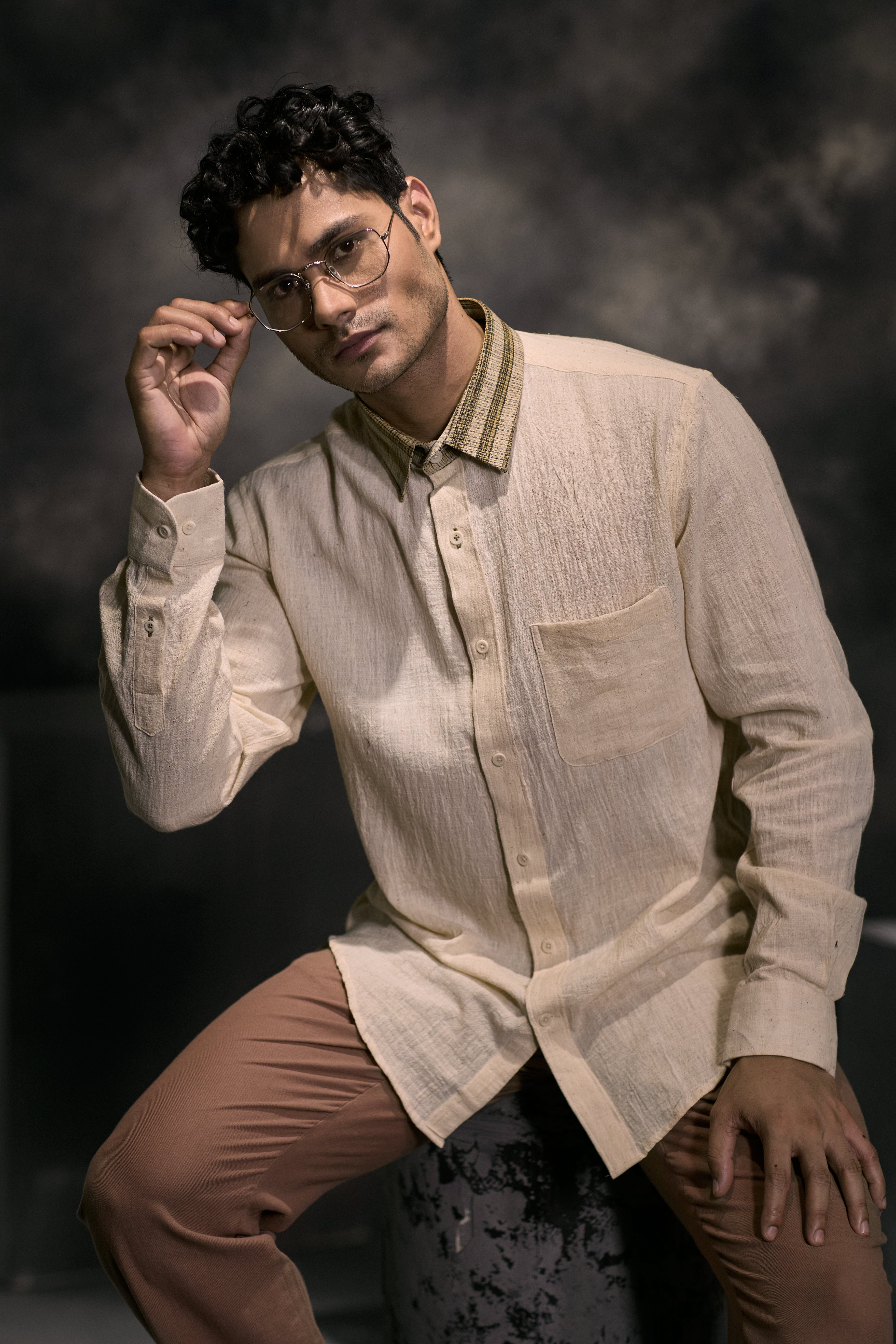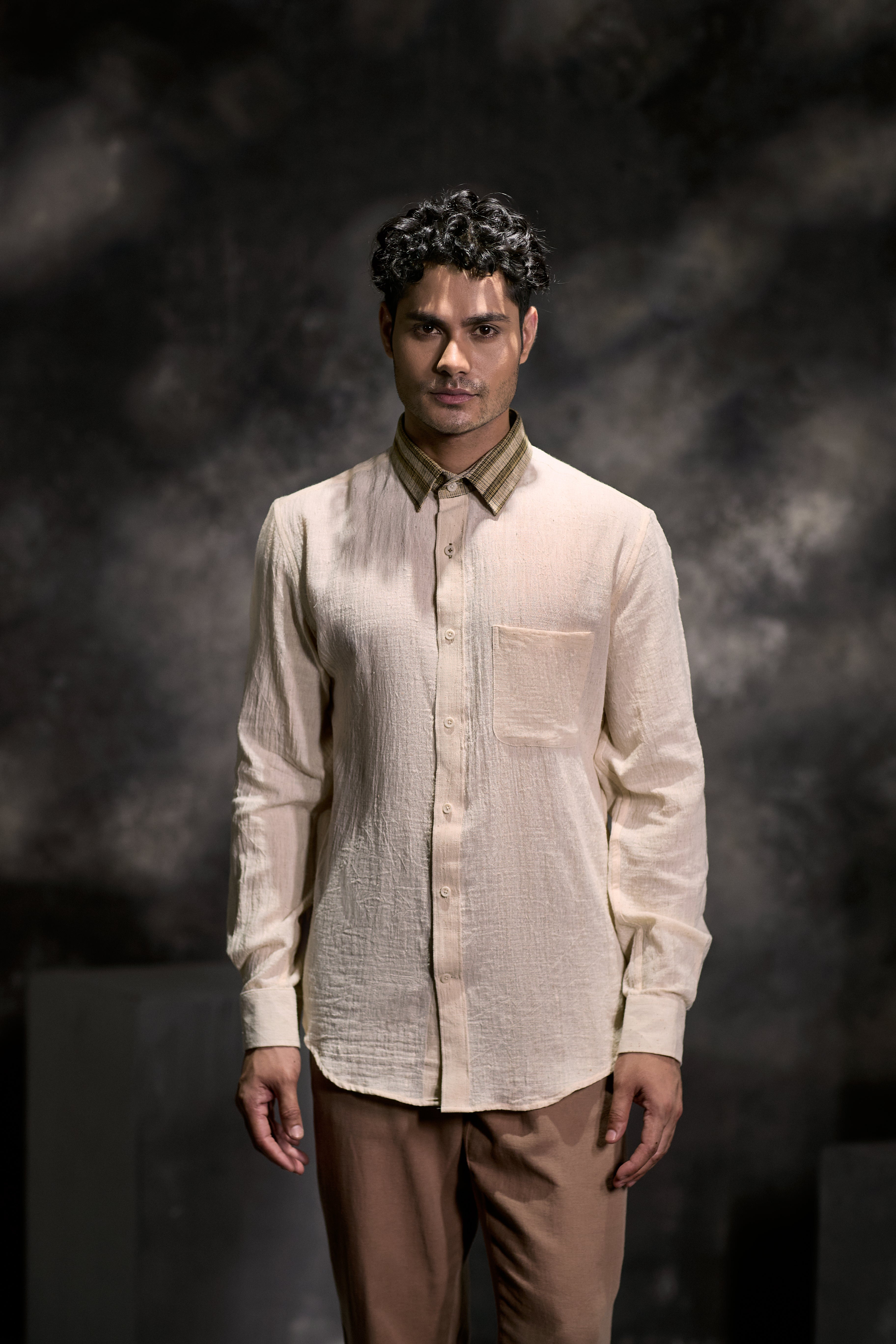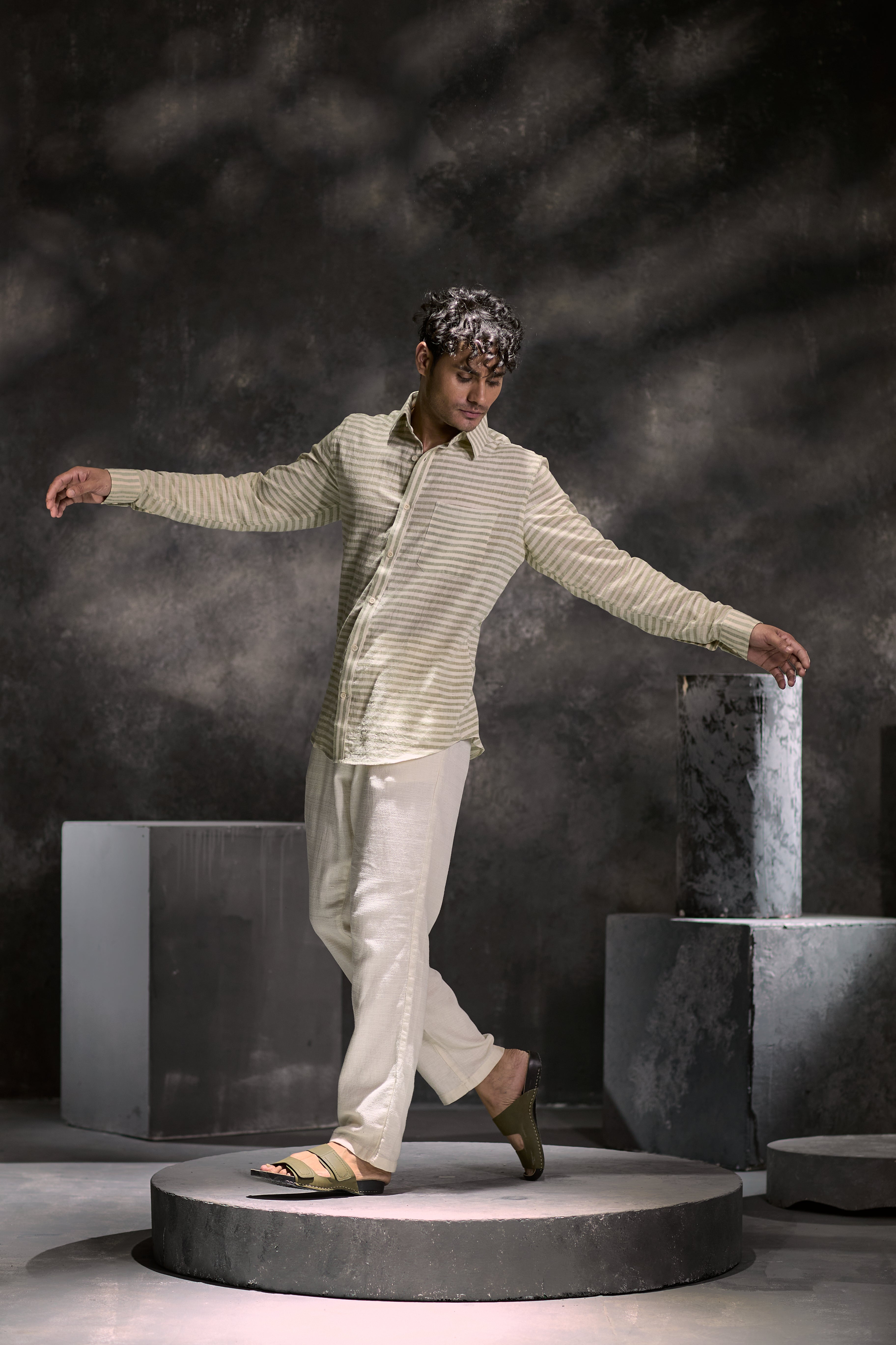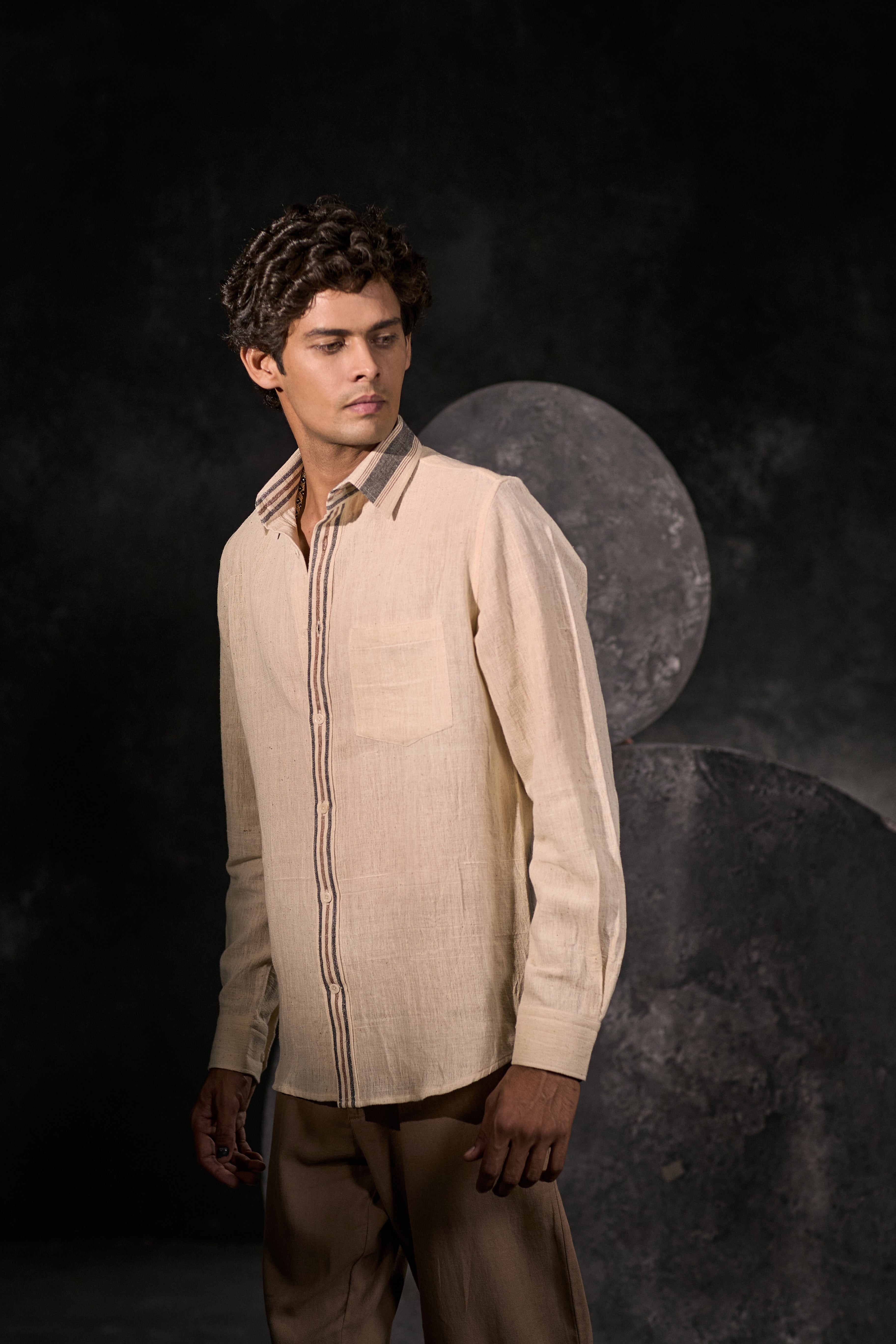 Indigo Dual Shade Organic Cotton Striped Shirt