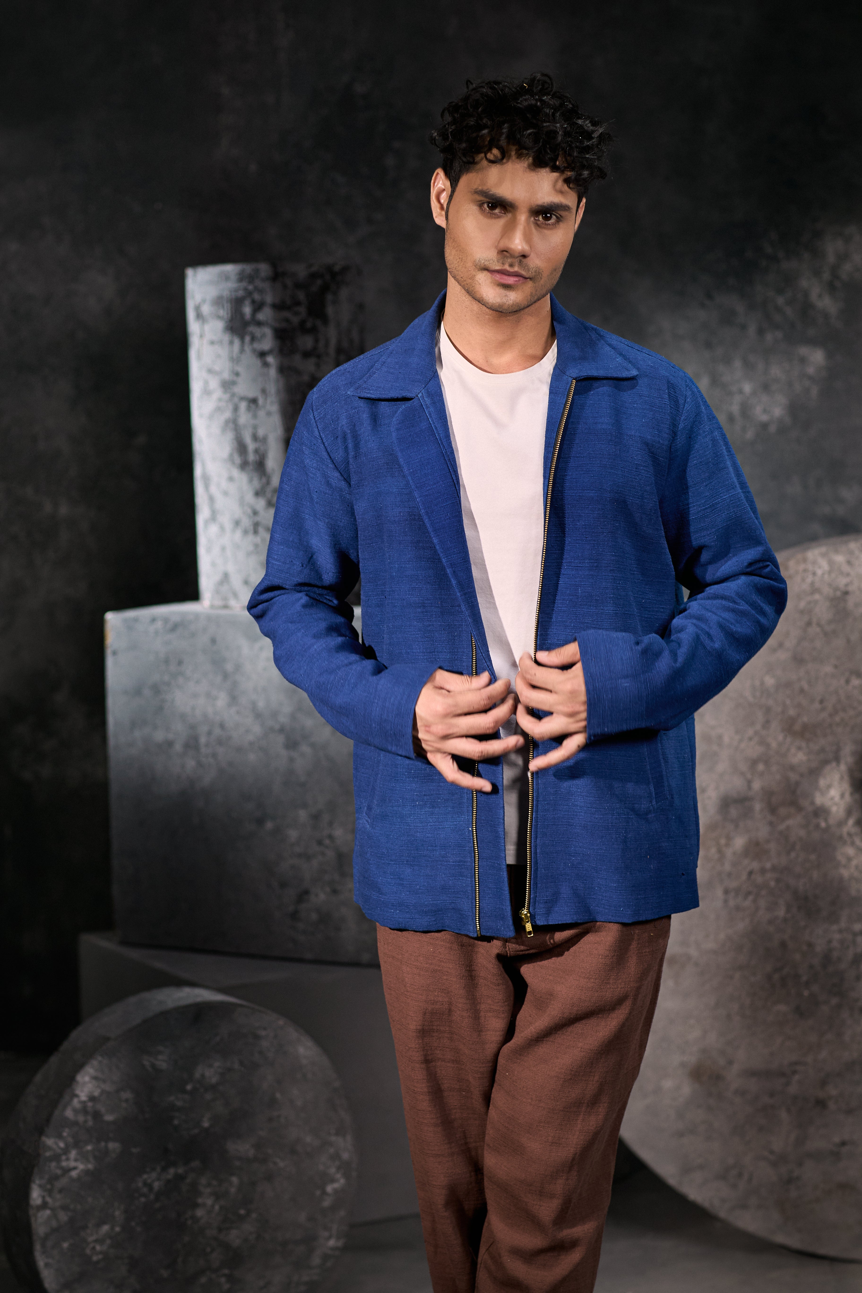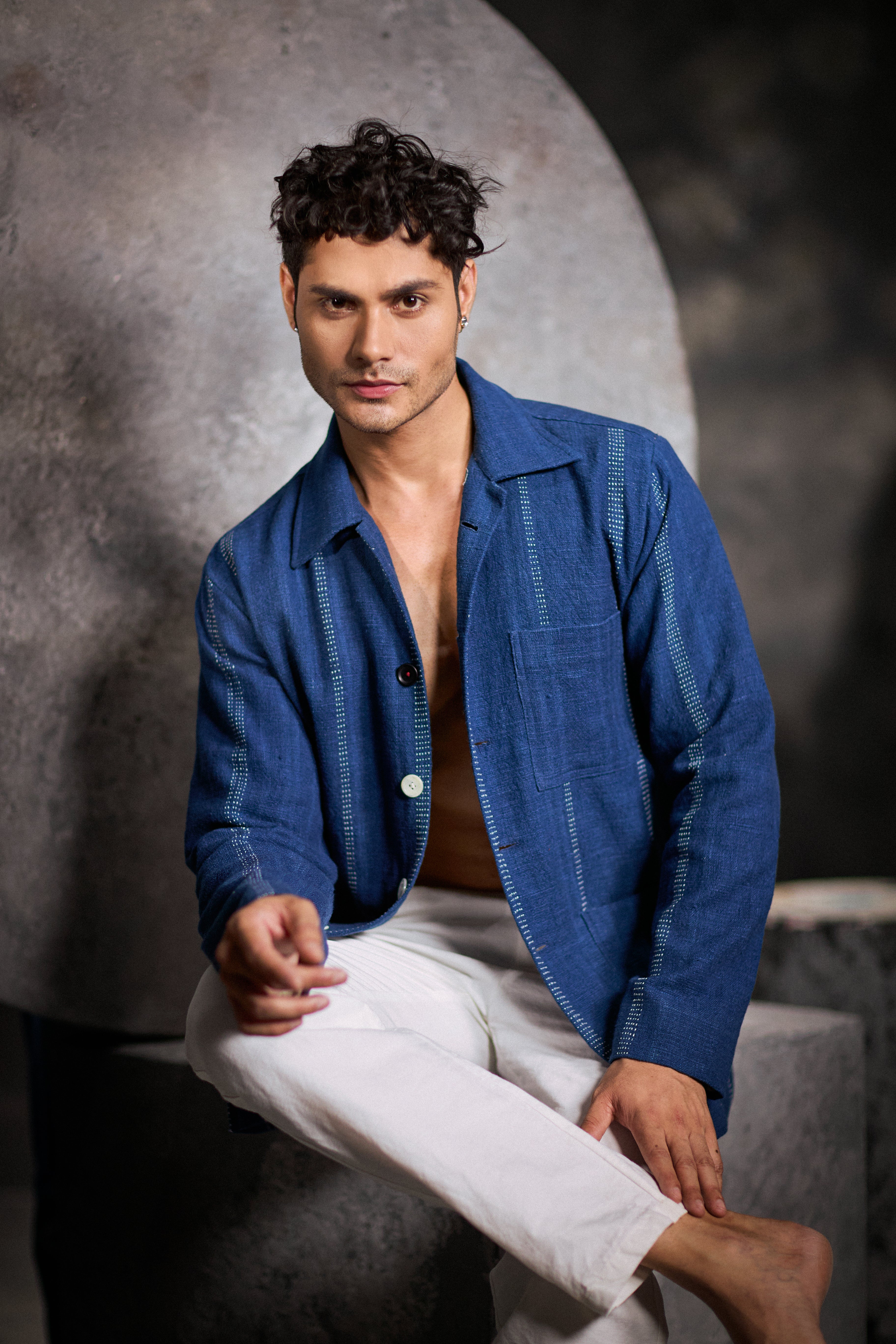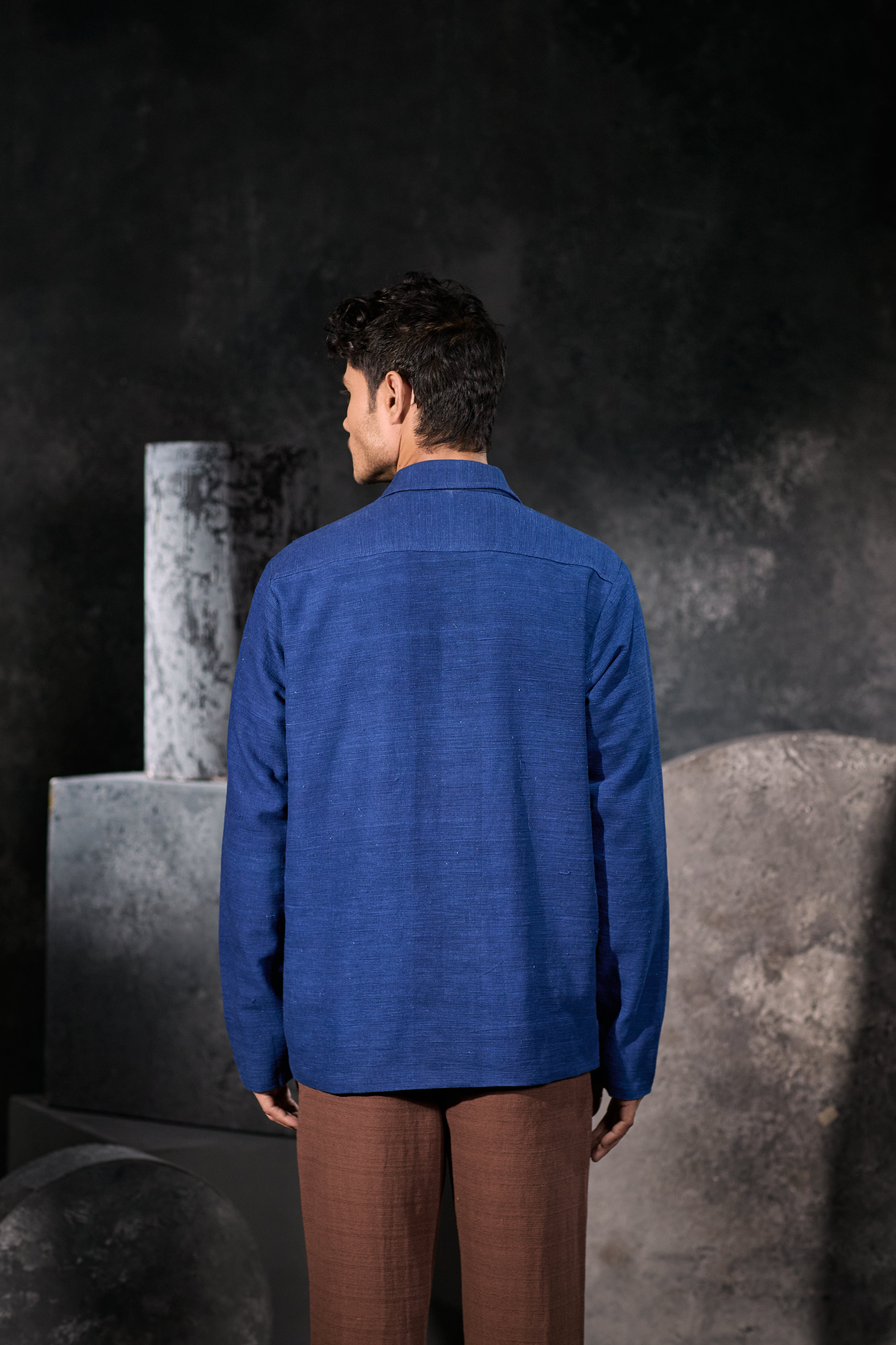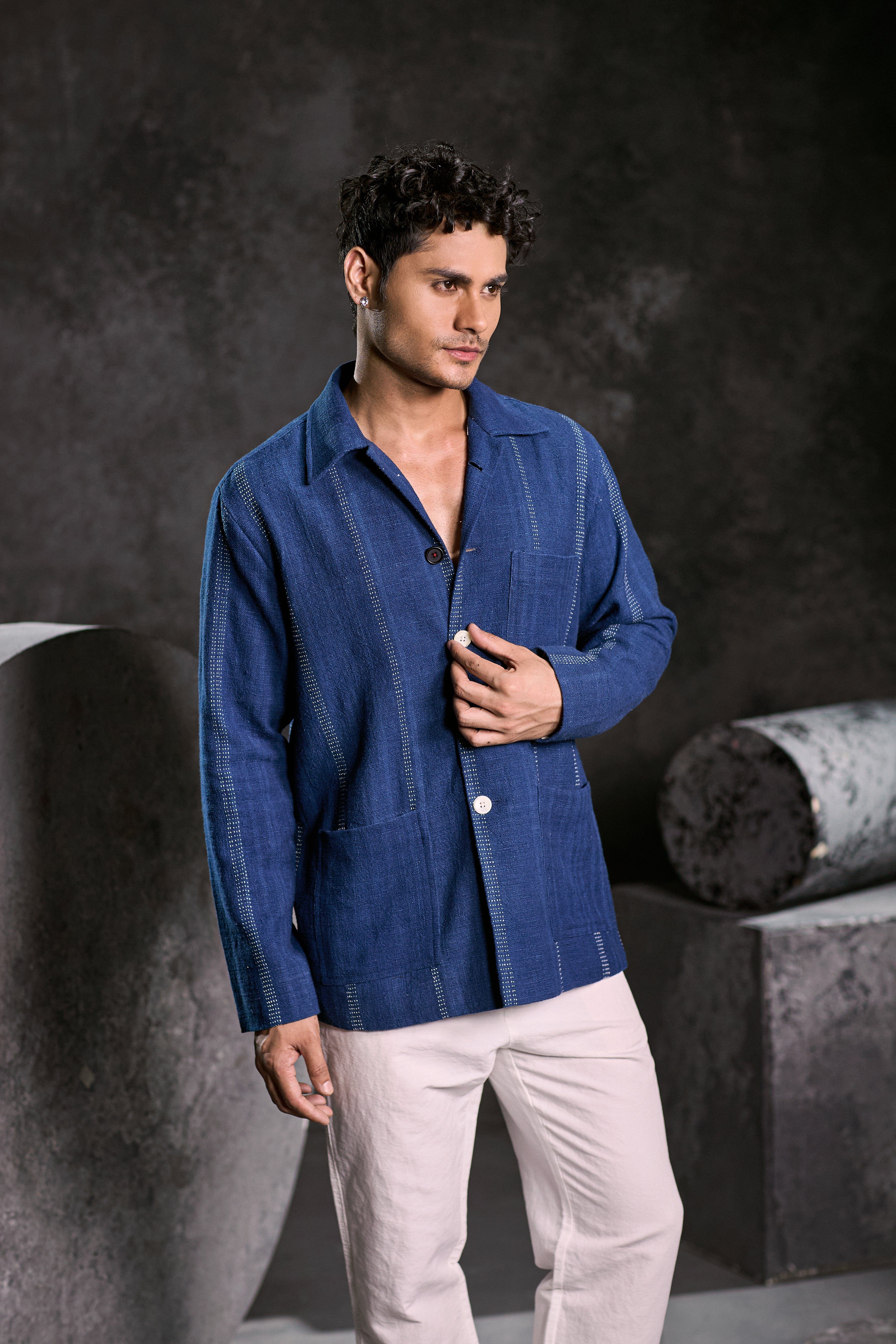 Indigo Handwoven Kala Cotton Embroidered Jacket