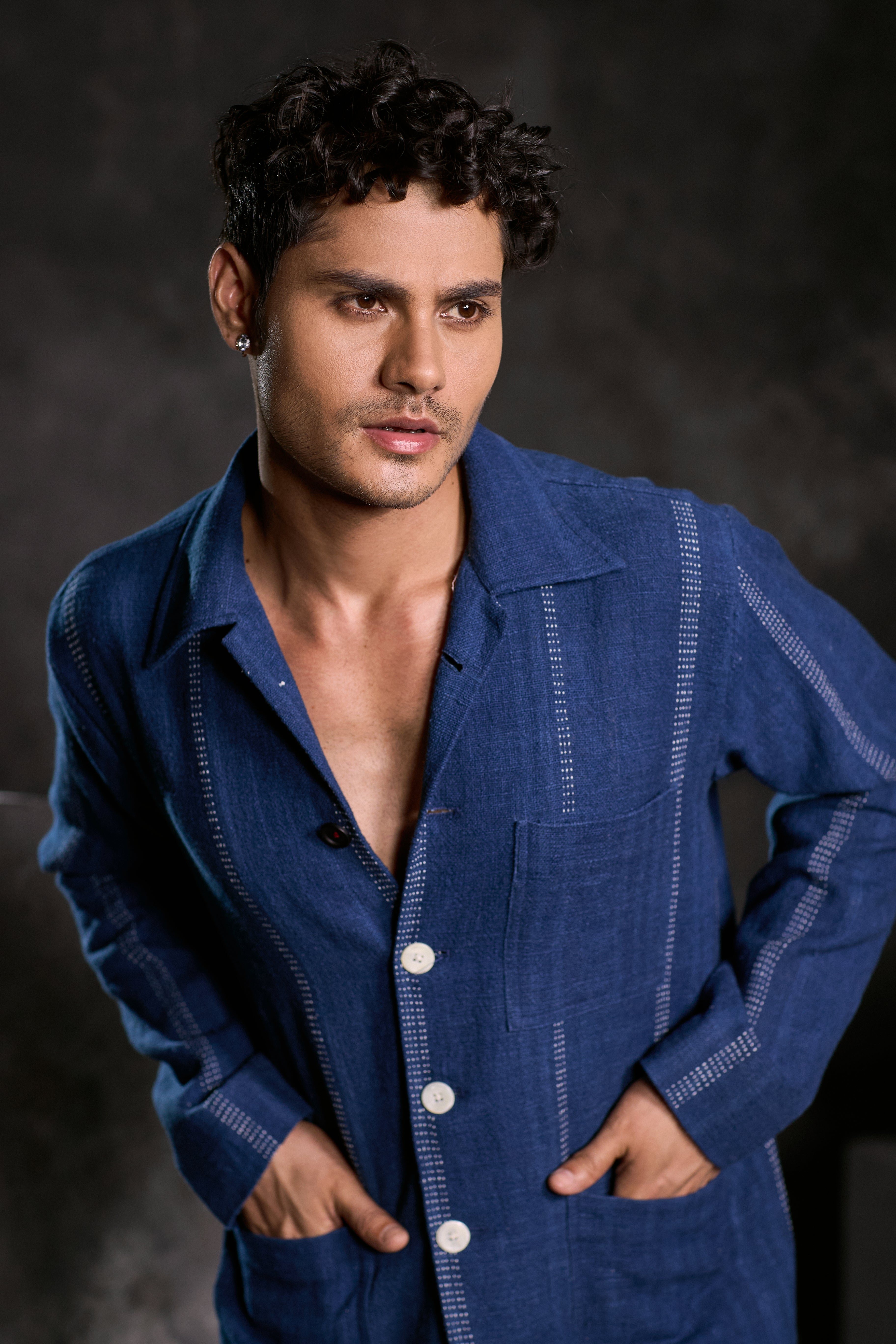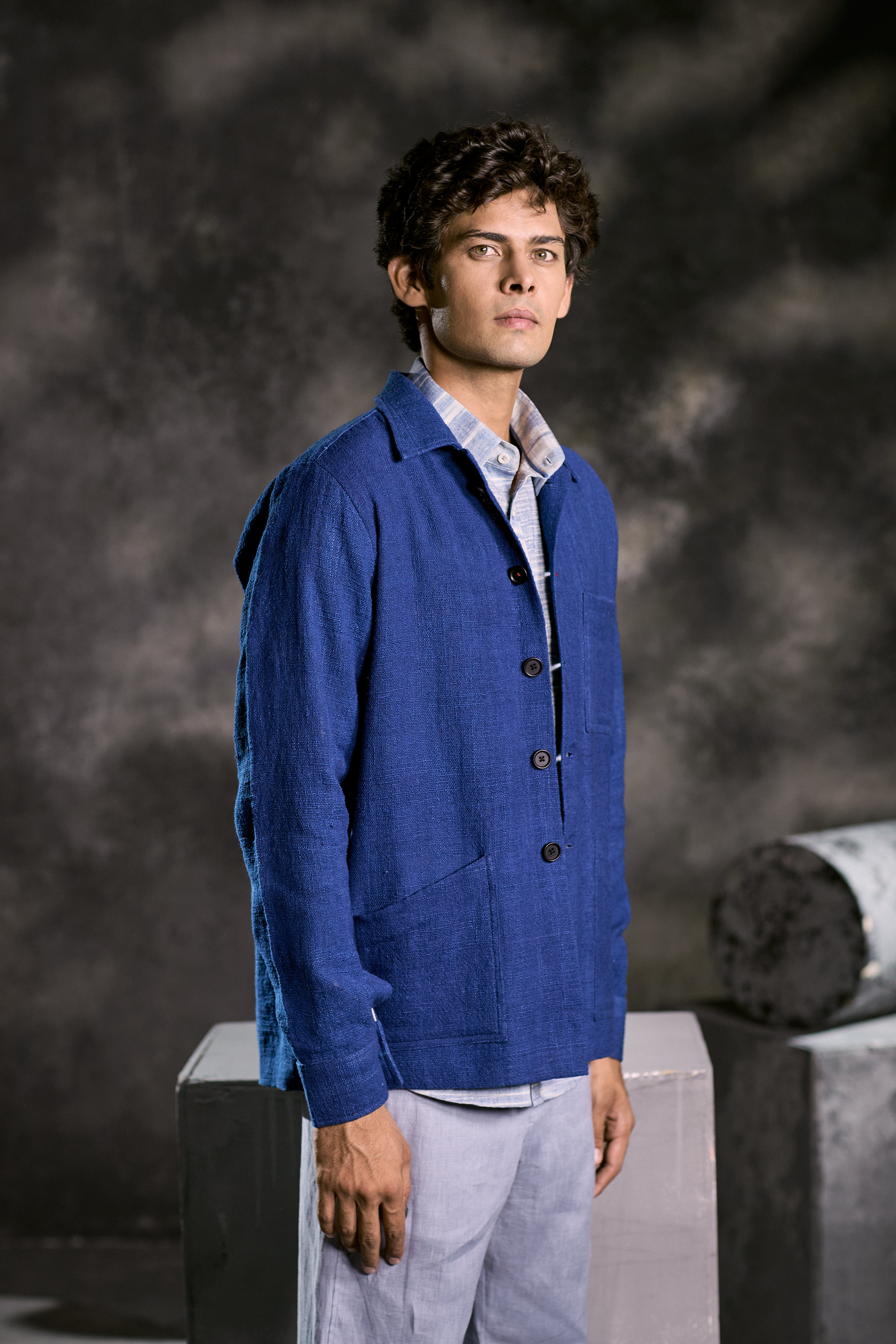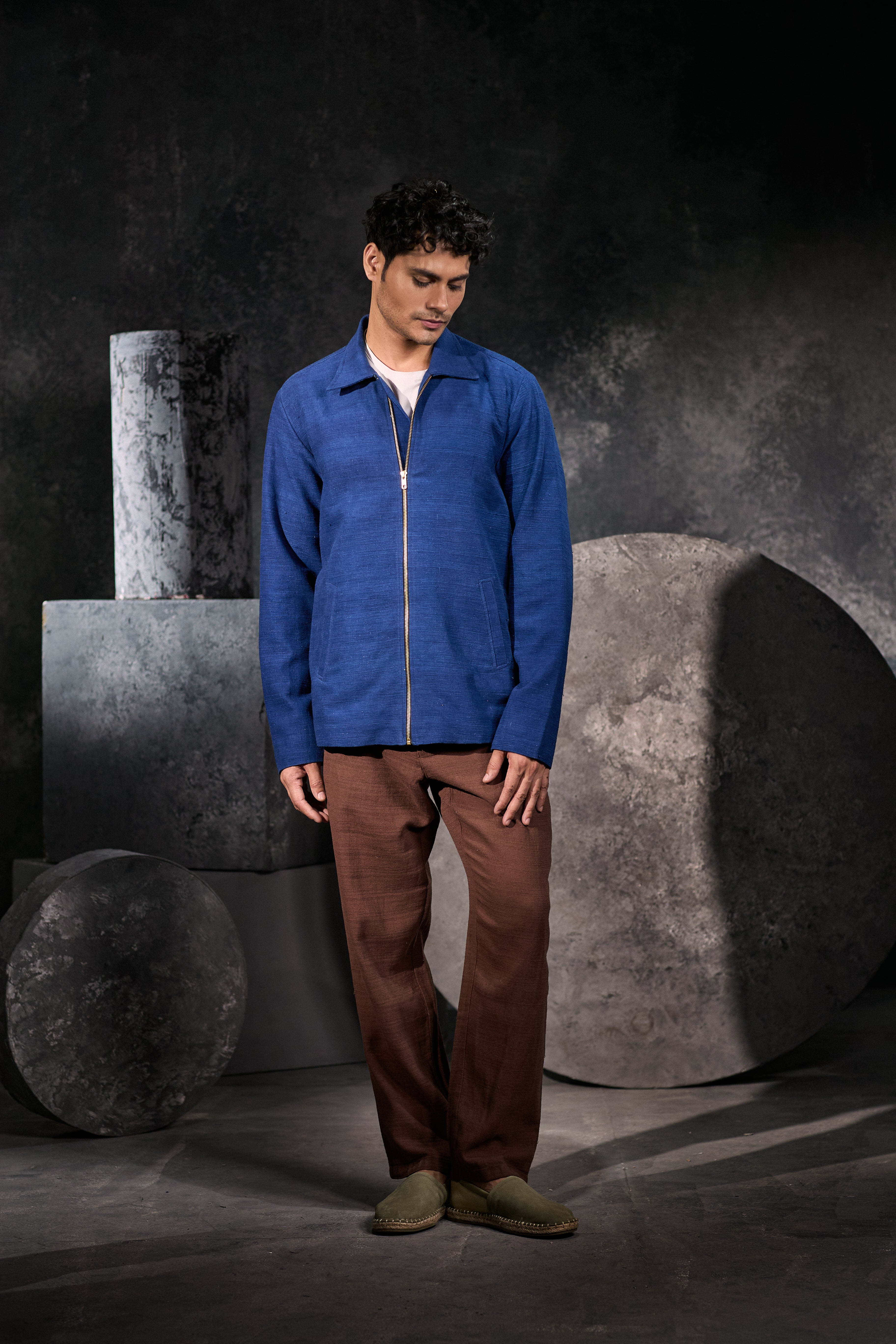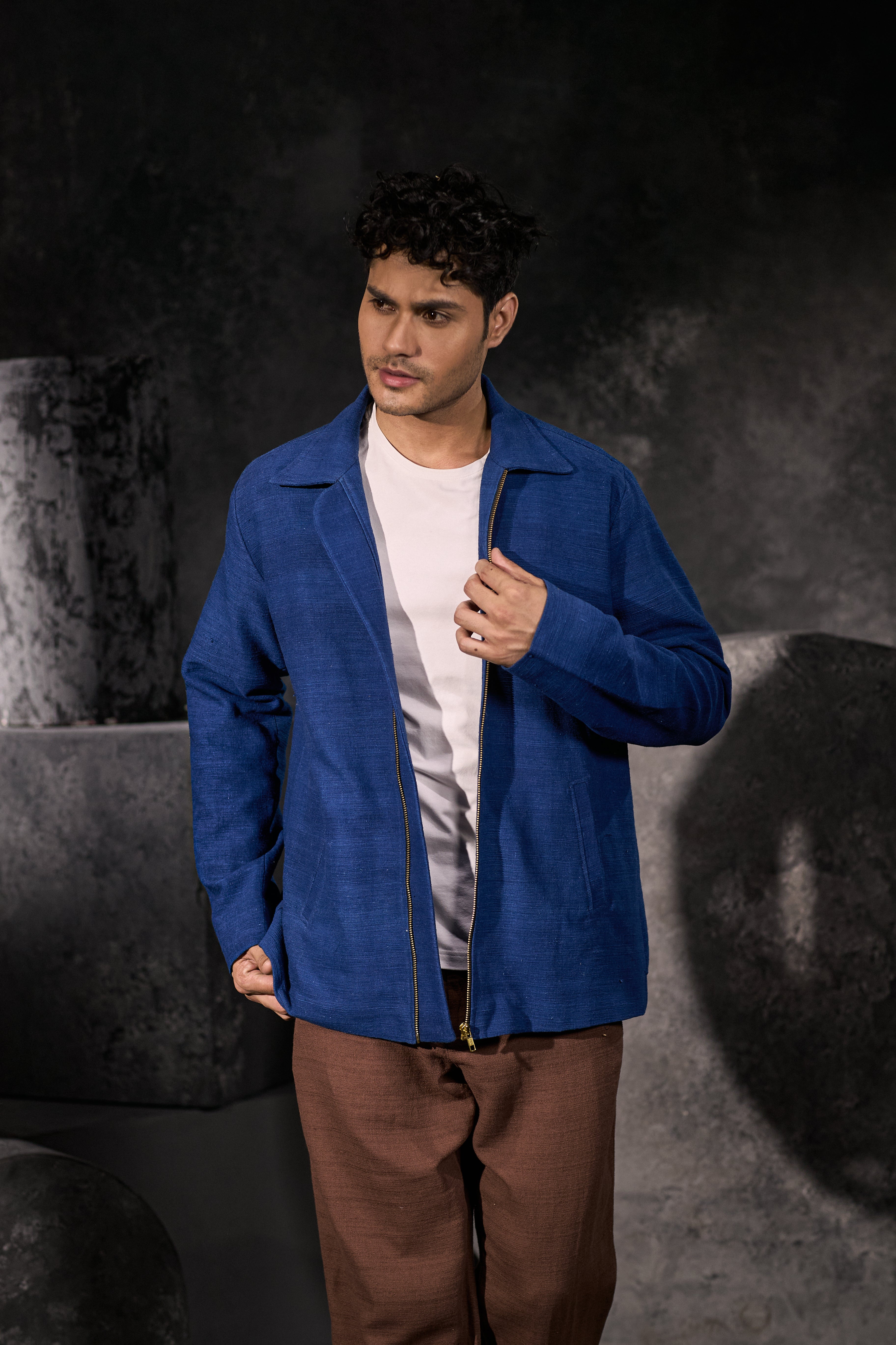 Indigo Handwoven Kala Cotton Embroidered Jacket