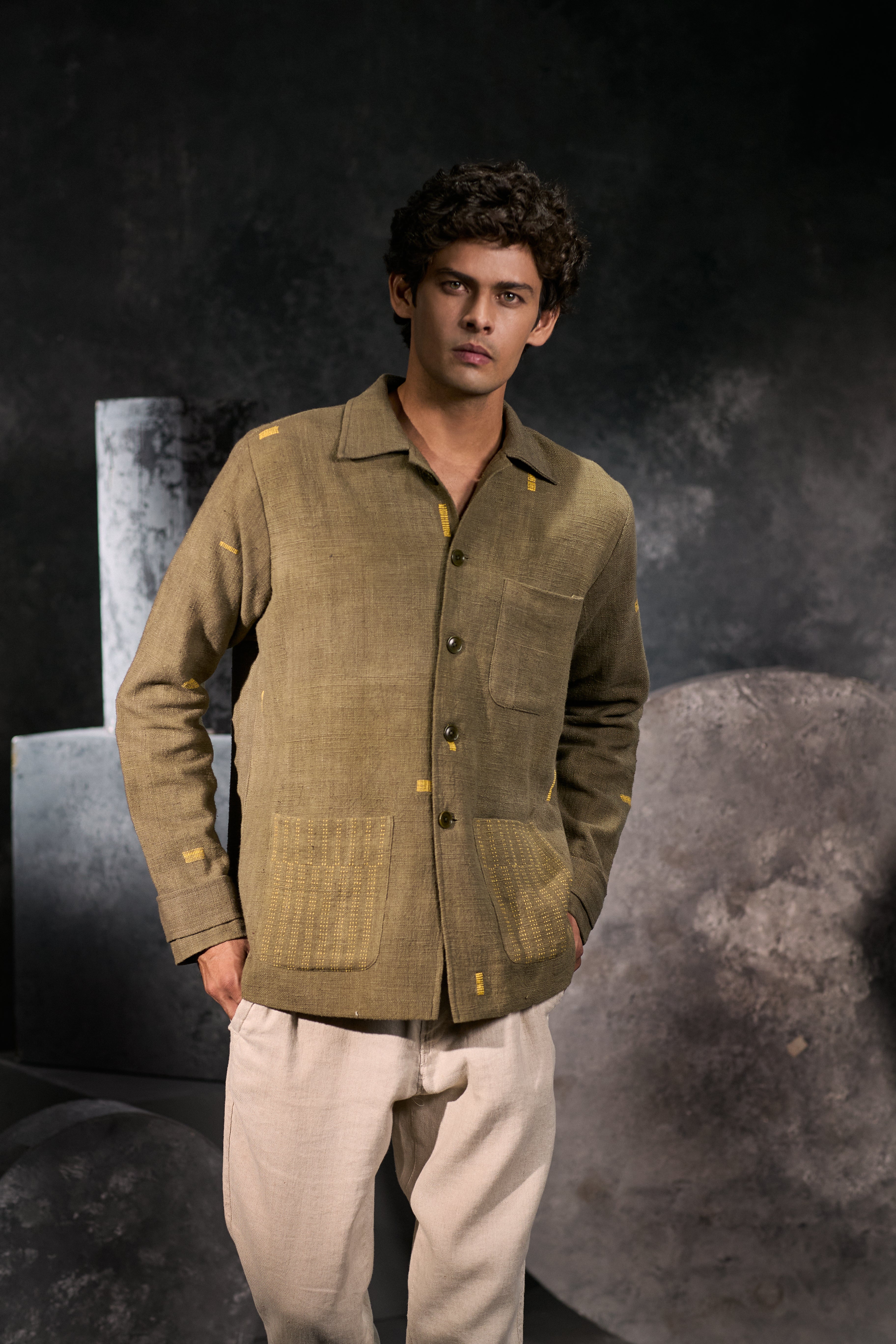 Sage Handwoven Kala Cotton Embroidered Jacket