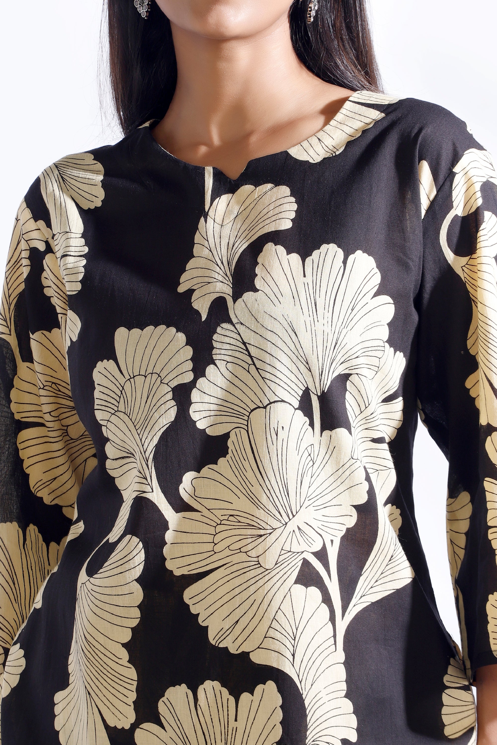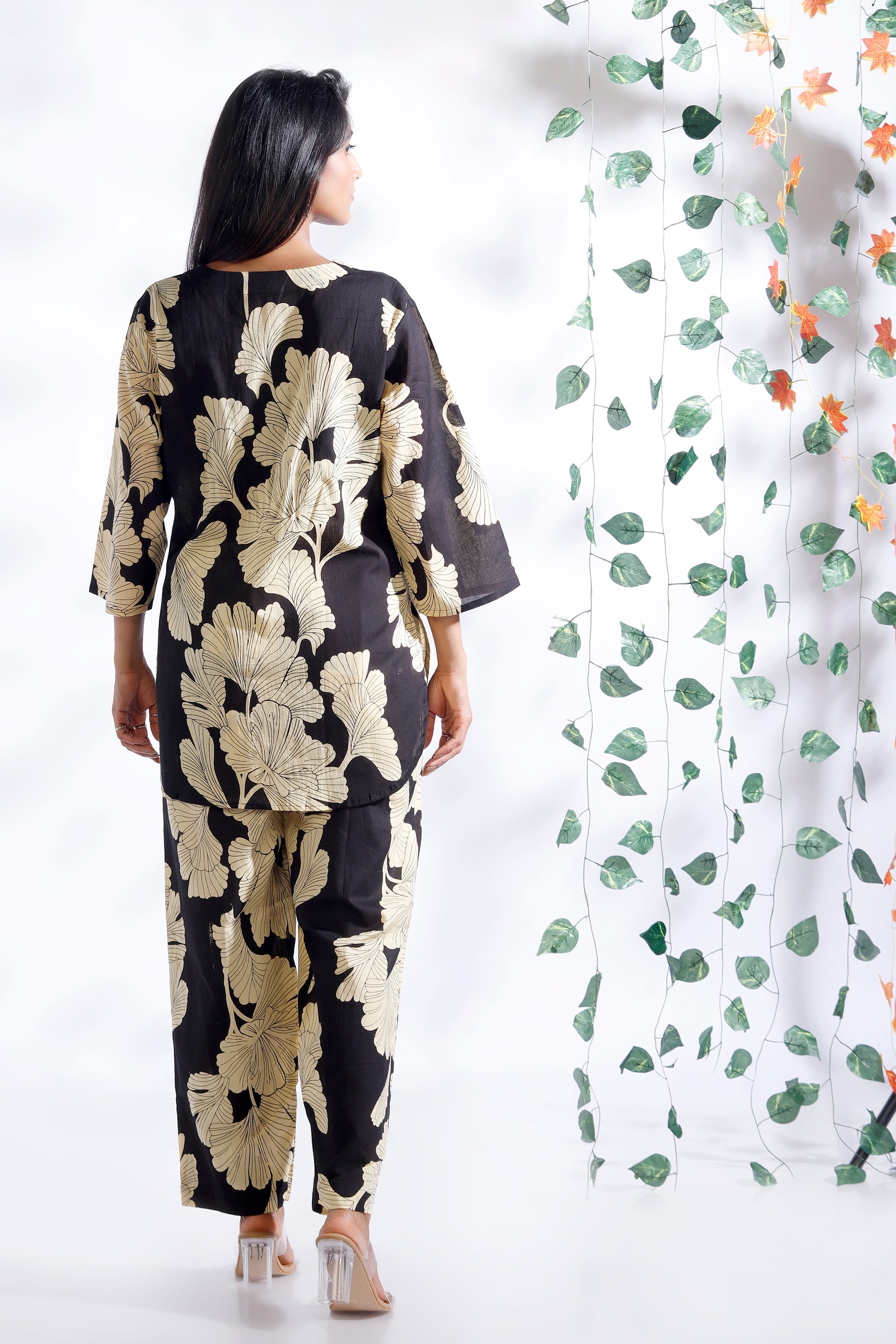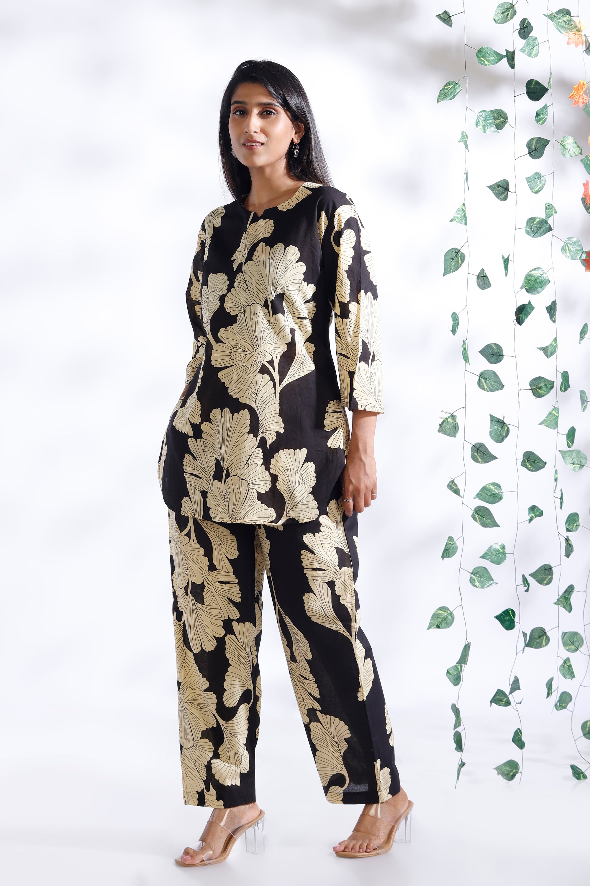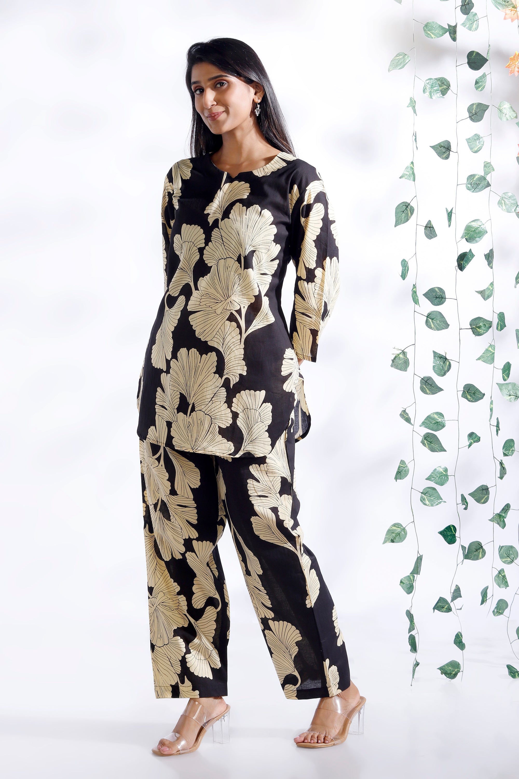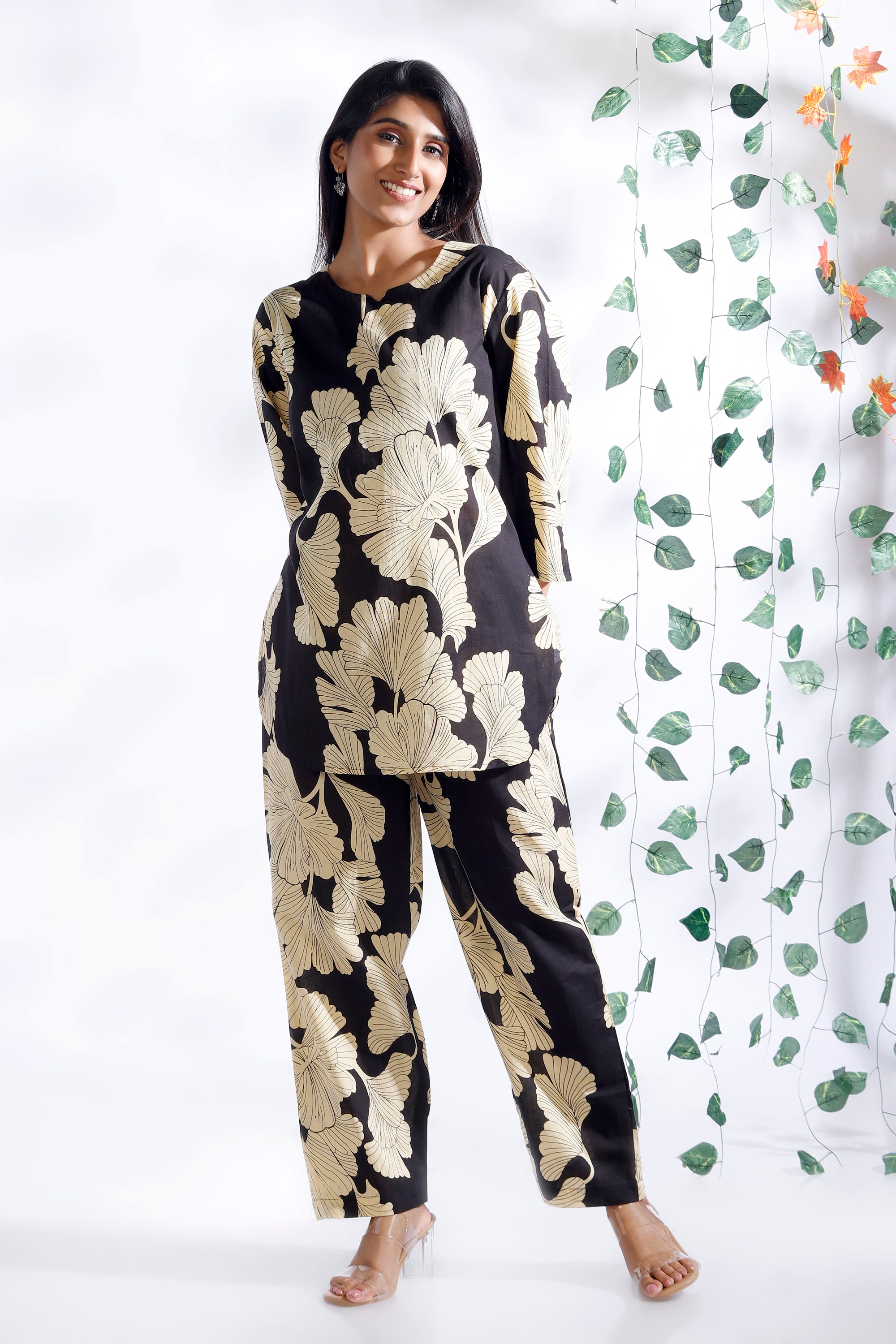Black Floral Cotton Kurta & Pant Co-ord Set