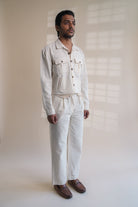 This Dawning Shirt Jacket and Tapered Pants set come in a calm and soothing color that we call Kora. Crafted in 100% undyed and unbleached cotton fibers and natural materials. This 30s cotton full-sleeve shirt jacket comes with statement buttons, paneling and side pockets. Stitches of Kantha, a form of Indian hand embroidery, line the pockets and panels. This 30s cotton pant is undyed and unbleached and includes practical touches such as side pockets and a button-down fly. A slightly tapered silhouette with deep inverted pleats, it is adorned with Kantha stitches on the faux flaps to create an ombre effect.
