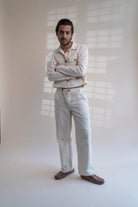 This Dawning Wide Leg Pants comes in a calm and soothing colour that we call Kora. Crafted in 100% cotton fibres and natural materials. This pair of 30s cotton pants is undyed and unbleached. Practical touches include side pockets, button-down fly, and belt loops. The pockets are highlighted with the stitches of Kantha, a form of Indian hand embroidery to bring character to the garment.