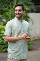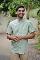 Earthy Route TENCEL Lyocell Linen Fresh Green Half Sleeve Mandarin Collar Shirt