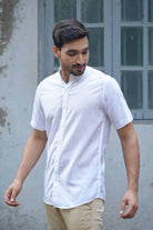Earthy Route TENCEL Lyocell Linen Snow White Half Sleeve Mandarin Collar Shirt