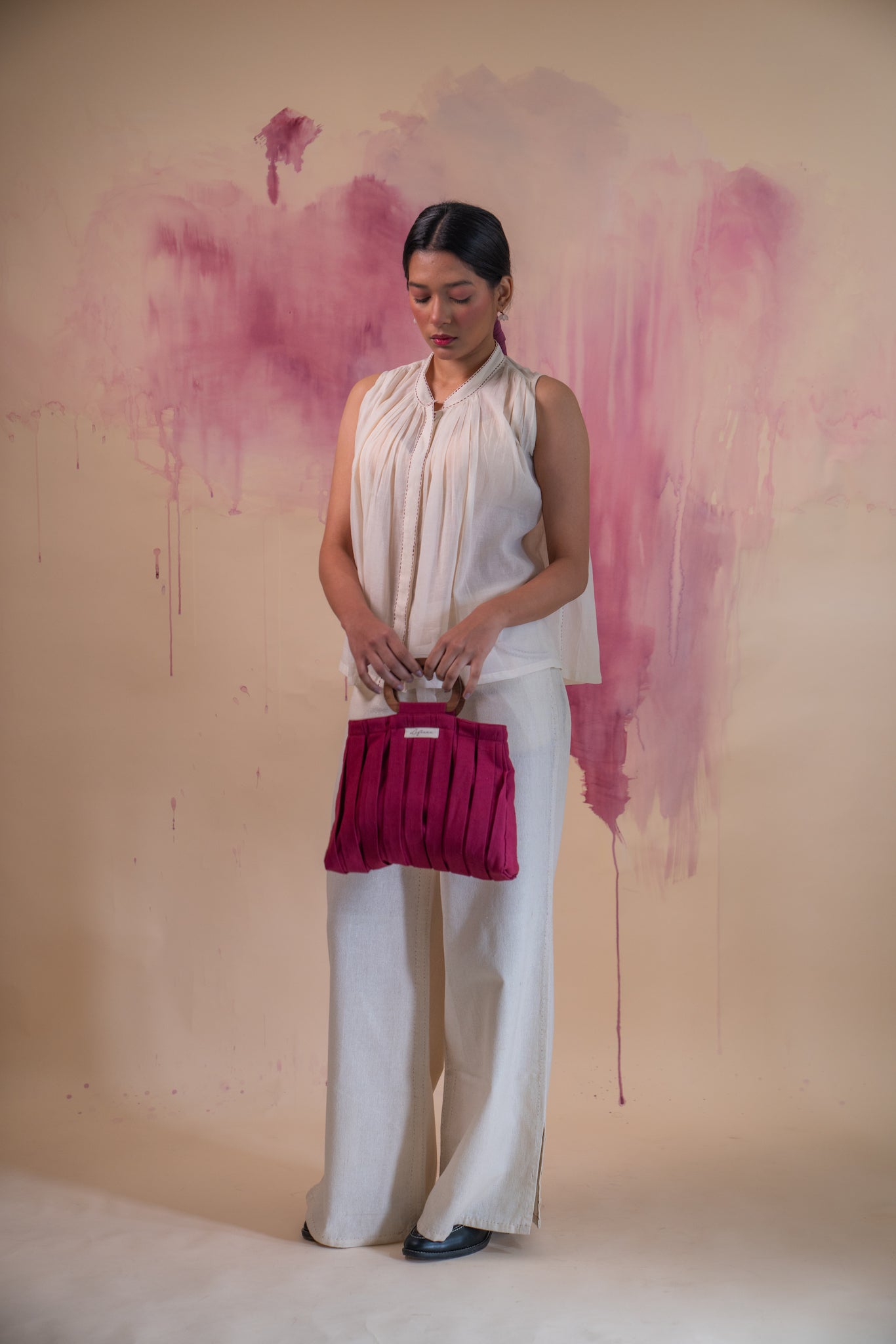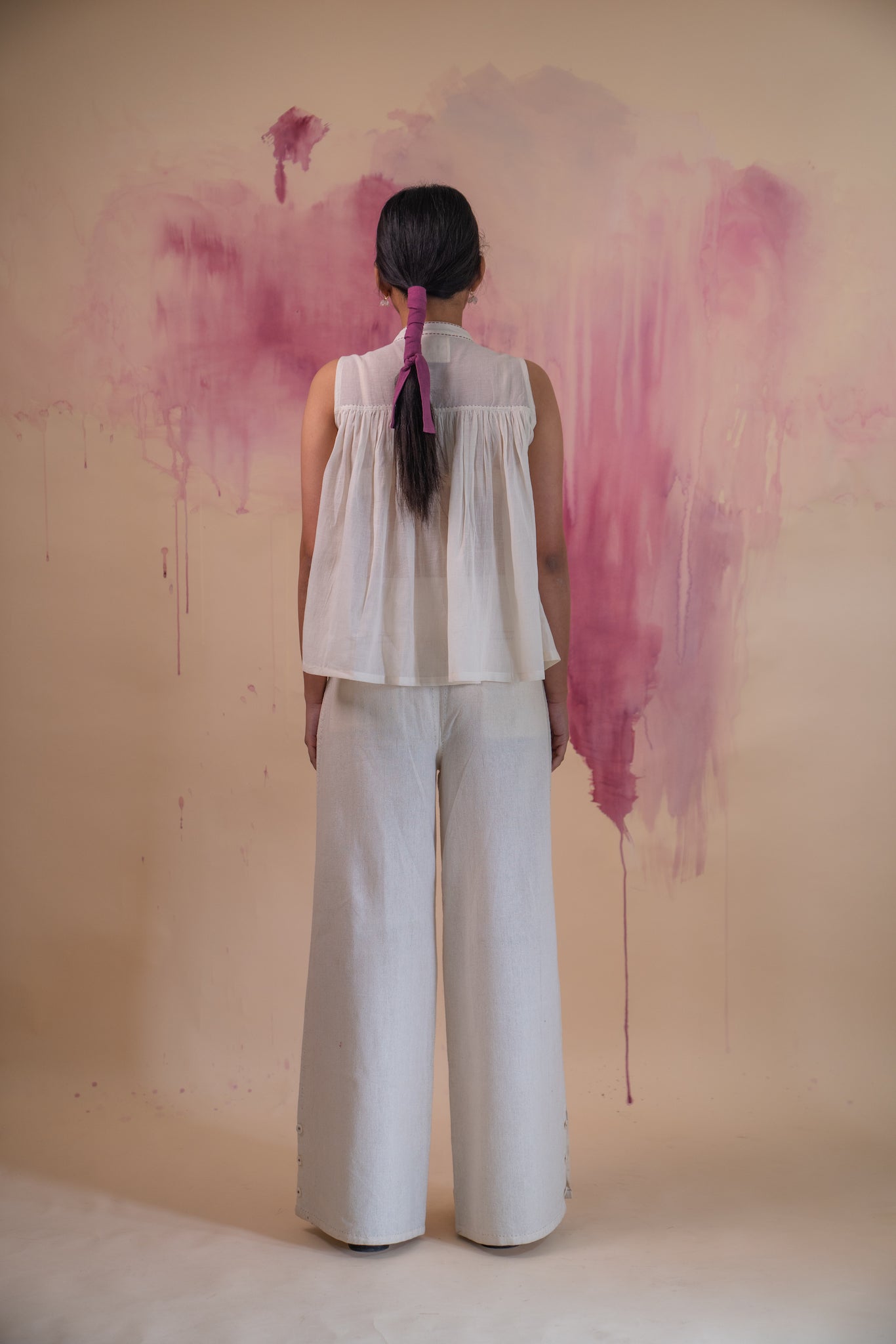 Crafted in 100% cotton fibres and natural materials. This Gathered Blouse & Pants Set is undyed and unbleached.