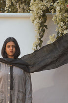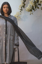 Crafted in 100% cotton fibres and natural materials. This sheer self-checked scarf is dyed using Myrobalan and Iron. The textural beauty of the fabric renders itself in enhancing the beauty of hand-embroidery.