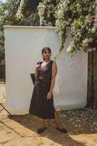 Crafted in 100% cotton fibres and natural materials. This Kala cotton long skirt has been naturally dyed using Myrobalan and Iron.