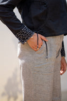 The Sonder Patch Pocket Pants come in an interesting twill weave of black and white has been naturally dyed using Myrobalan and Iron.