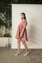 Description: This mini dress is an effortless option for all your day and night soires. It is designed with a subtly flared skirt, shaped with a wide neckline and pleated structured sleeves that create a flirty silhouette.