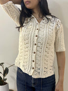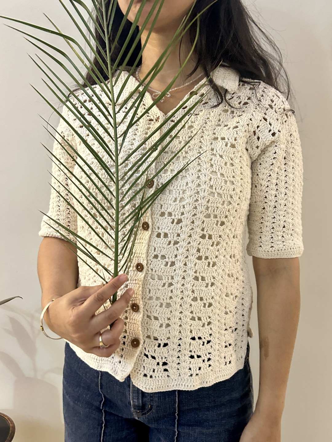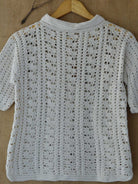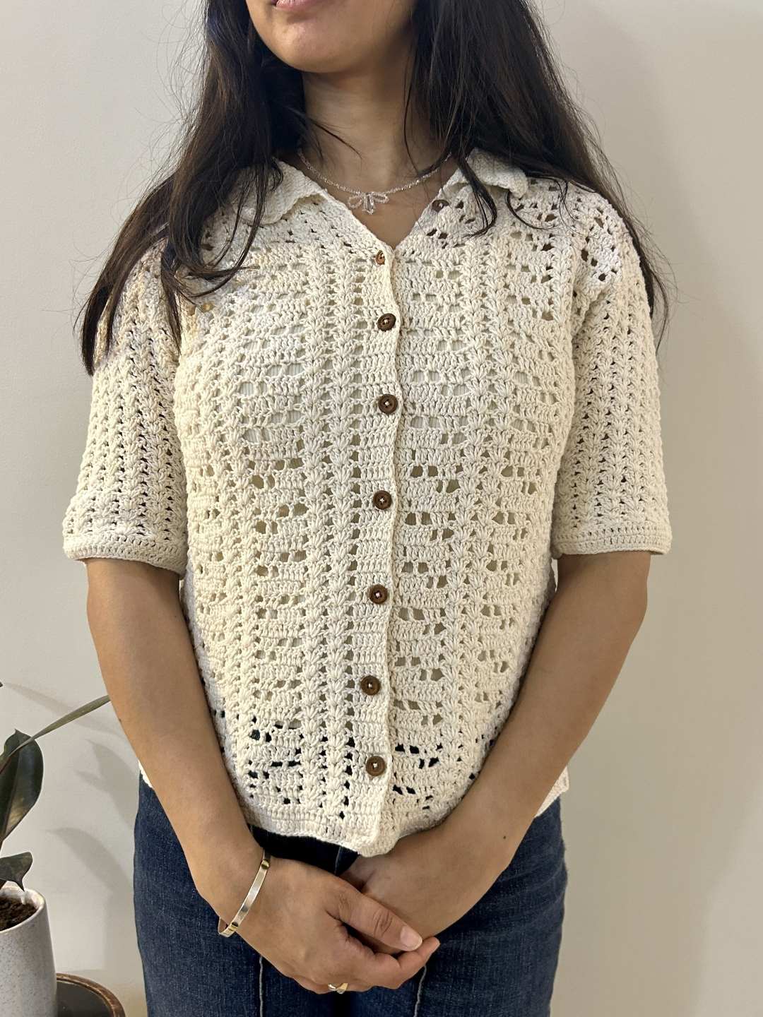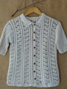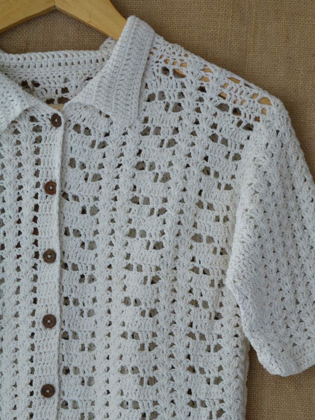 Introducing the unisex White Loom Lines Crochet Shirt, where classic design meets artisanal craftsmanship. This made-to-order piece features a clean white base with elegant loom lines and a sophisticated shirt collar.