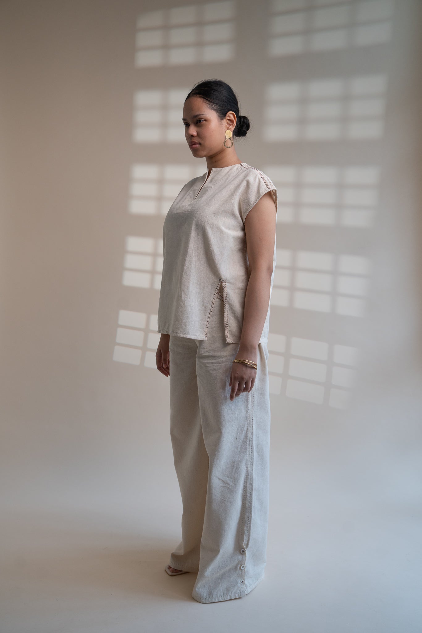 Dawning Raglan Sleeve Blouse & Slit Pants Set